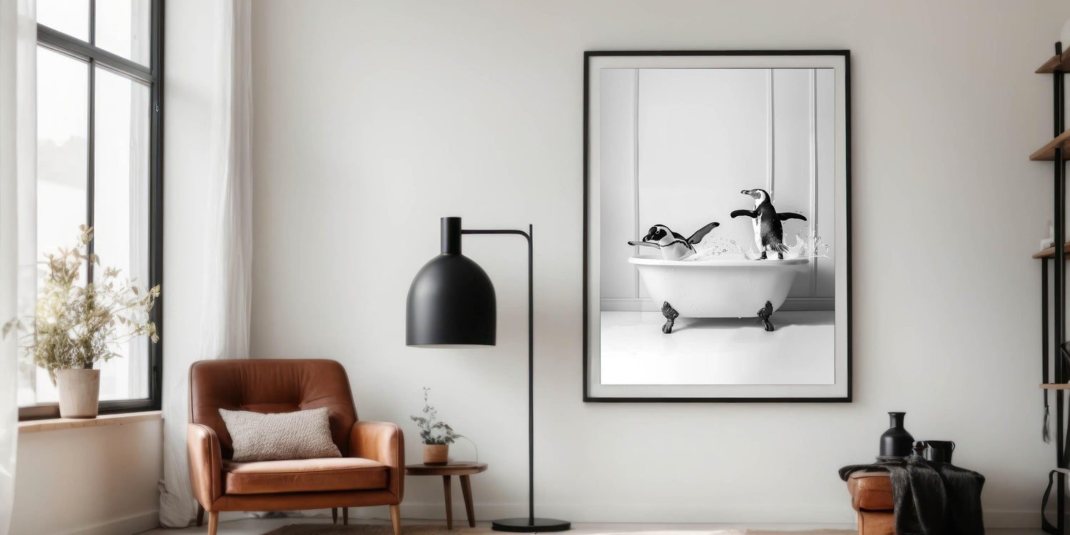 This penguin-themed bathroom art is a fantastic choice for animal lovers and those who enjoy quirky, unique decor. Whether displayed as a statement piece or as part of a gallery wall, this artwork is sure to bring smiles and warmth to your home.