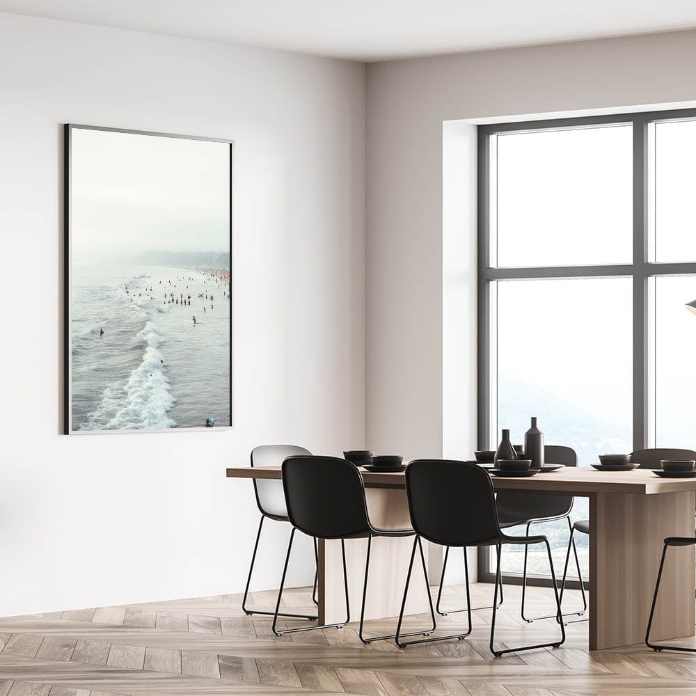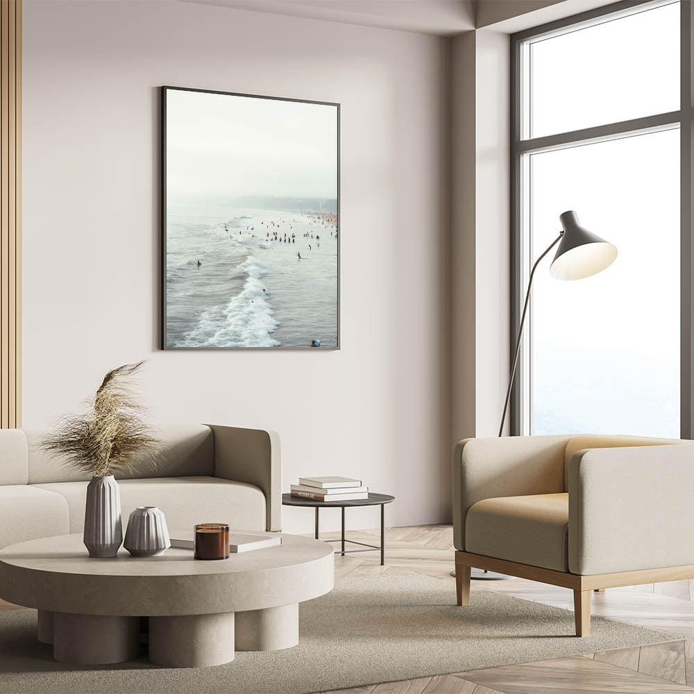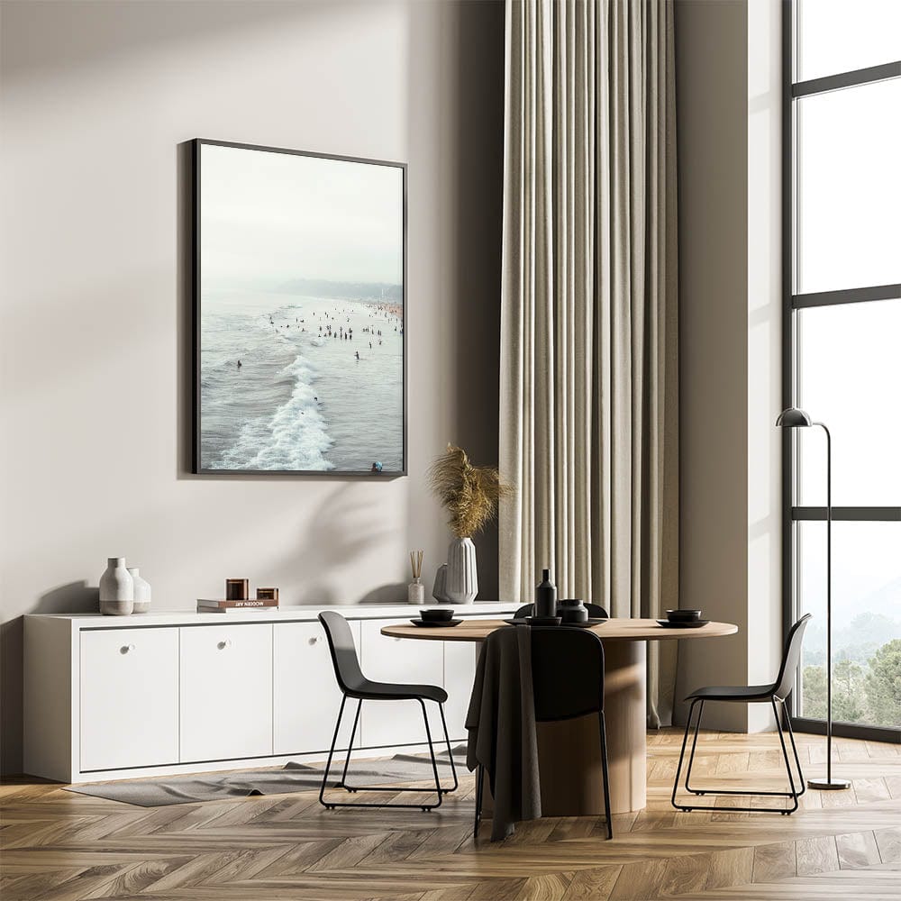 Capture the beauty of a relaxing summer day at the beach with this Coastal Ocean Wall Art. Featuring soft waves, misty skies, and joyful beachgoers, this artwork brings the soothing essence of the ocean into your home. Perfect for creating a tranquil, vacation-inspired atmosphere, this print will elevate your space with subtle elegance.