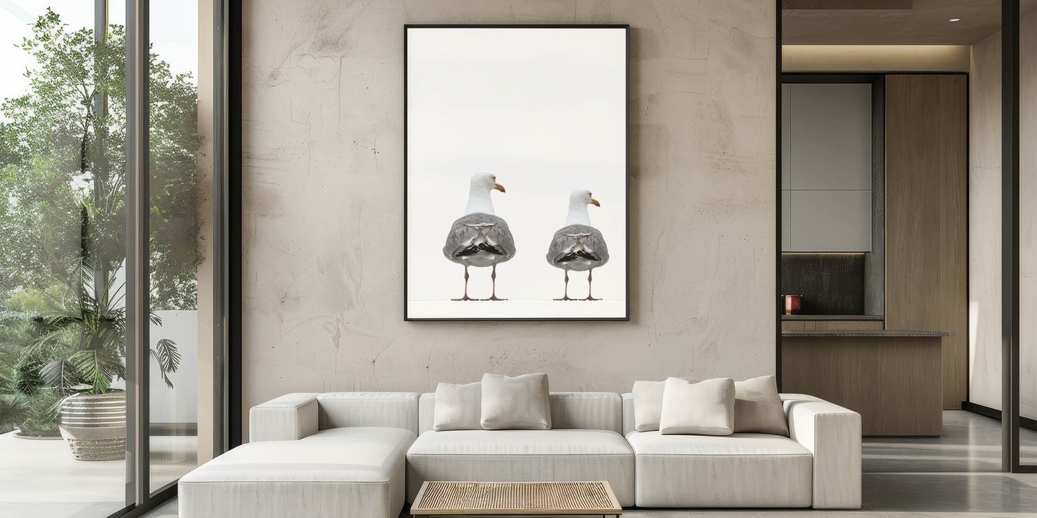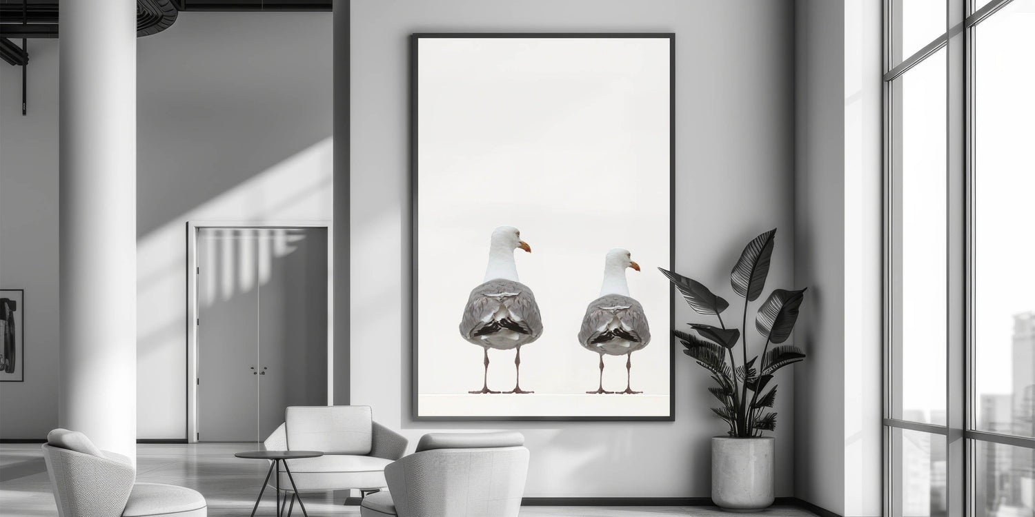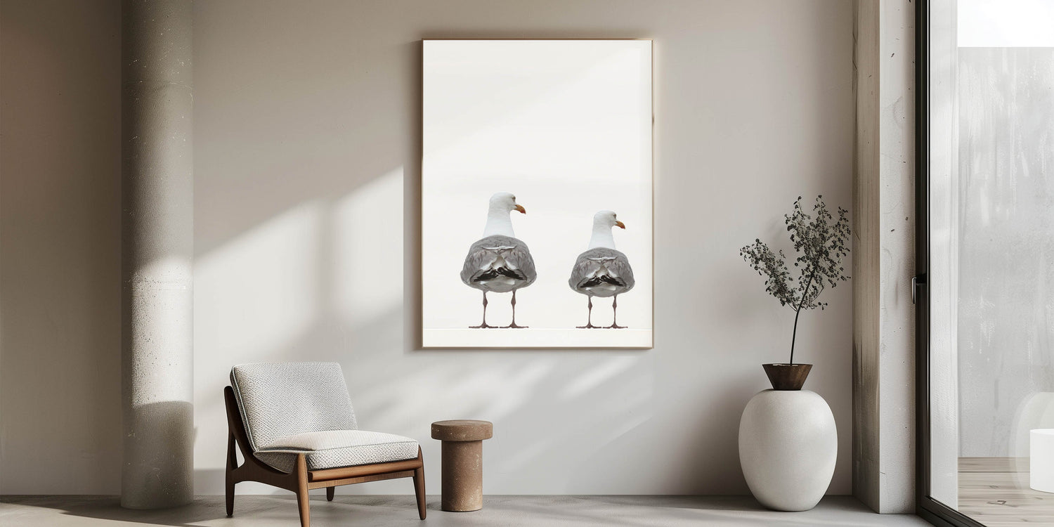 Bring a touch of coastal charm to your home with this Beach Decor Print featuring two seagulls in a serene minimalist design. Capturing the simplicity and tranquility of relaxing summer landscapes, this artwork is perfect for nature-inspired summer art lovers looking to refresh their space with coastal vibes.