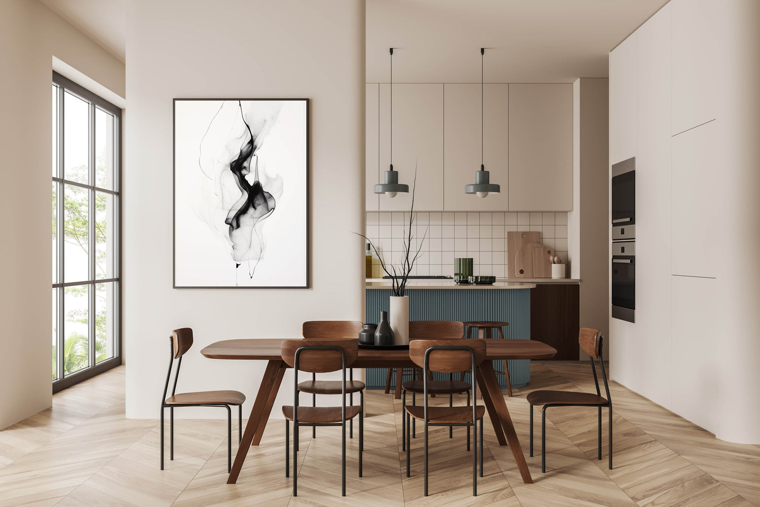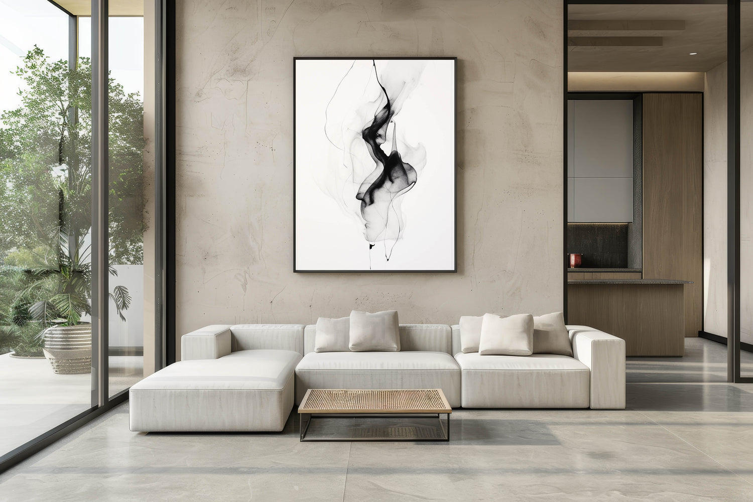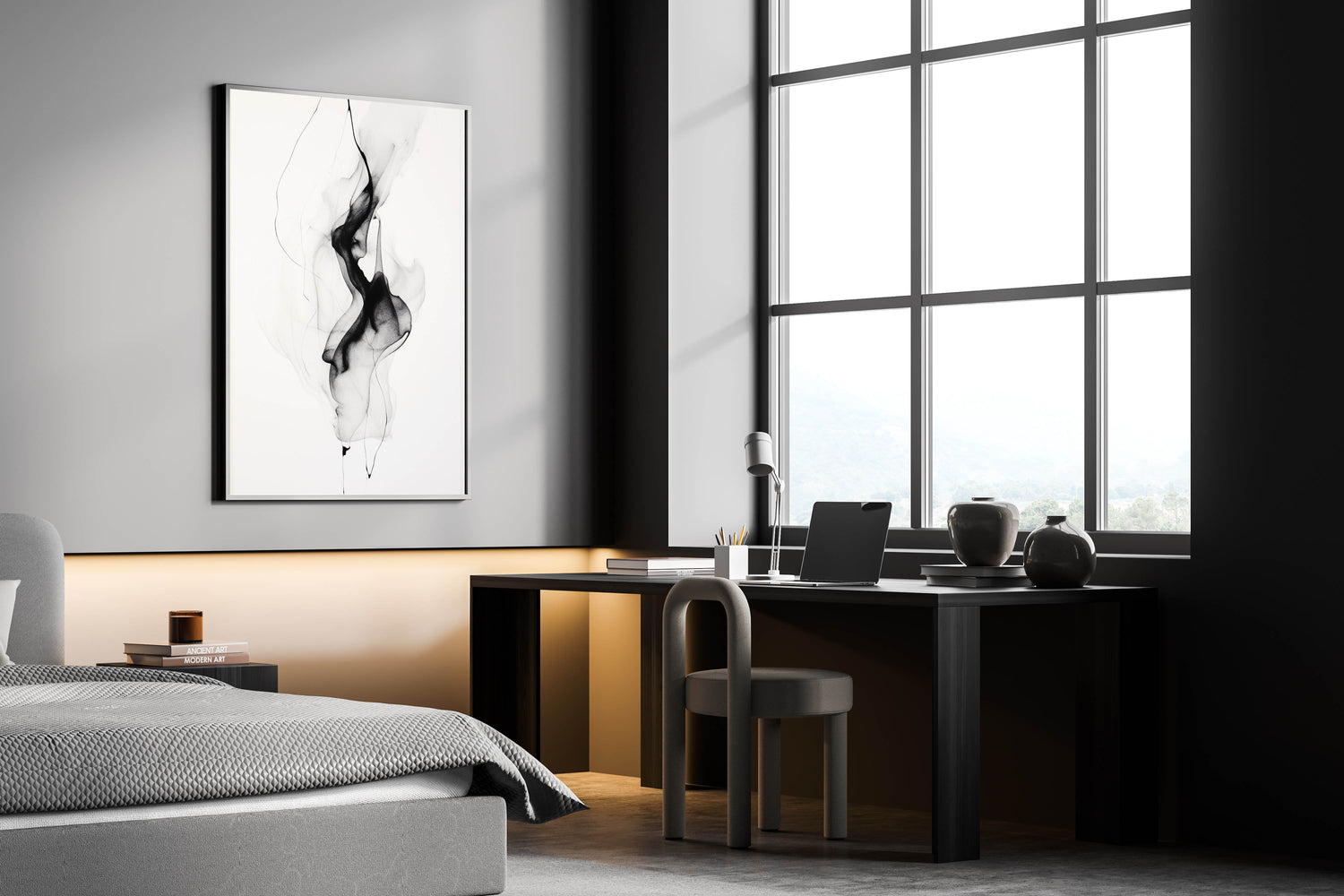 This artwork’s sleek and understated design makes it versatile and easy to pair with various décor styles. Its serene and fluid lines evoke a sense of calm and harmony, adding a touch of sophistication to any space.