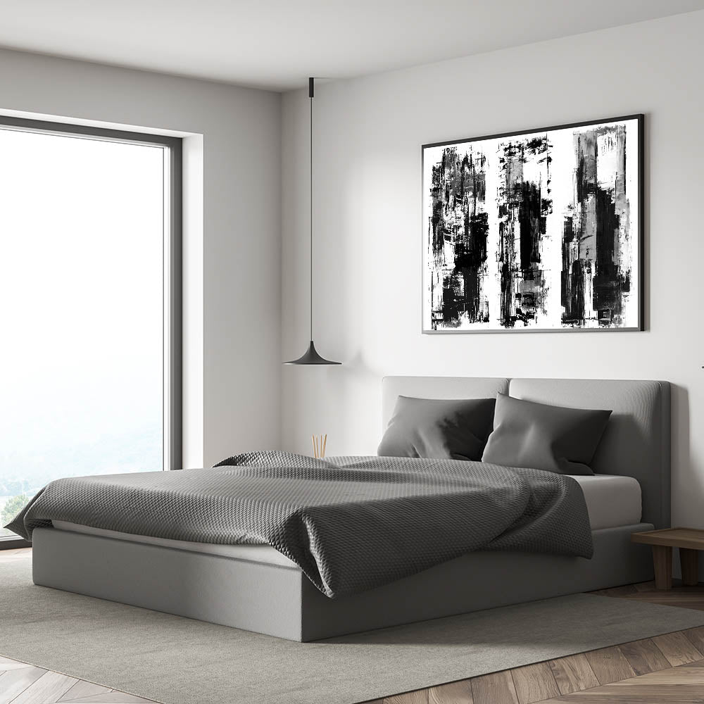 - Customizable bedroom wall art available in multiple sizes and finishes