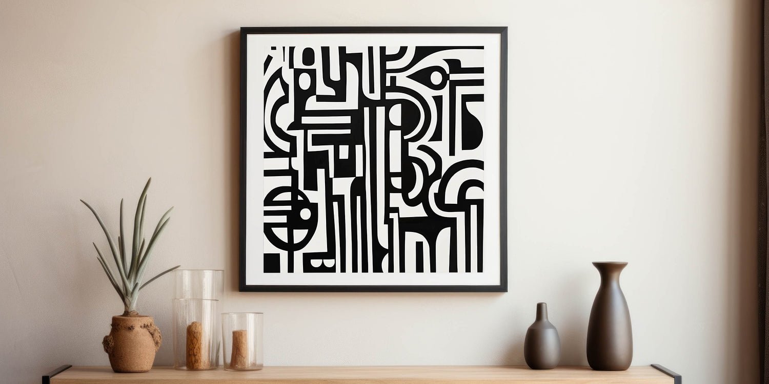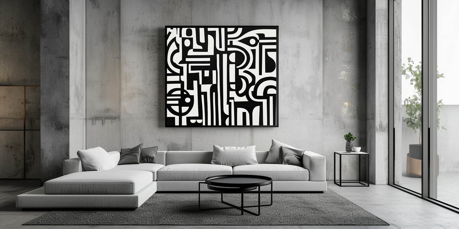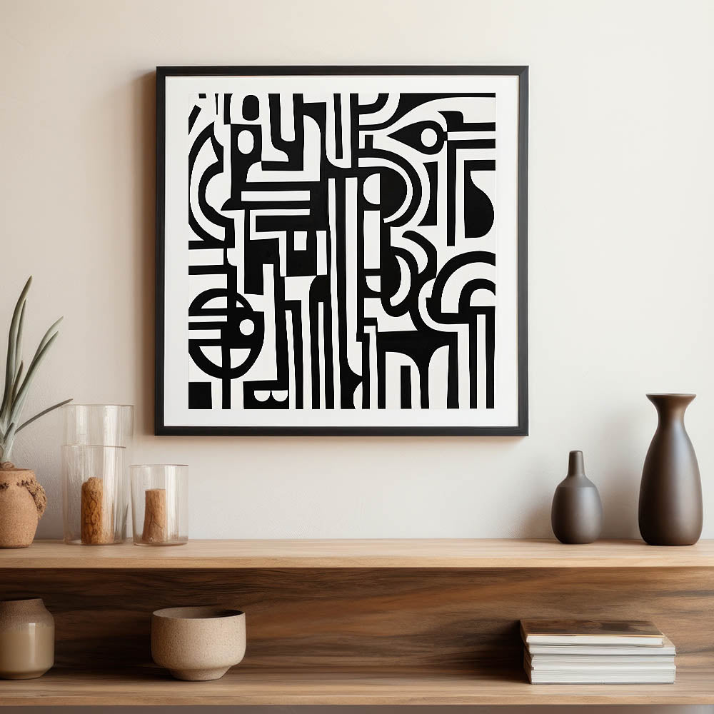 Make a bold statement with this modern wall art, featuring a striking black and white abstract geometric design. This canvas wall art adds a contemporary touch to any modern living room decor, making it a perfect addition to wall art for living room spaces. The crisp contrast of black and white art enhances the visual impact, while the intricate geometric forms bring a dynamic energy to your interior. This contemporary wall art is ideal for minimalist, industrial, or urban-styled homes, offering a sleek and sophisticated appeal.