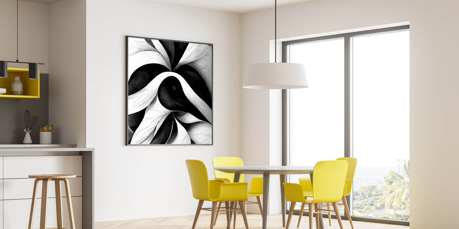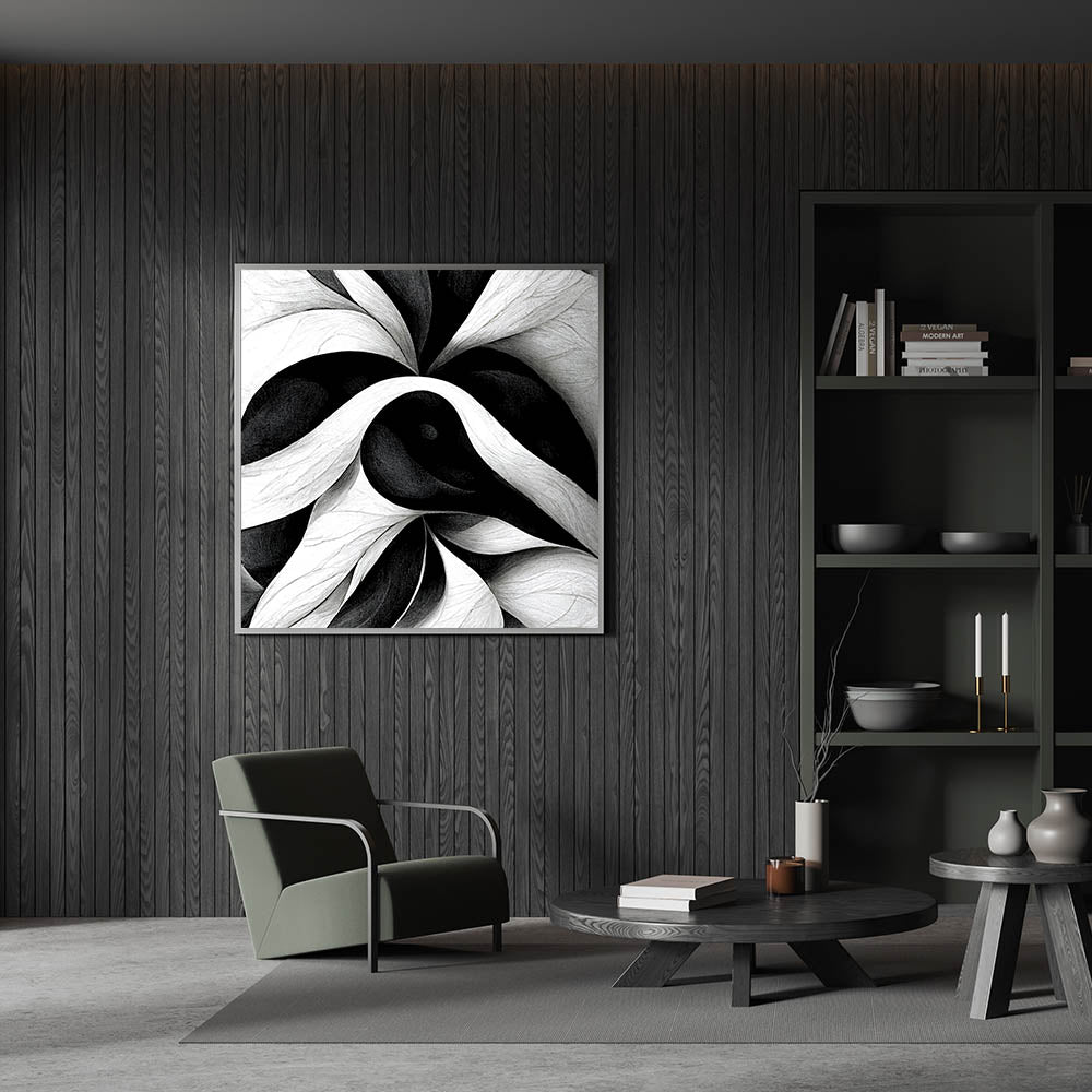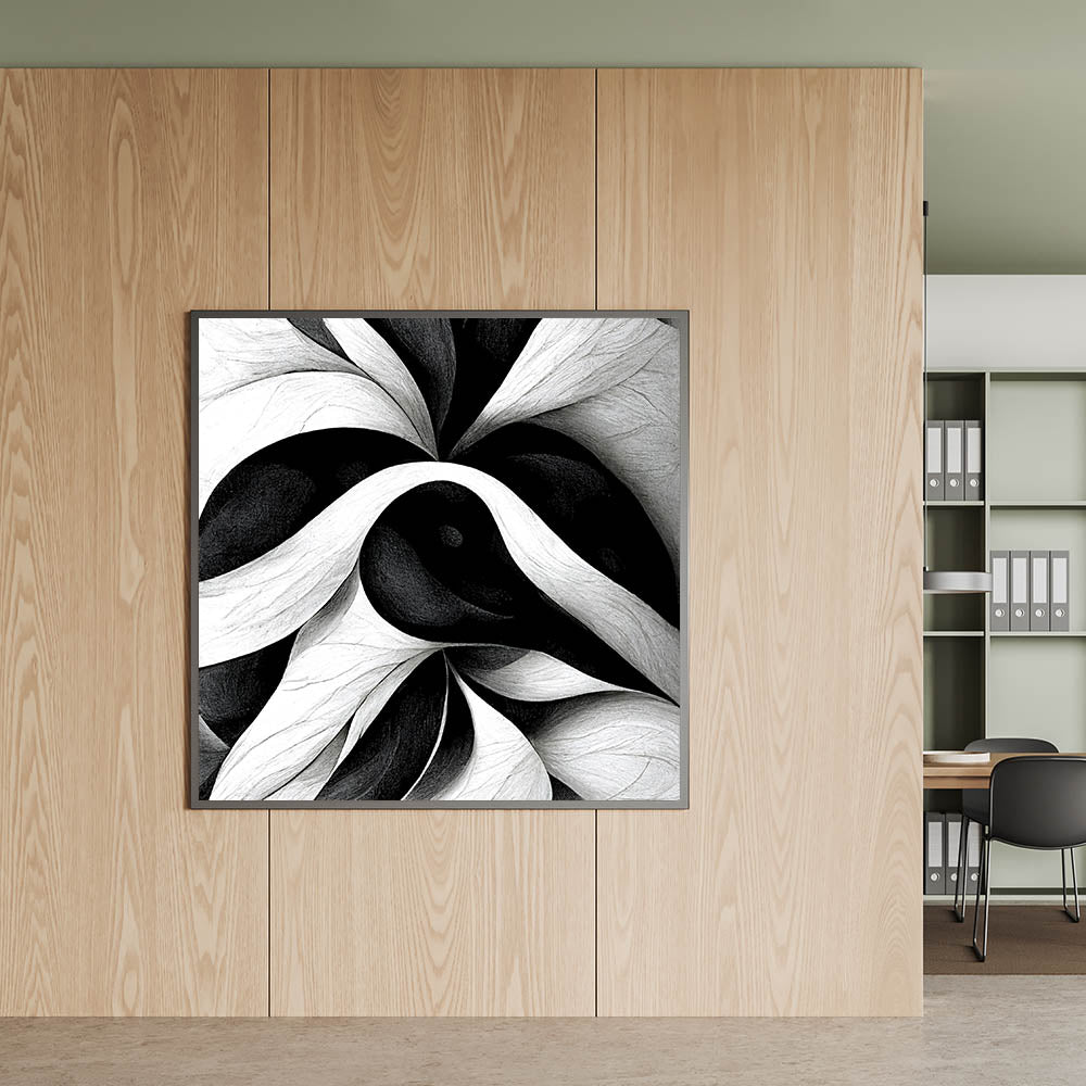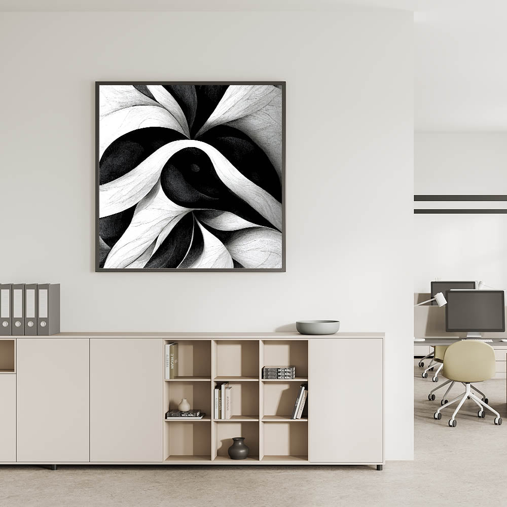 Bring a bold and sophisticated touch to your workspace with this black and white office wall art. Designed with fluid abstract patterns, this modern office art is the perfect statement piece for corporate wall decor. Its monochrome tones blend seamlessly with contemporary office decor, enhancing any professional environment.