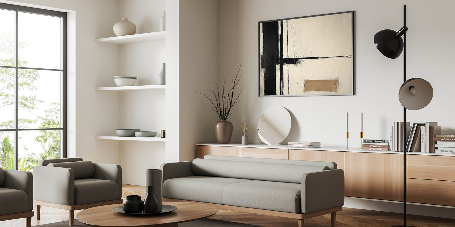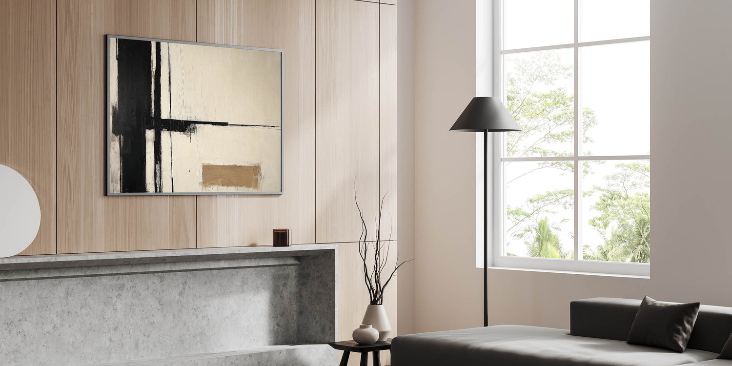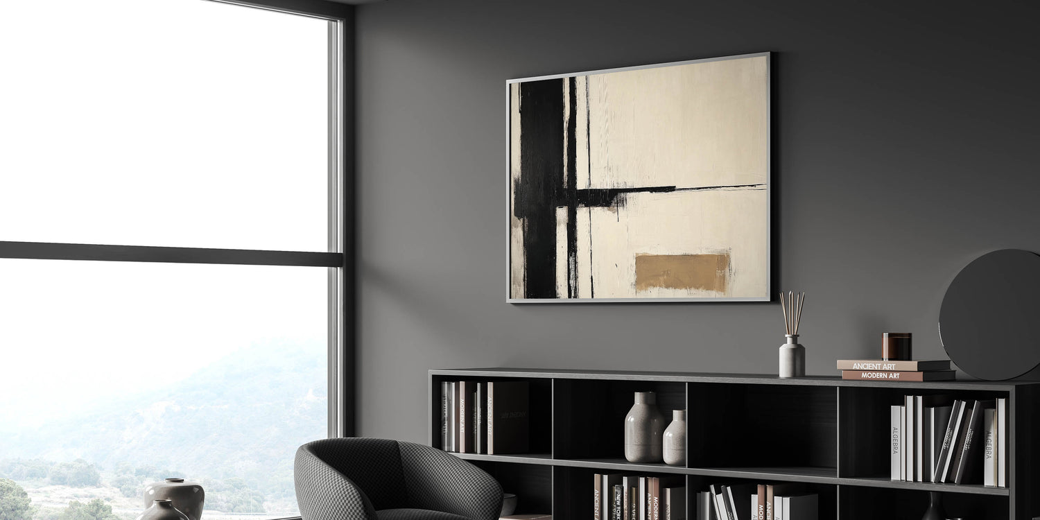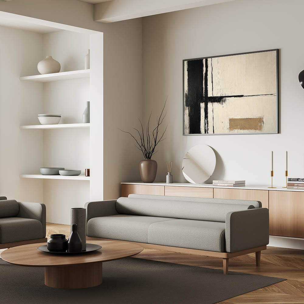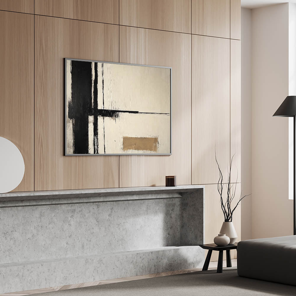 Black & Beige Canvas – Minimalist Abstract Living Room Wall Art