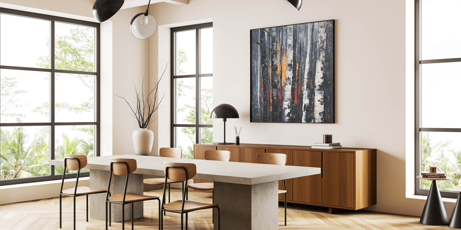 This contemporary birch forest artwork is a perfect fusion of nature’s beauty and modern design. Whether used as a focal point or part of a gallery wall, it adds a bold, timeless touch to your home or office.