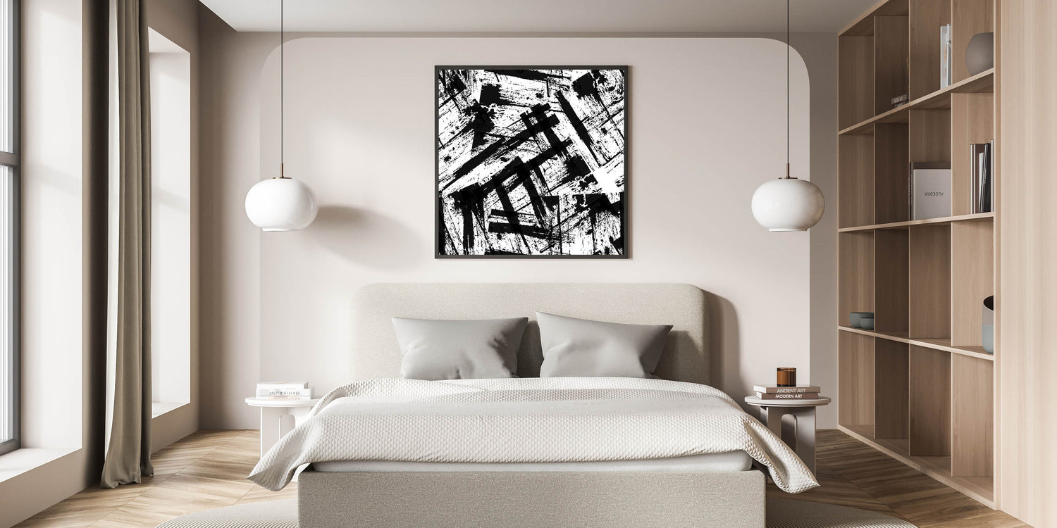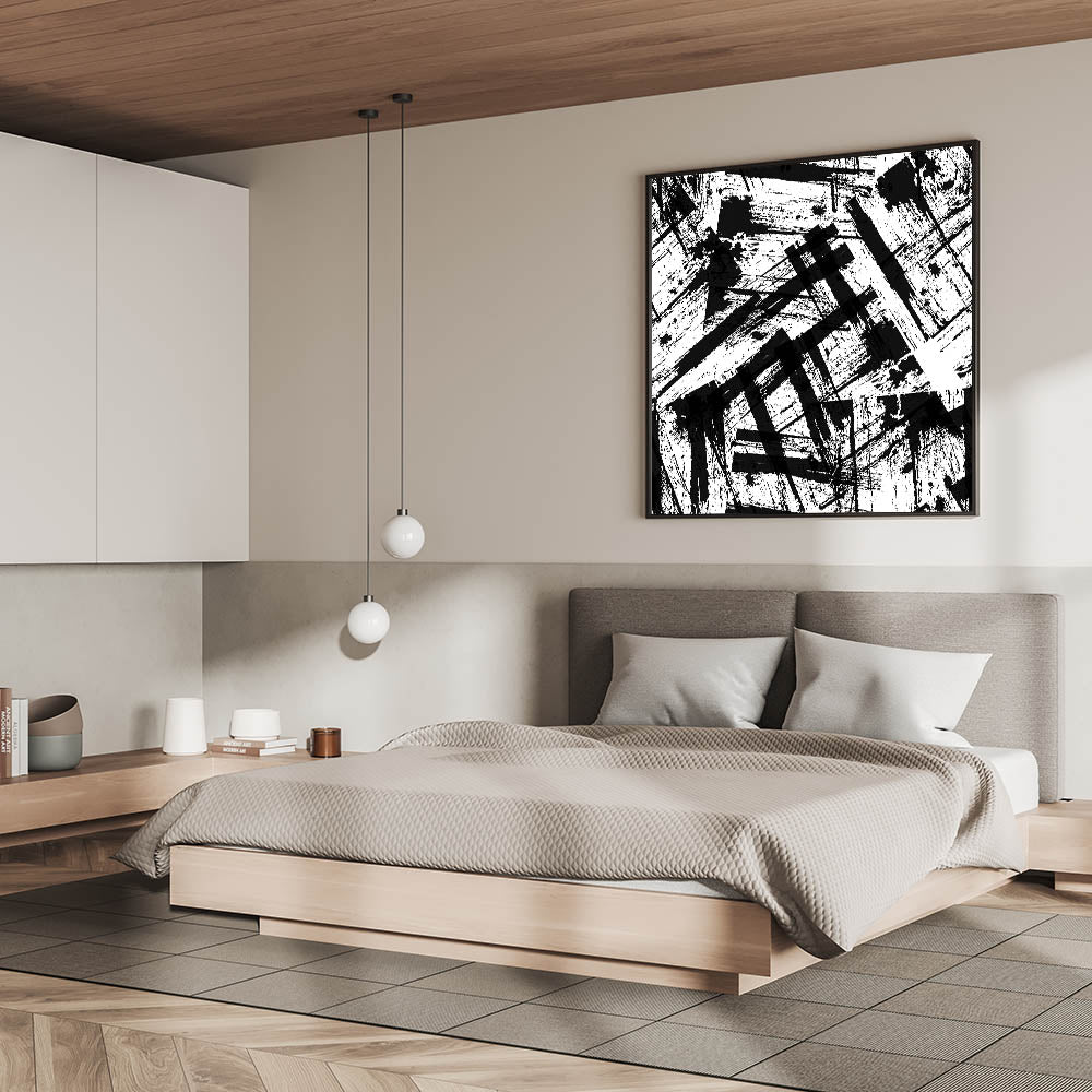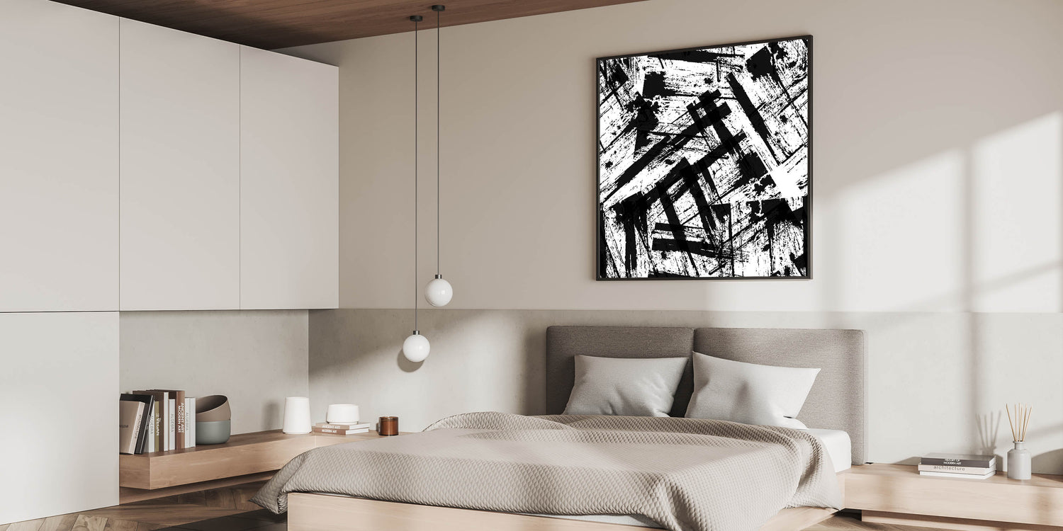 Bold Black and White Abstract Bedroom Wall Art – Framed & Canvas