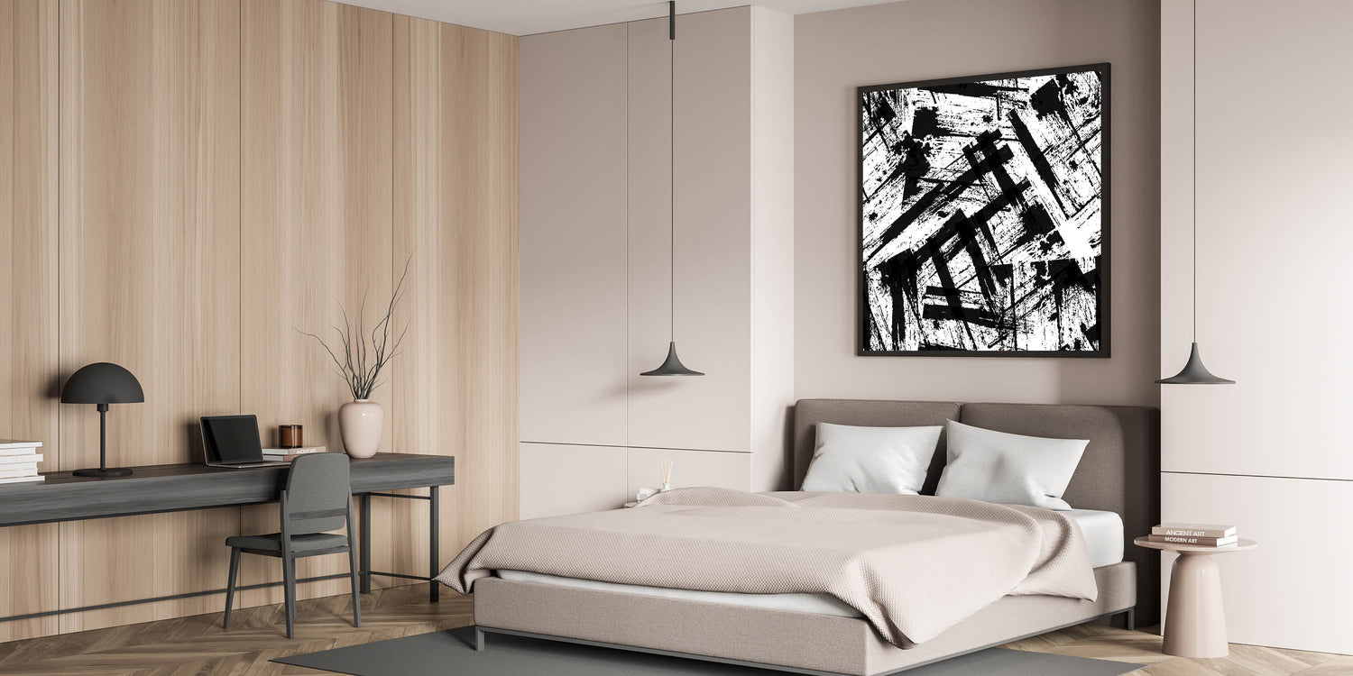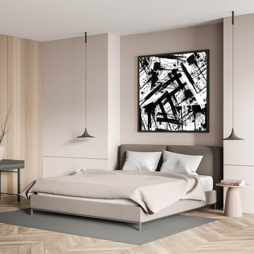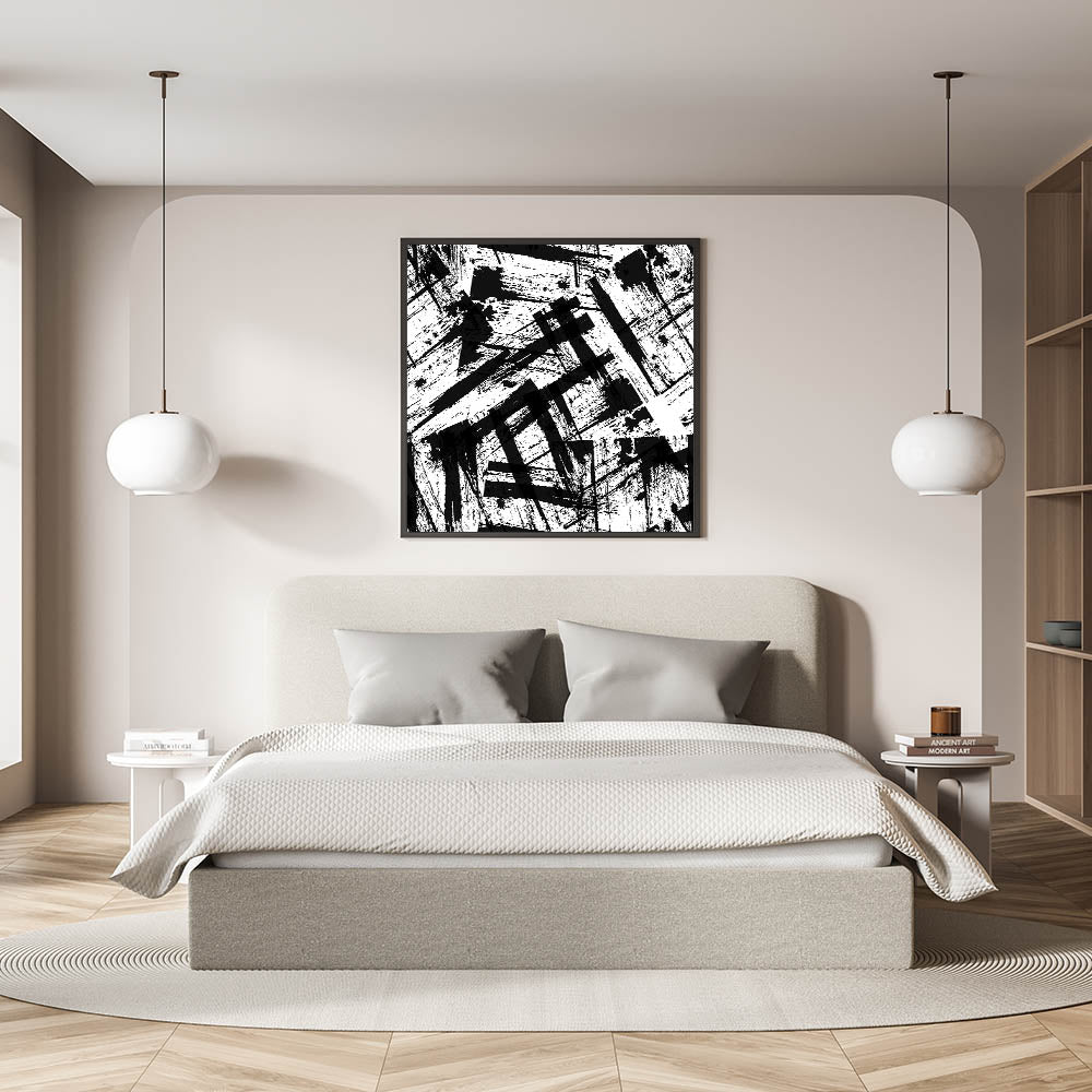 Bold Black and White Abstract Bedroom Wall Art – Framed & Canvas