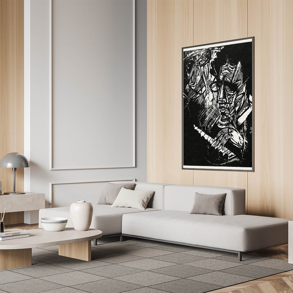 Capture the raw emotion and energy of Expressionism with this striking Expressionist Art piece. Featuring a dramatic black-and-white portrait with angular, abstract forms, this Modern Expressionism artwork evokes deep introspection and a sense of artistic rebellion. The intricate details and bold contrasts make this Abstract Expressionism piece a compelling addition to any art collection.