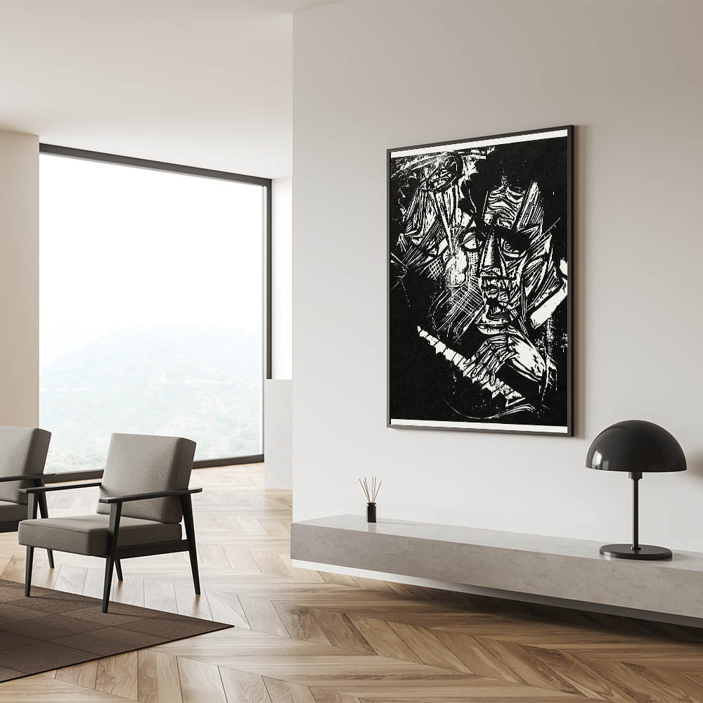 Whether displayed in a living room, study, or gallery, this Decorative Expressionist Wall Art invites conversation and admiration. The timeless black-and-white design complements various interior decor styles, adding sophistication and artistic depth to any space. Elevate your decor with this one-of-a-kind Expressionist Canvas Print today.