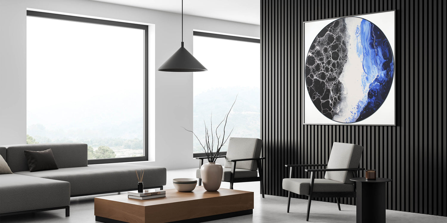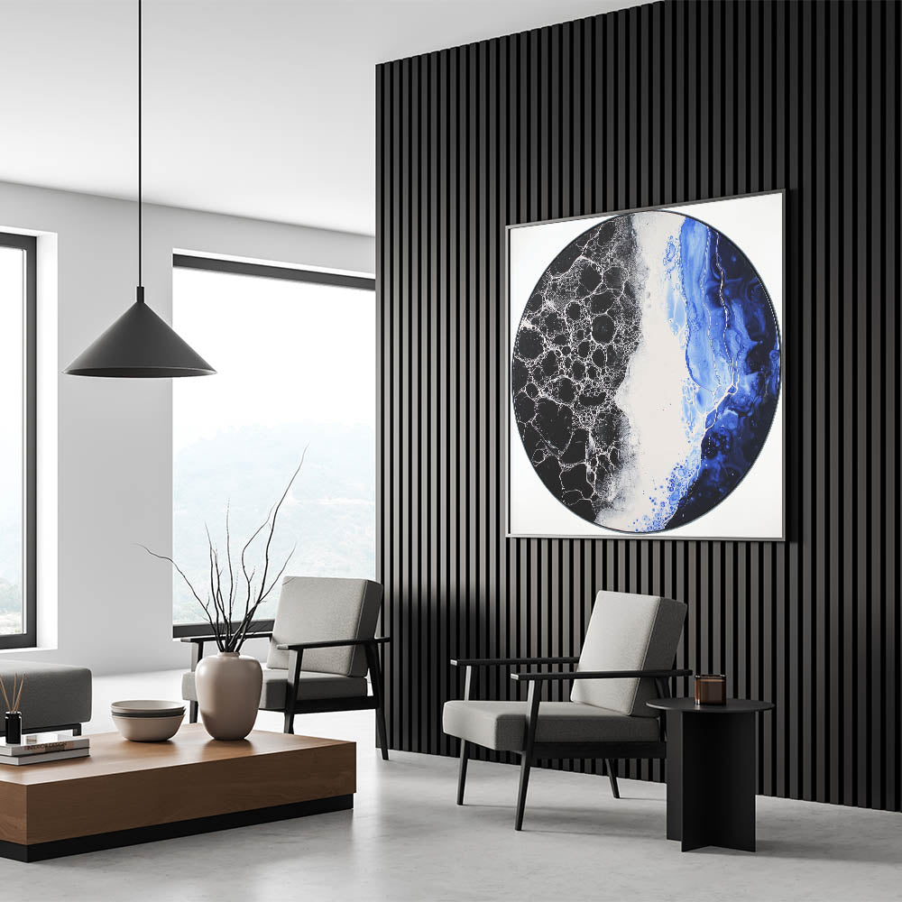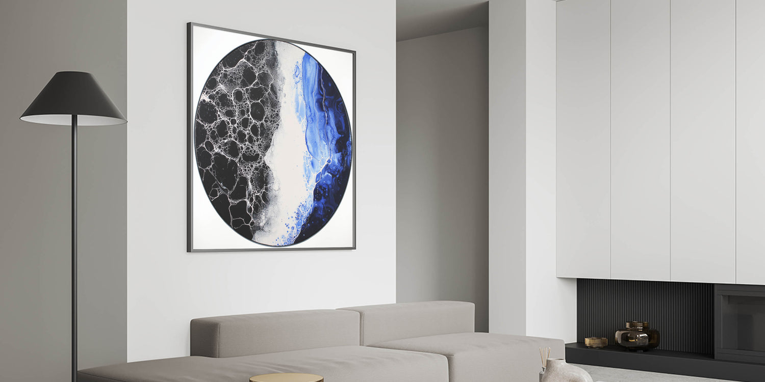 Elevate your decor with this captivating Geometric Abstract Wall Art, showcasing a circular composition in bold black, vibrant blue, and crisp white tones. The intricate textures and fluid patterns create a mesmerizing interplay of color and design, adding a touch of modern sophistication to your space. Perfect for minimalist, contemporary, or artistic interiors, this piece makes an eye-catching addition to living rooms, offices, or creative spaces.