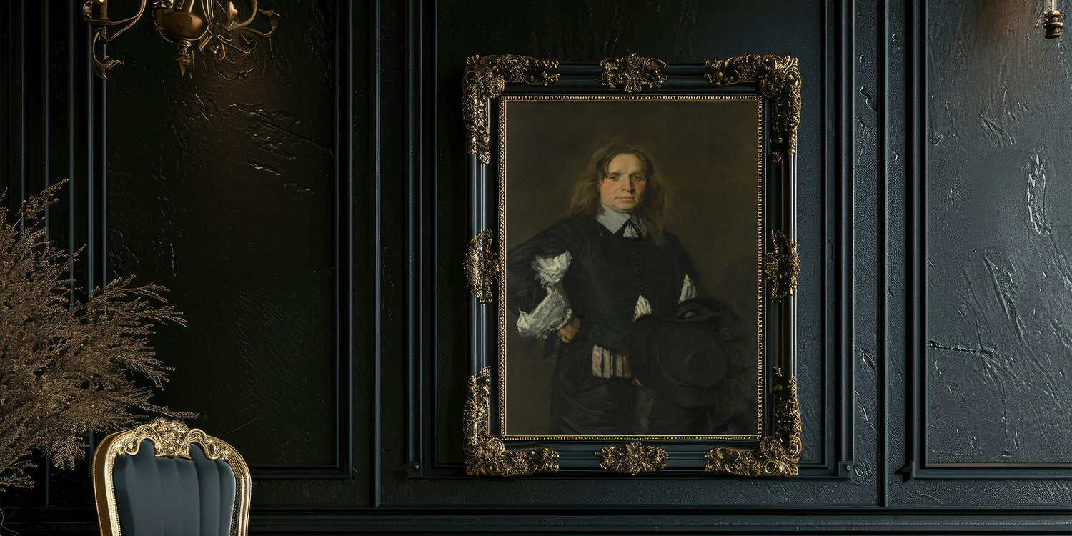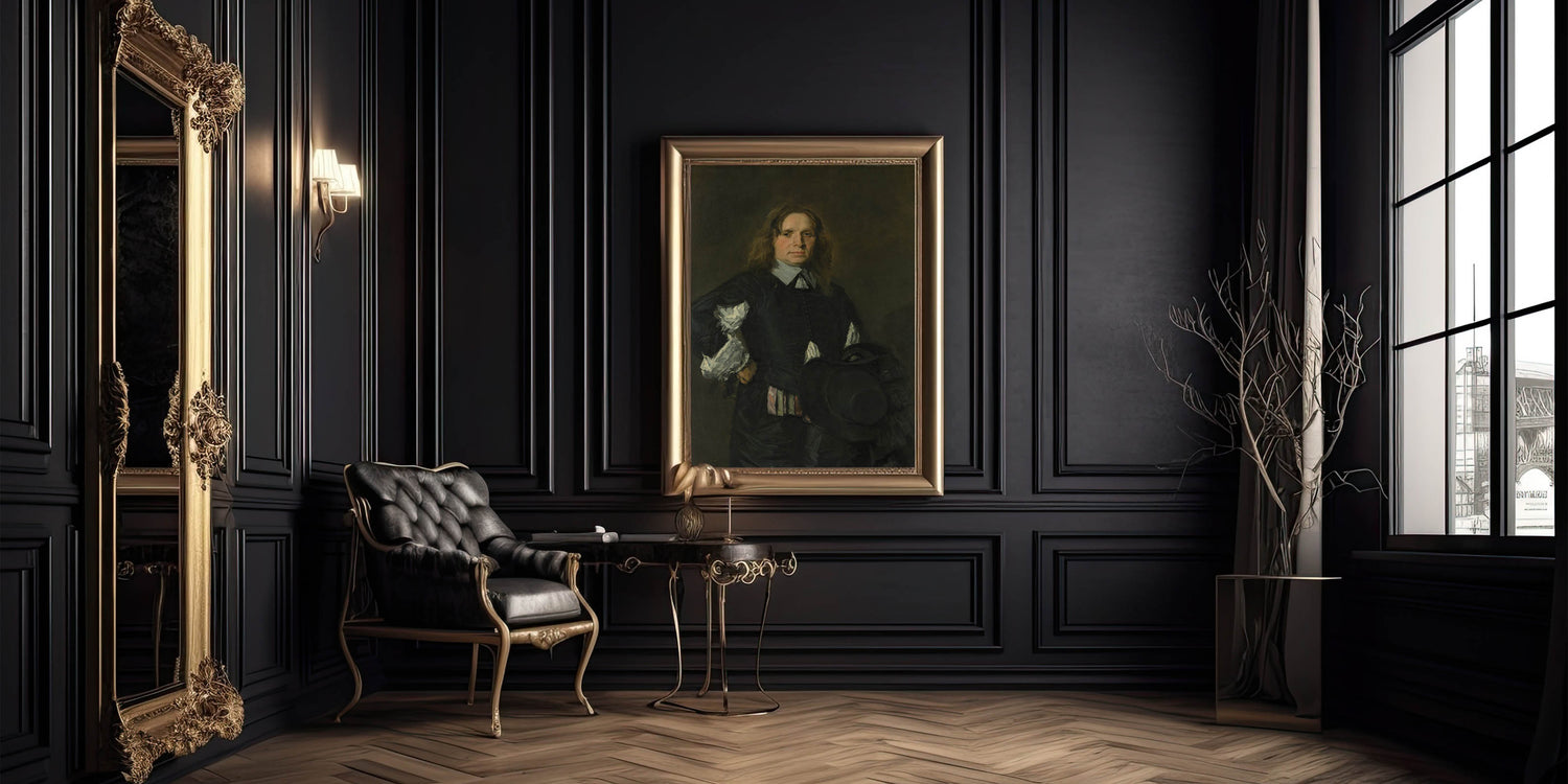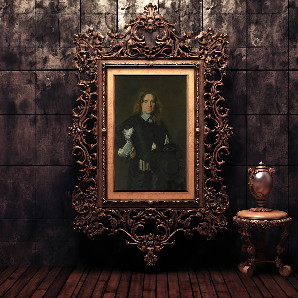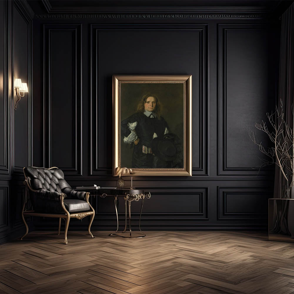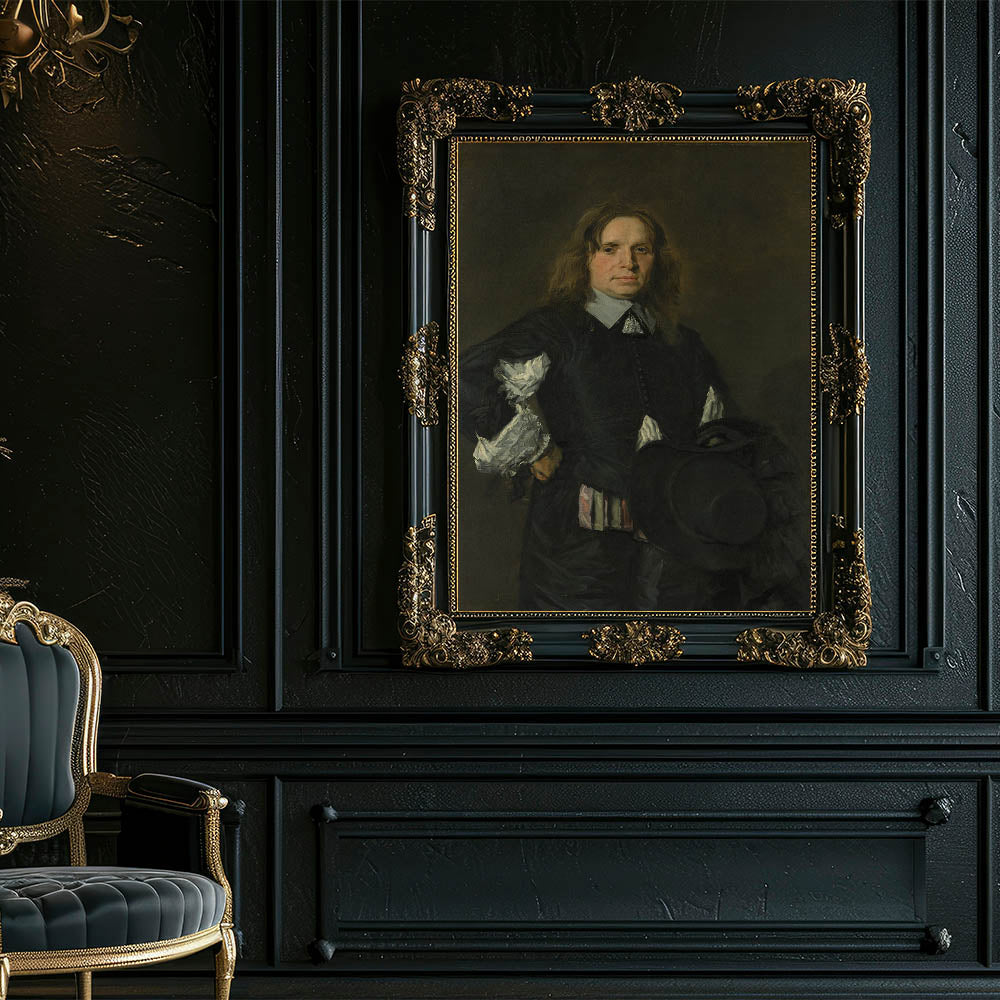 Classic Baroque Portrait - Gentleman in Elegant Dark Attire with Hat