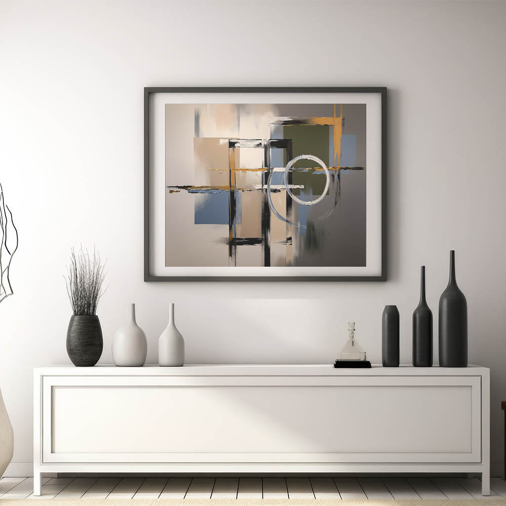 This geometric abstract artwork is perfect for creating a serene and modern aesthetic. Its neutral tones and sophisticated design make it a timeless addition to your space, providing a stylish focal point with a touch of artistic flair.
