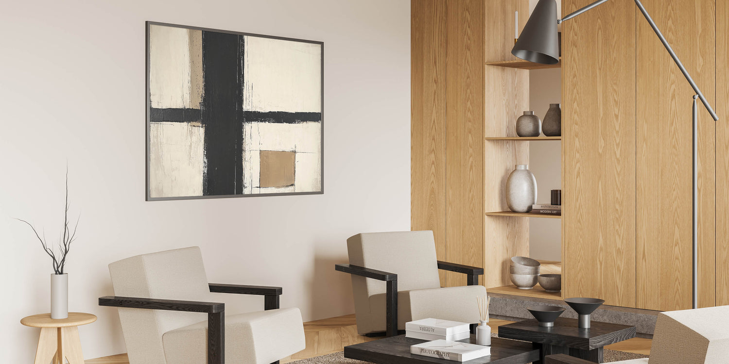 Contemporary Abstract Canvas - Minimalist Geometric Wall Art in Neutrals