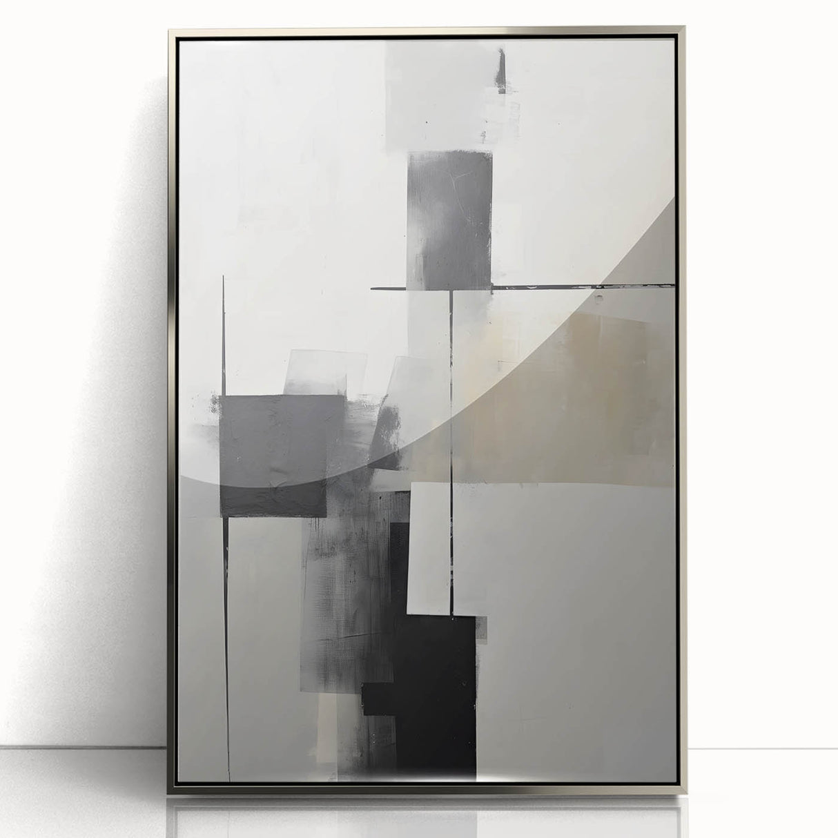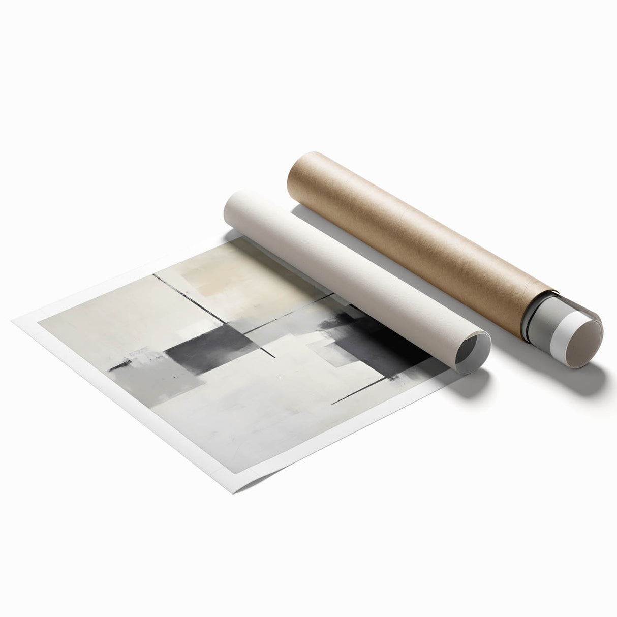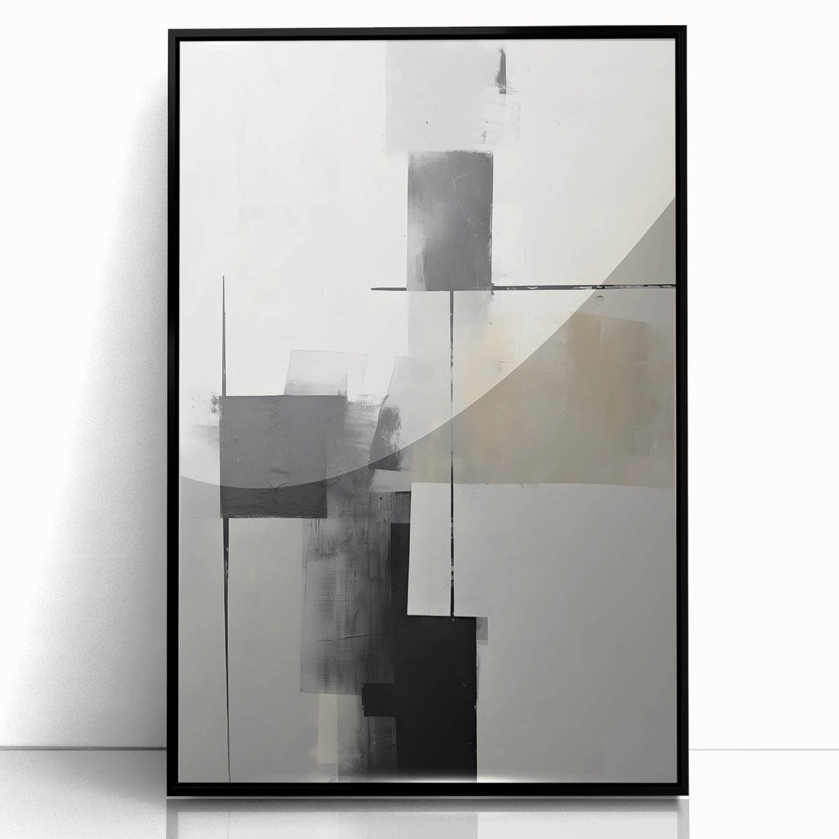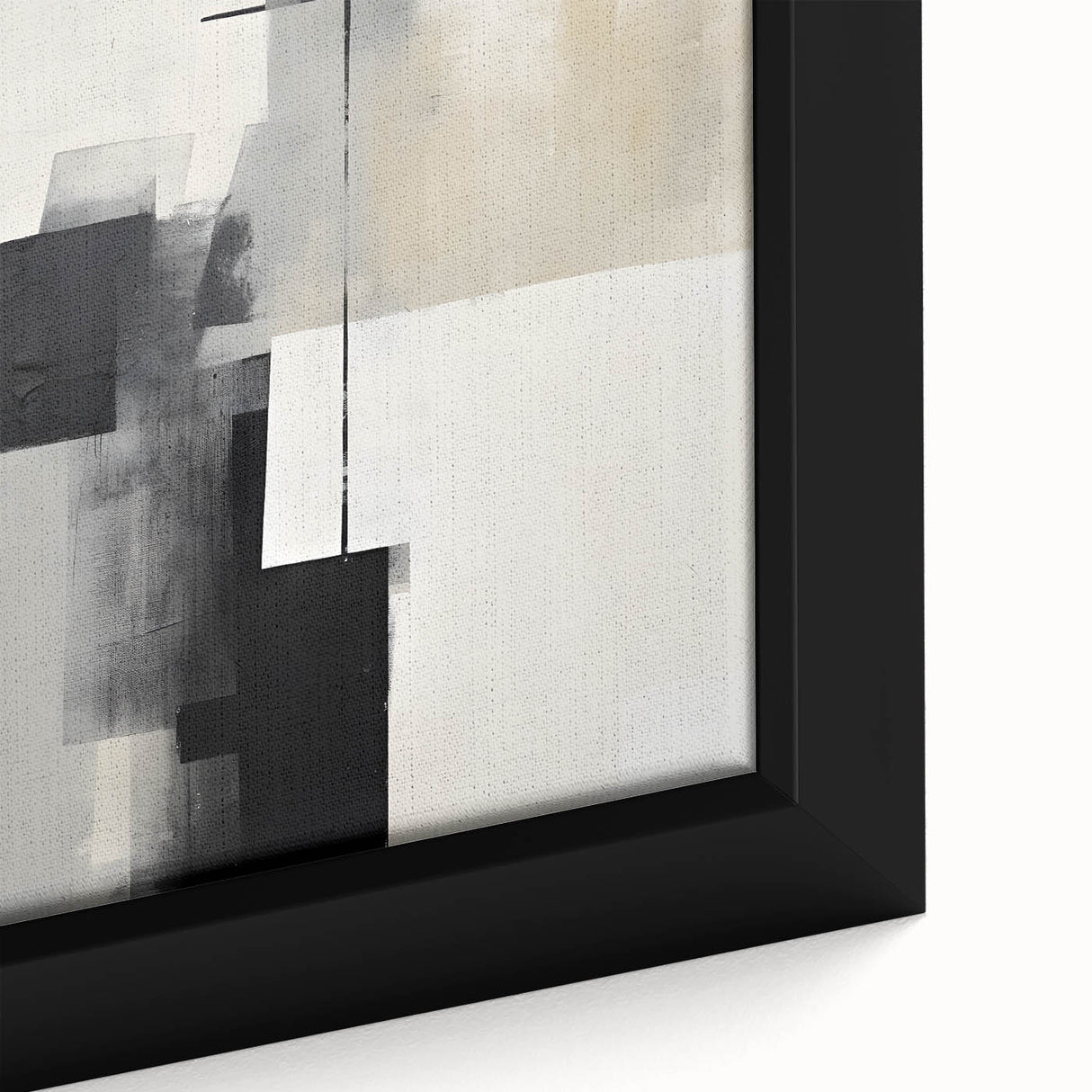 Enhance your dining space with this contemporary art for dining room walls, featuring a bold black, gray, and white geometric abstract design. The interplay of structured lines and fluid brushstrokes creates a dynamic yet minimalist aesthetic, making it a versatile addition to modern interiors. Its neutral tones and balanced composition blend seamlessly with industrial, minimalist, and contemporary décor styles.