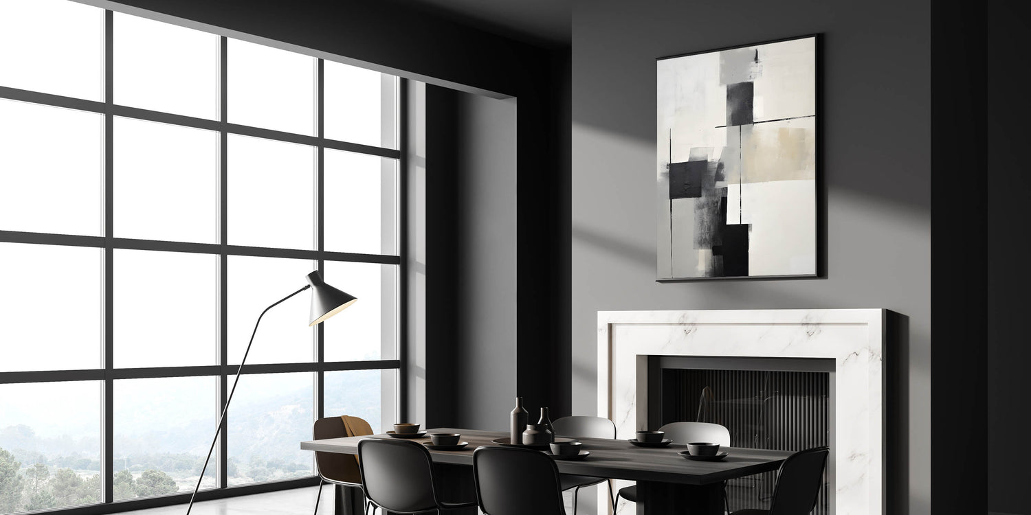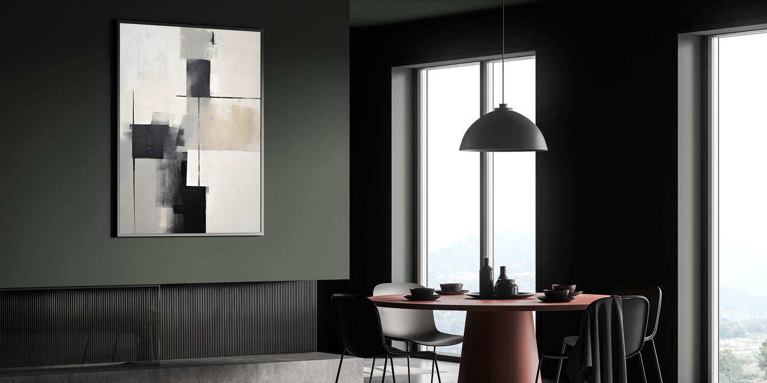 Contemporary Art for Dining Room Walls - Black & Gray Abstract
