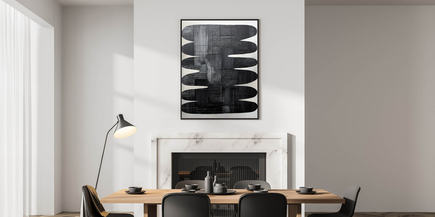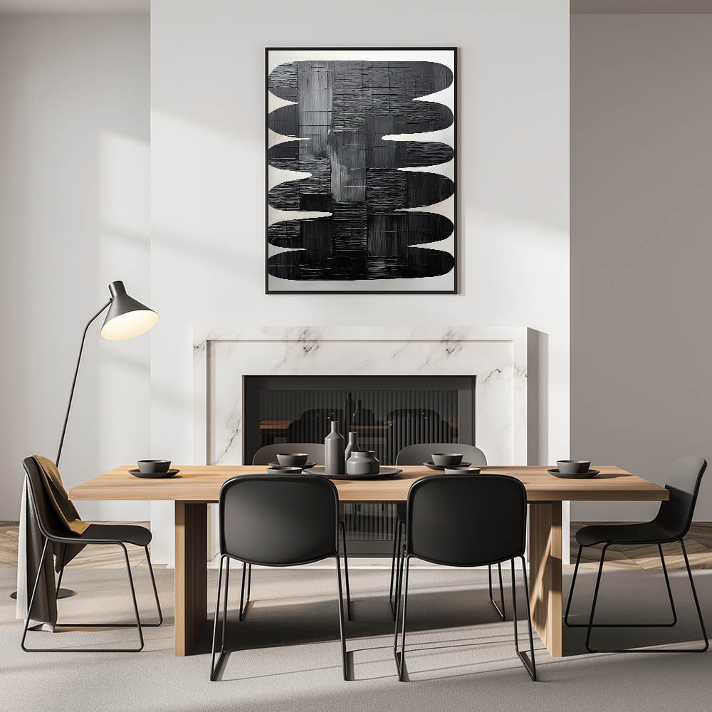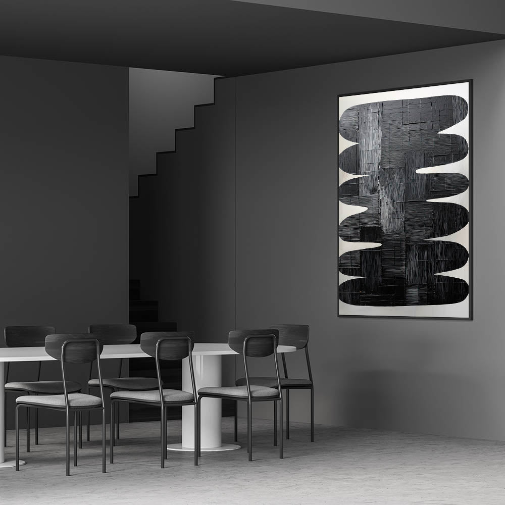 Contemporary Dining Art Pieces - Black & White Textured Abstract