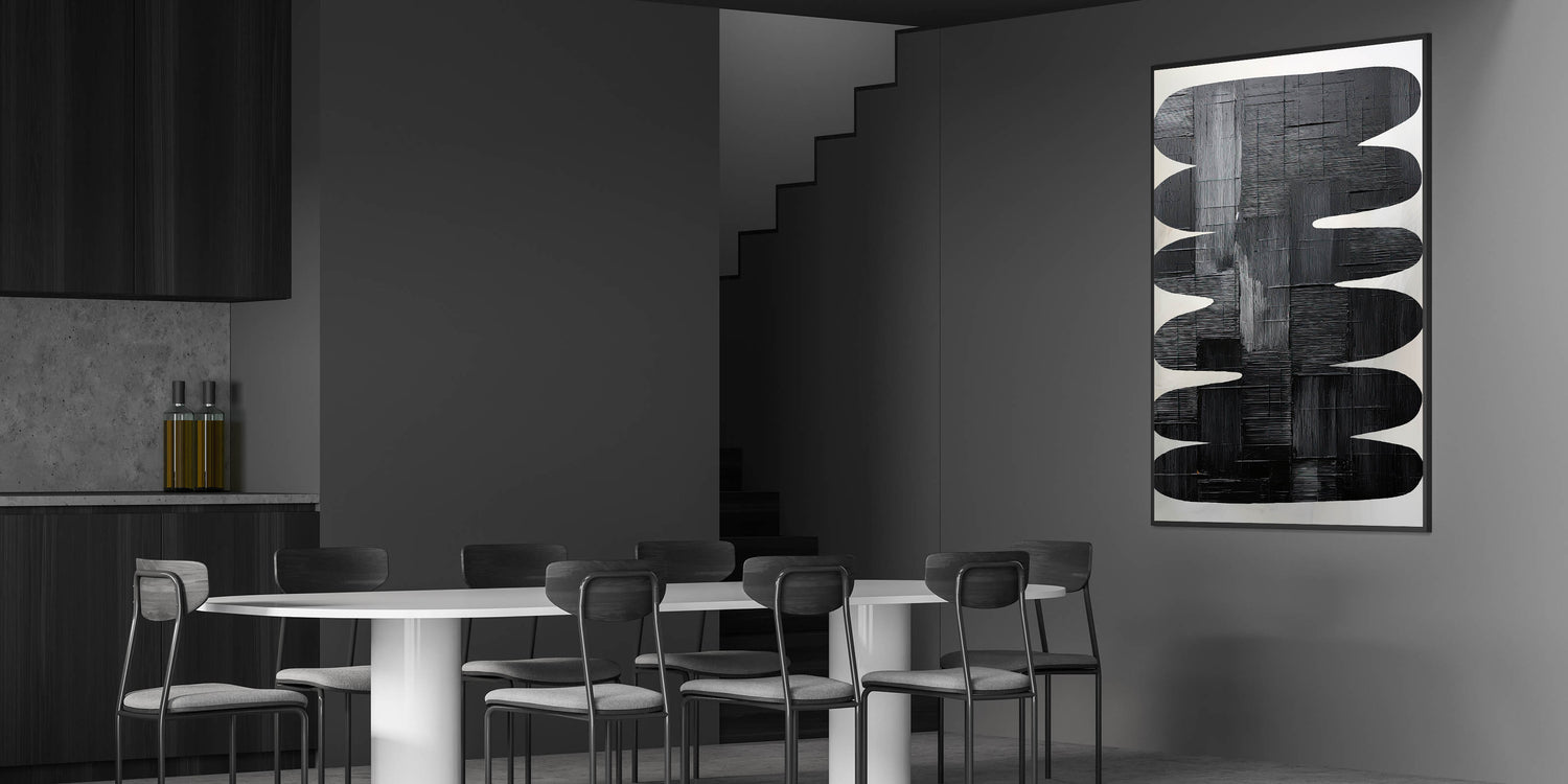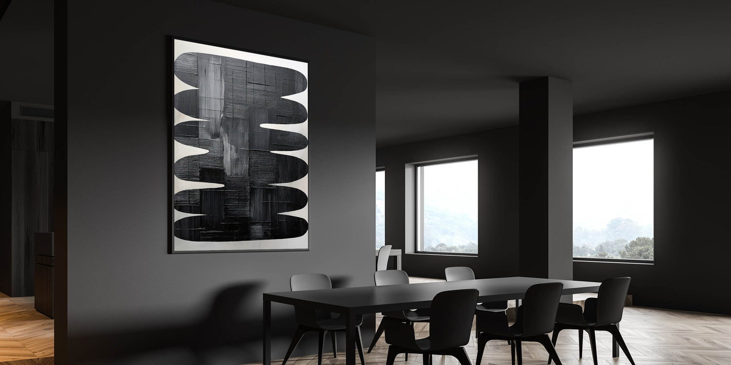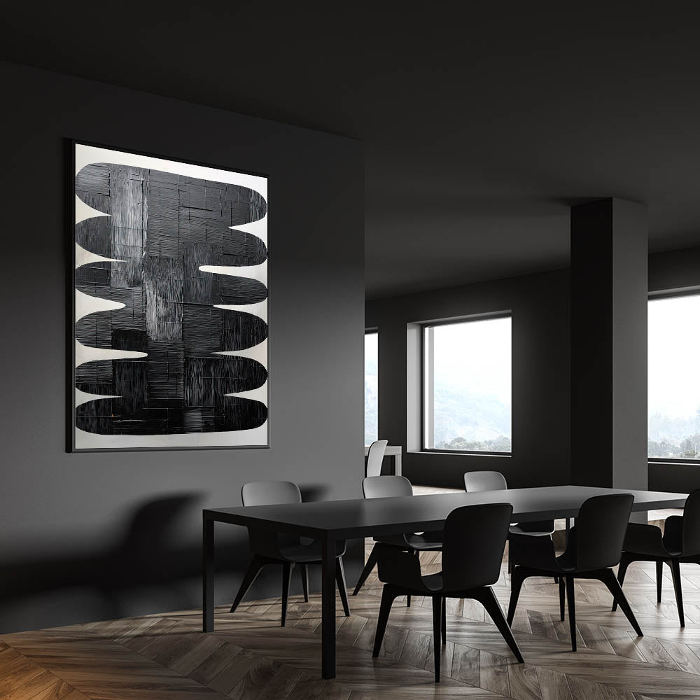 Contemporary Dining Art Pieces - Black & White Textured Abstract