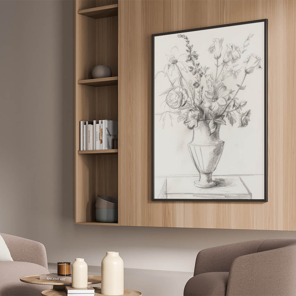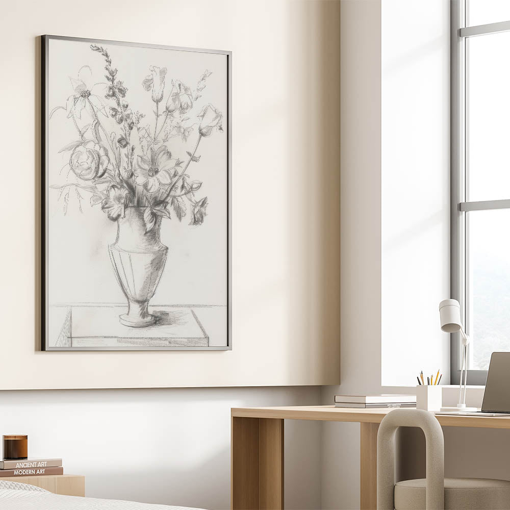 Enhance your space with this exquisite Contemporary Flower Print, an elegant depiction of floral artistry. Featuring a delicate arrangement of blooming flowers in a minimalist vase, this artwork captures the essence of modern abstract florals. Its subtle lines and timeless appeal make it a versatile addition to any room.