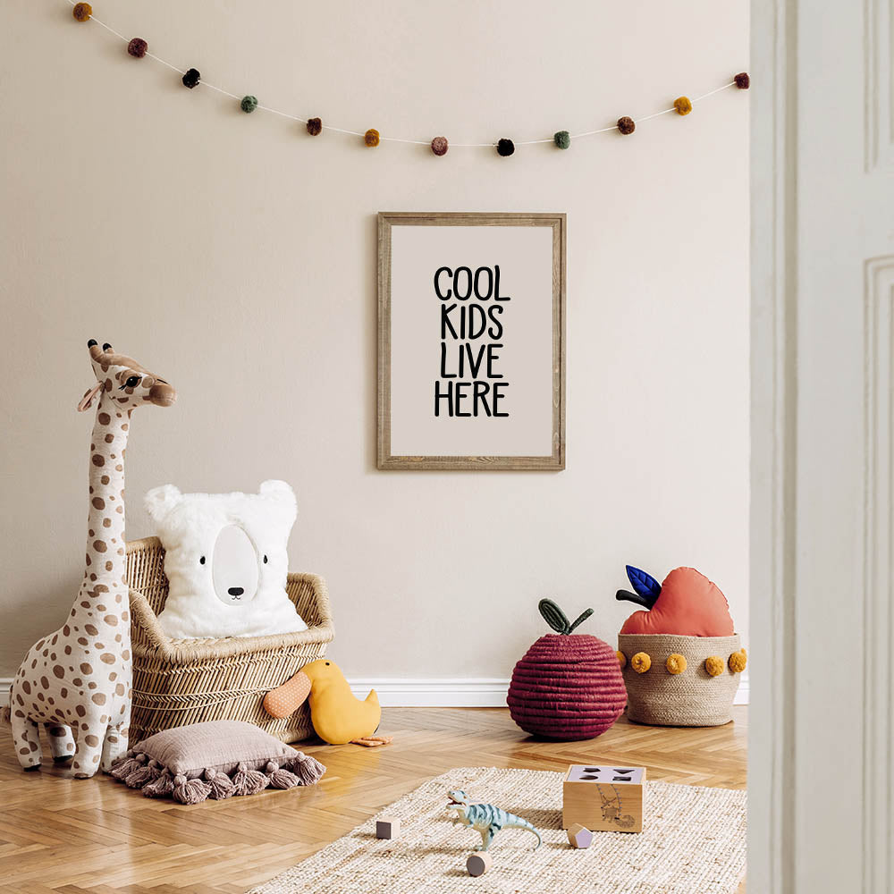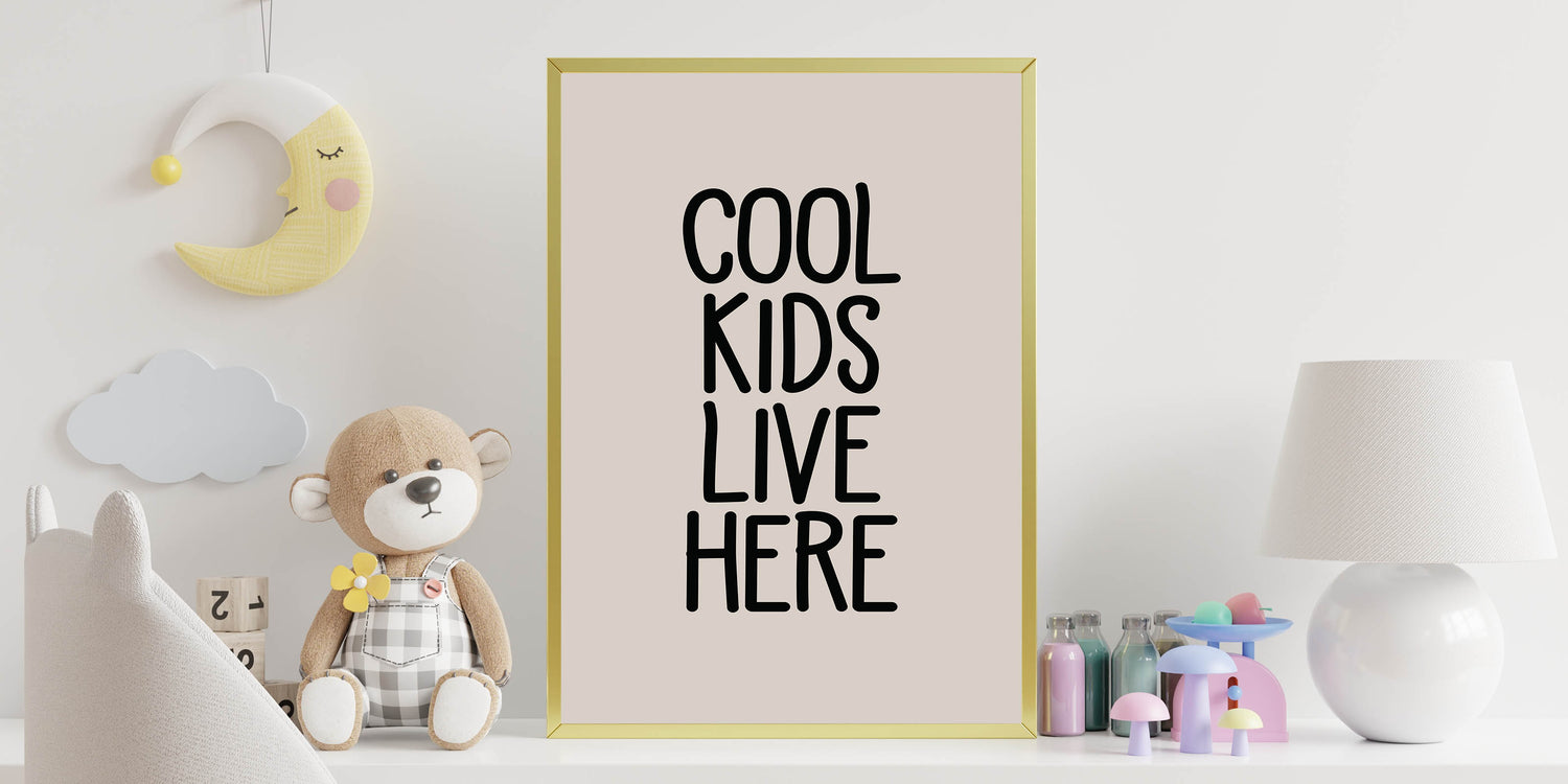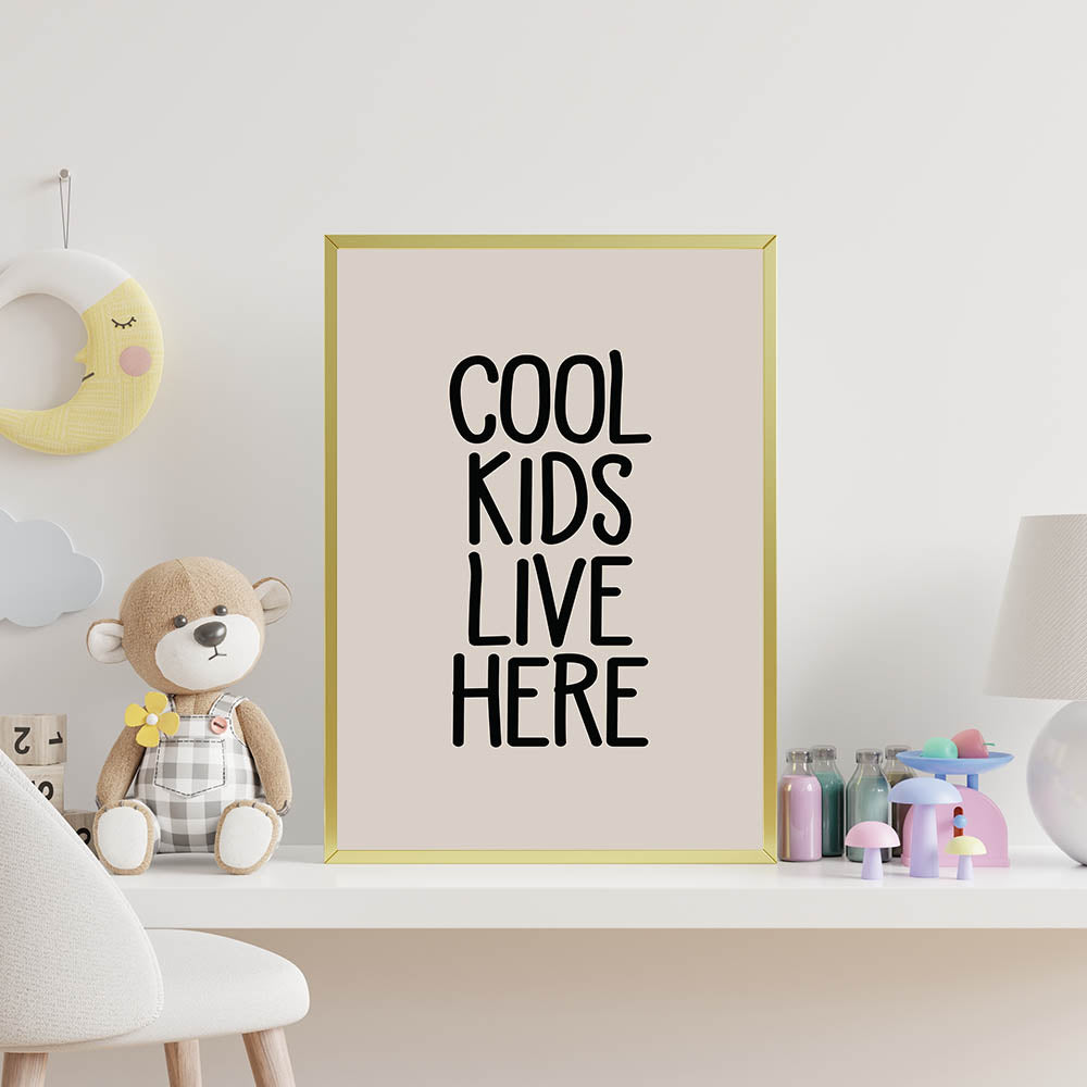 Add a fun and stylish touch to your child's space with this Cool Kids Live Here wall art. Featuring bold black typography on a warm beige background, this modern and trendy print is perfect for creating a cool and confident atmosphere in any boys' bedroom, playroom, or nursery. Whether you're looking for a statement piece or a subtle, inspiring message, this artwork blends seamlessly with minimalist, boho, and modern decor styles.