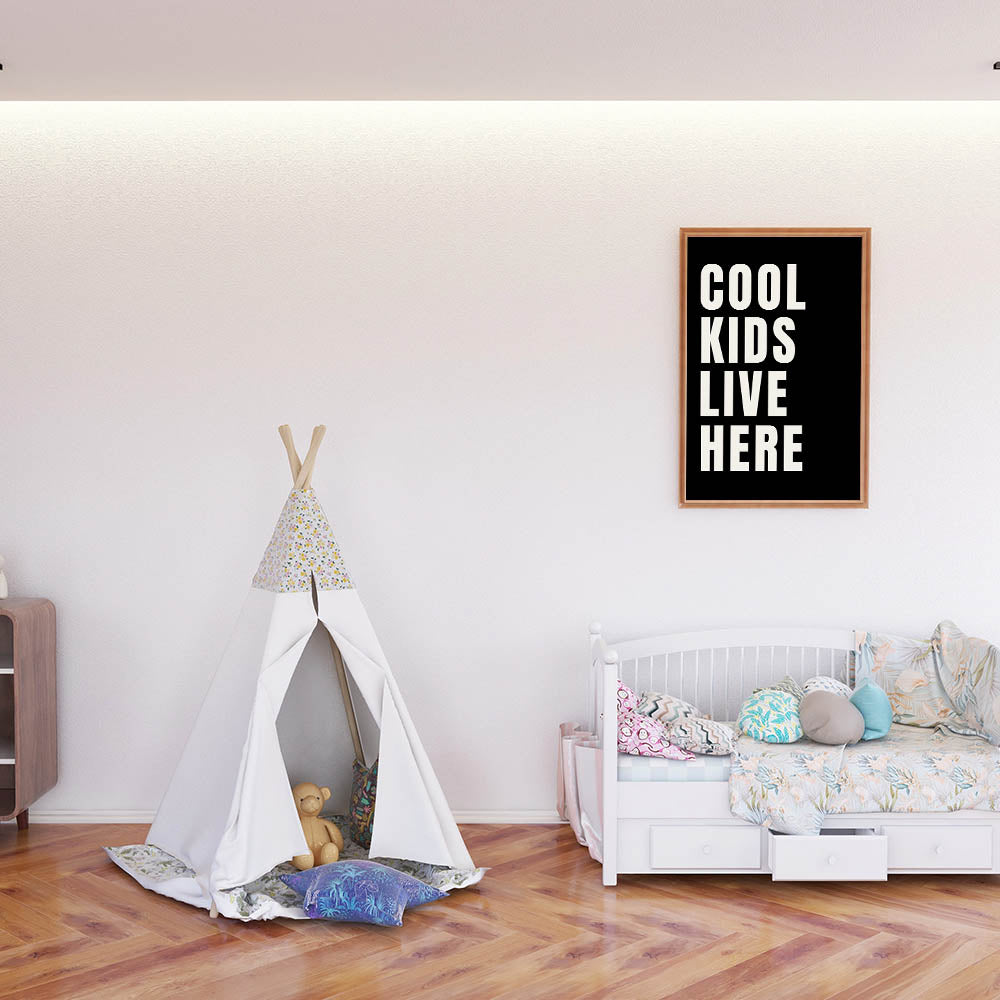 Make a bold statement with the Cool Kids Live Here wall art, perfect for boys' bedrooms, playrooms, or nurseries. This modern children's room decor blends simplicity with confidence, making it an ideal addition to any stylish space. Whether you're decorating a nursery wall art setup or enhancing a boys bedroom art collection, this piece stands out.