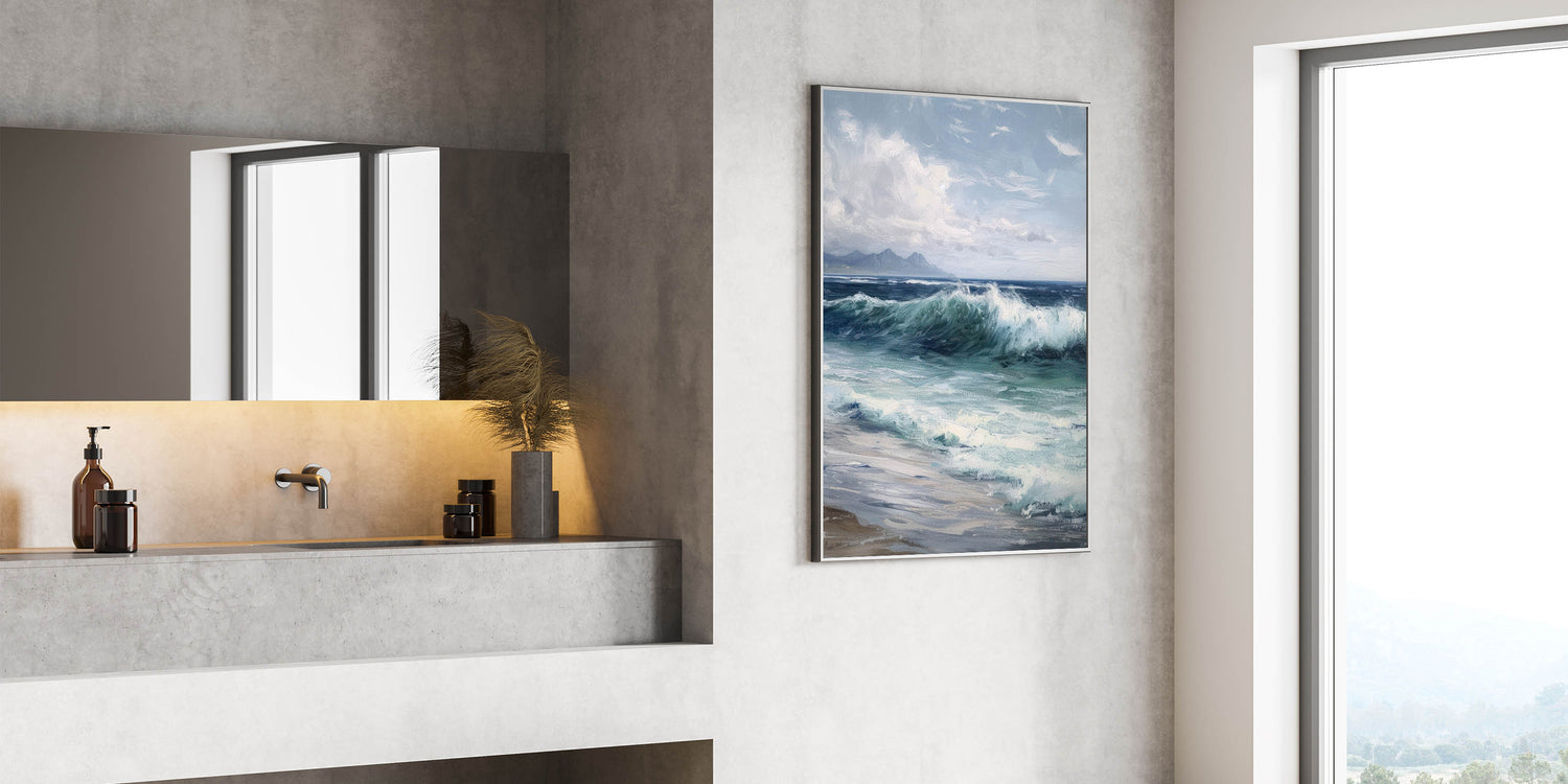- Premium materials: Available in stretched canvas, framed canvas, acrylic glass, framed acrylic glass, framed print, rolled canvas, and rolled print.