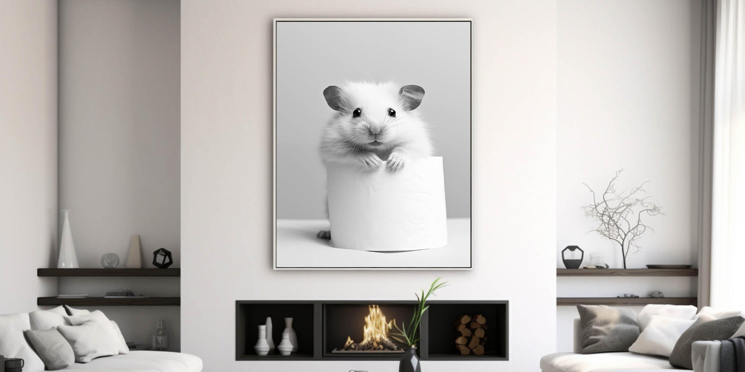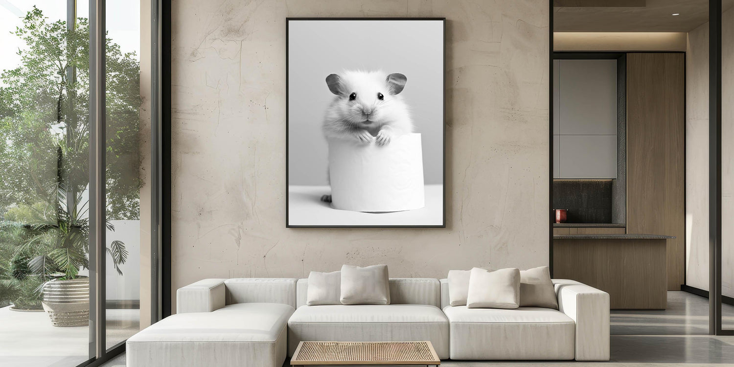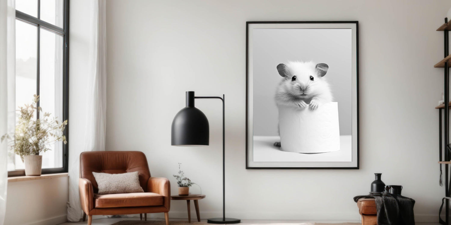 Cute Hamster Bathroom Wall Art - Minimalist Black and White Decor