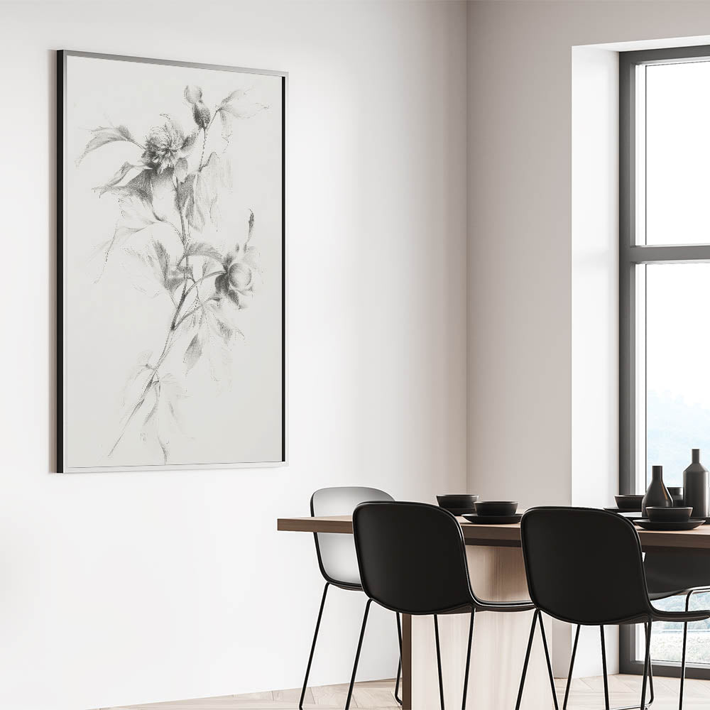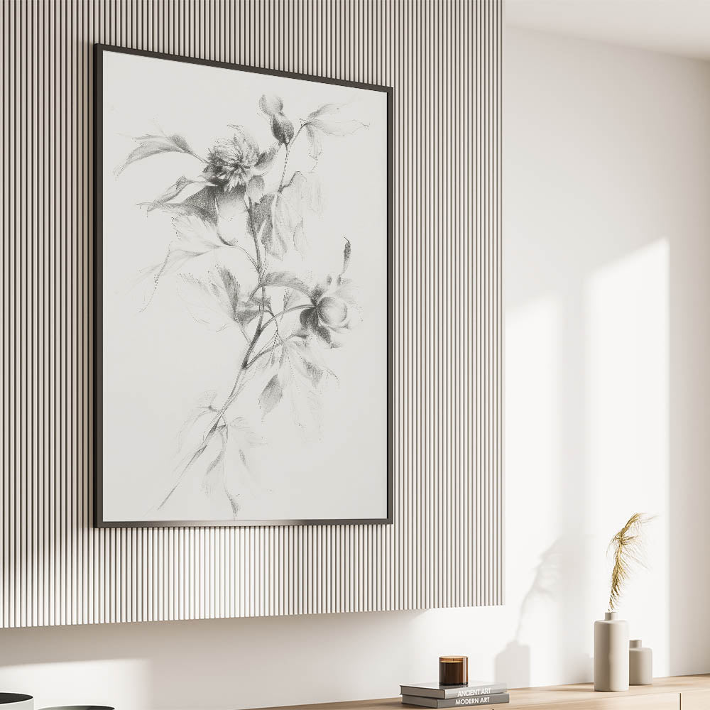 Add timeless sophistication to your space with this Delicate Floral Sketch, a beautifully rendered black-and-white botanical illustration. Featuring soft and intricate pencil strokes, this artwork captures the organic elegance of flowers and leaves, making it a versatile piece for any modern, minimalist, or nature-inspired decor.
