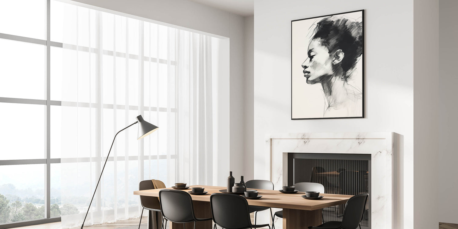 Dining Room Wall Art – Elegant Black & White Portrait Sketch