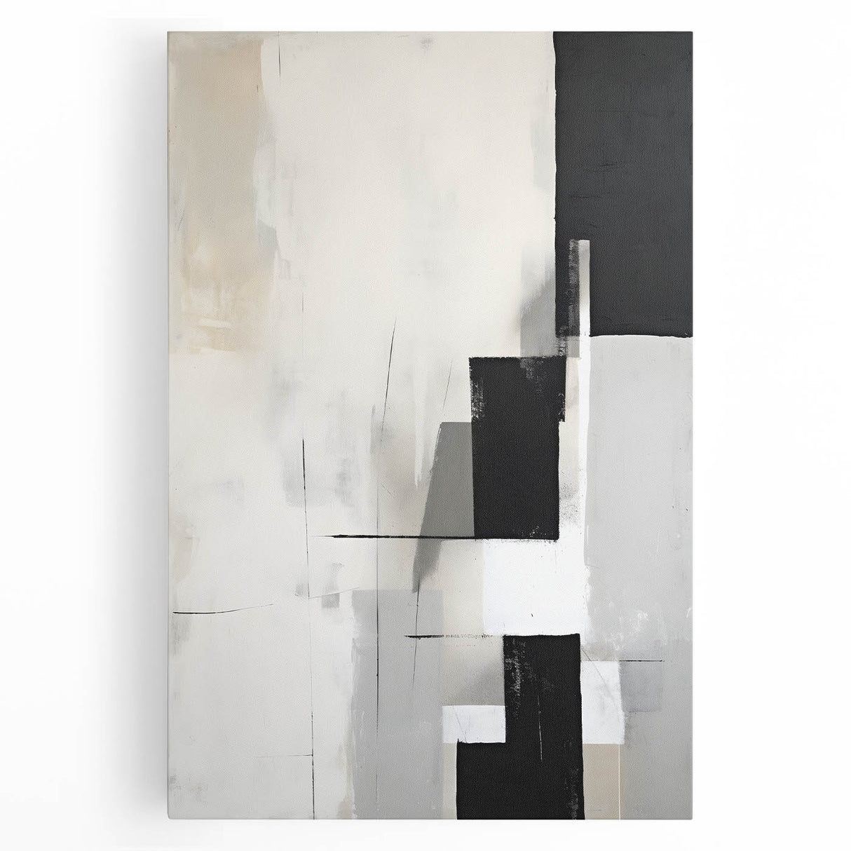 Create a sleek and modern ambiance in your dining space with this dining room wall décor, featuring a striking black, white, and gray abstract geometric design. The clean lines and layered shapes create a sense of depth and structure, making it a versatile piece for contemporary interiors. The minimalist approach allows it to blend seamlessly with modern, industrial, or Scandinavian décor styles, adding sophistication to your dining area.