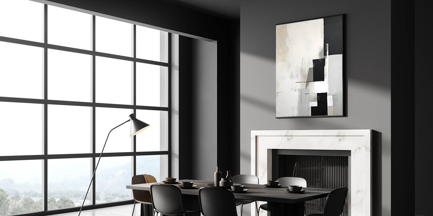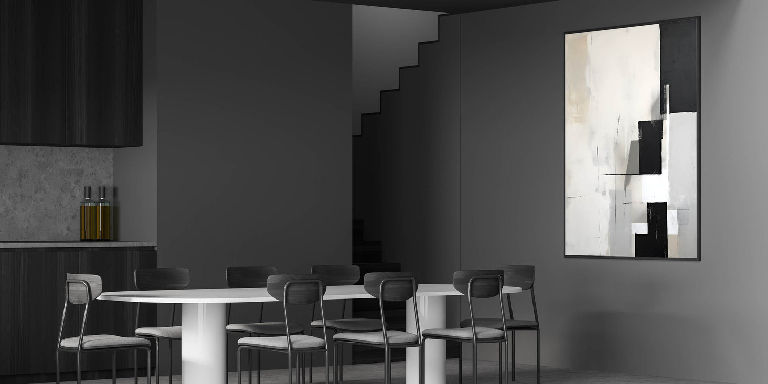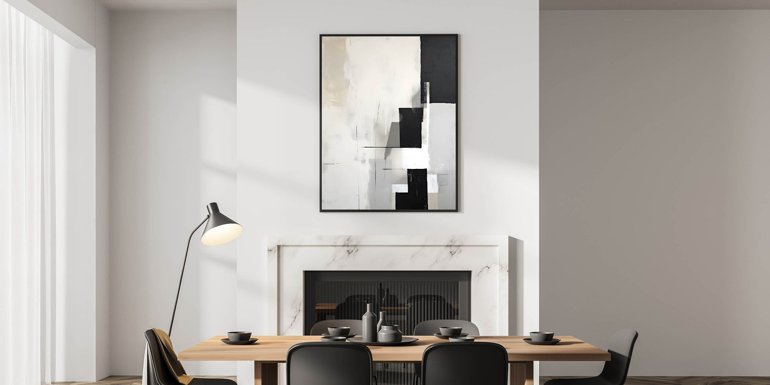 Dining Room Wall Decor - Minimalist Black & White Abstract Art