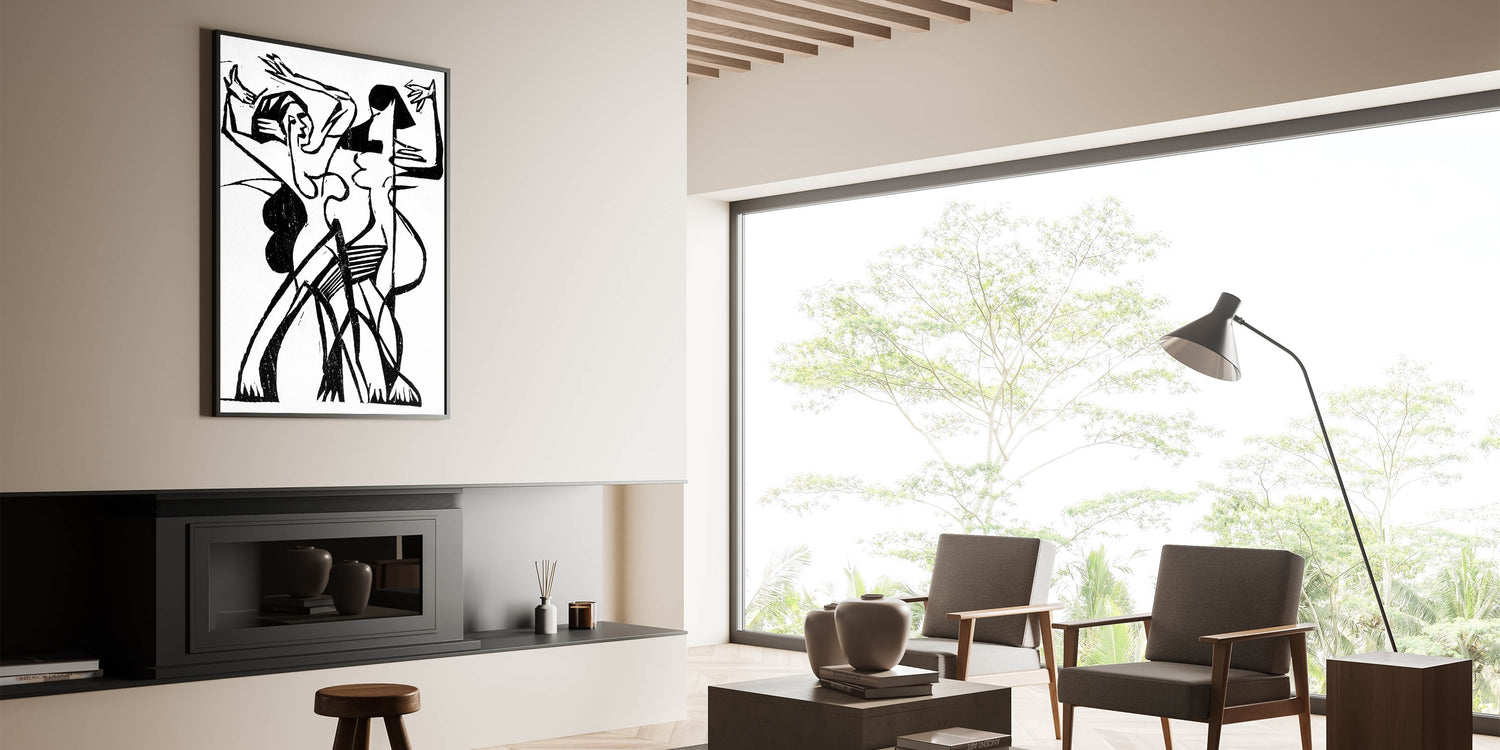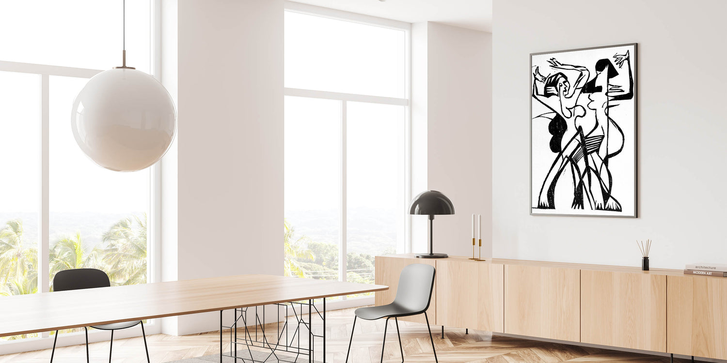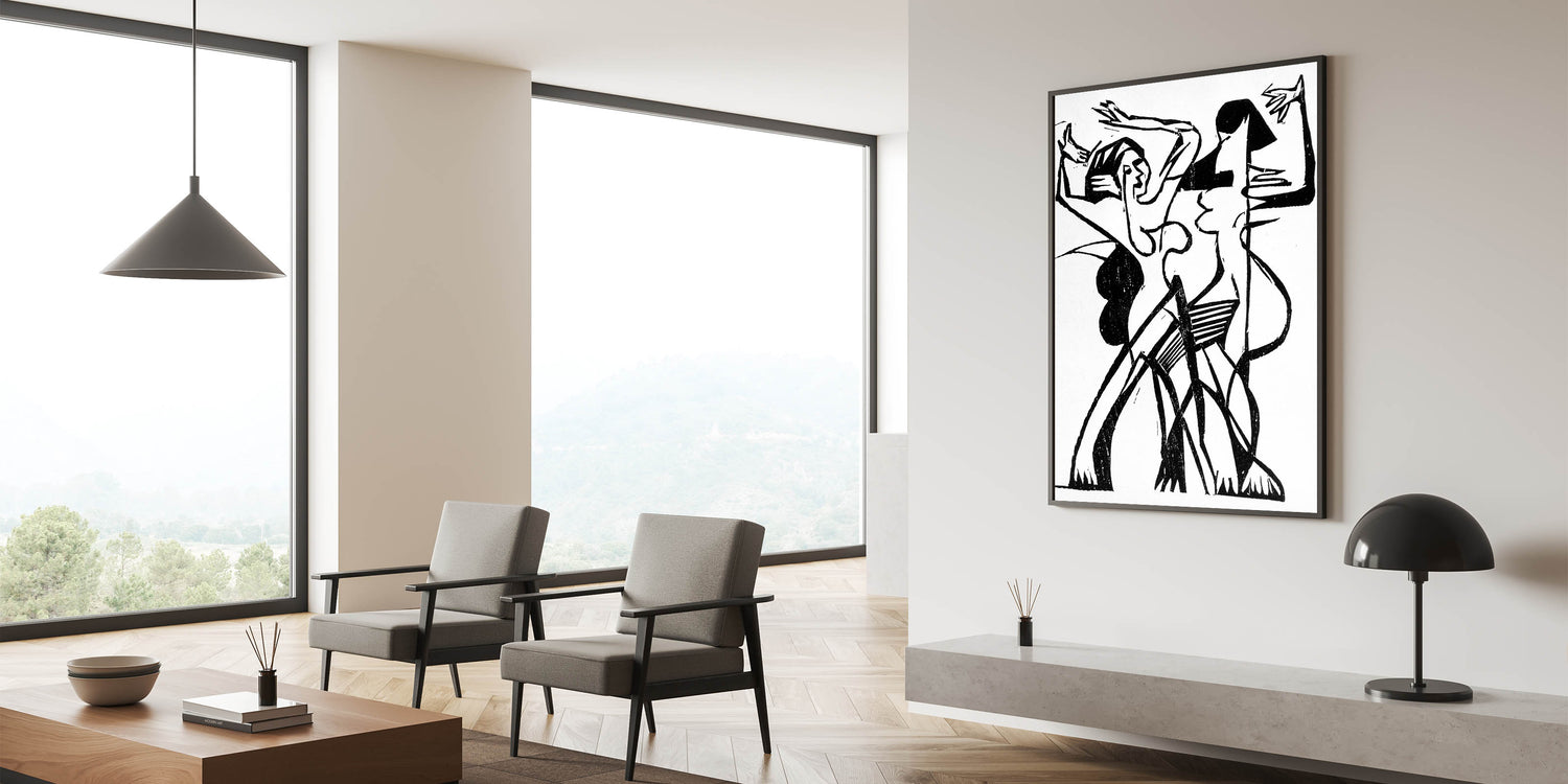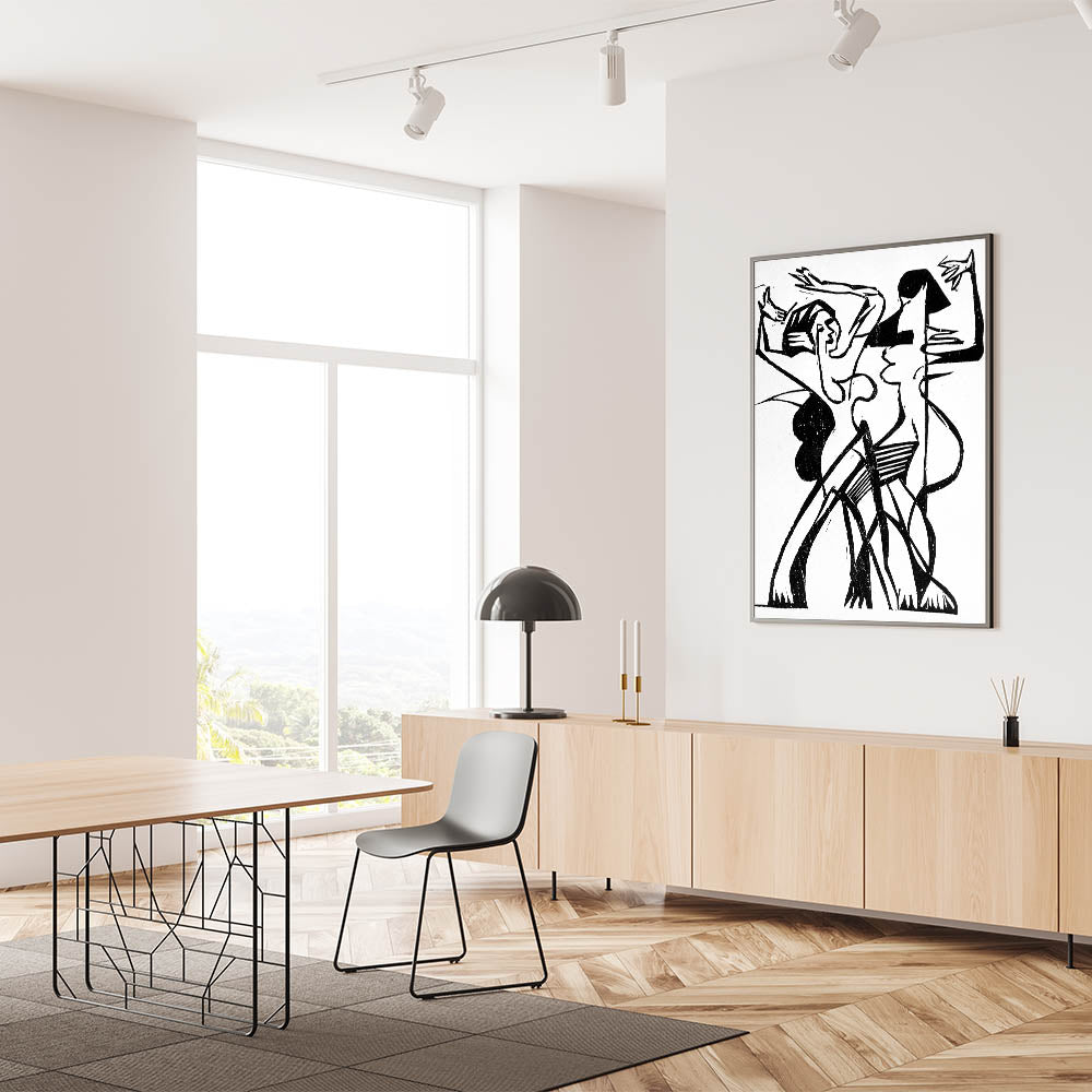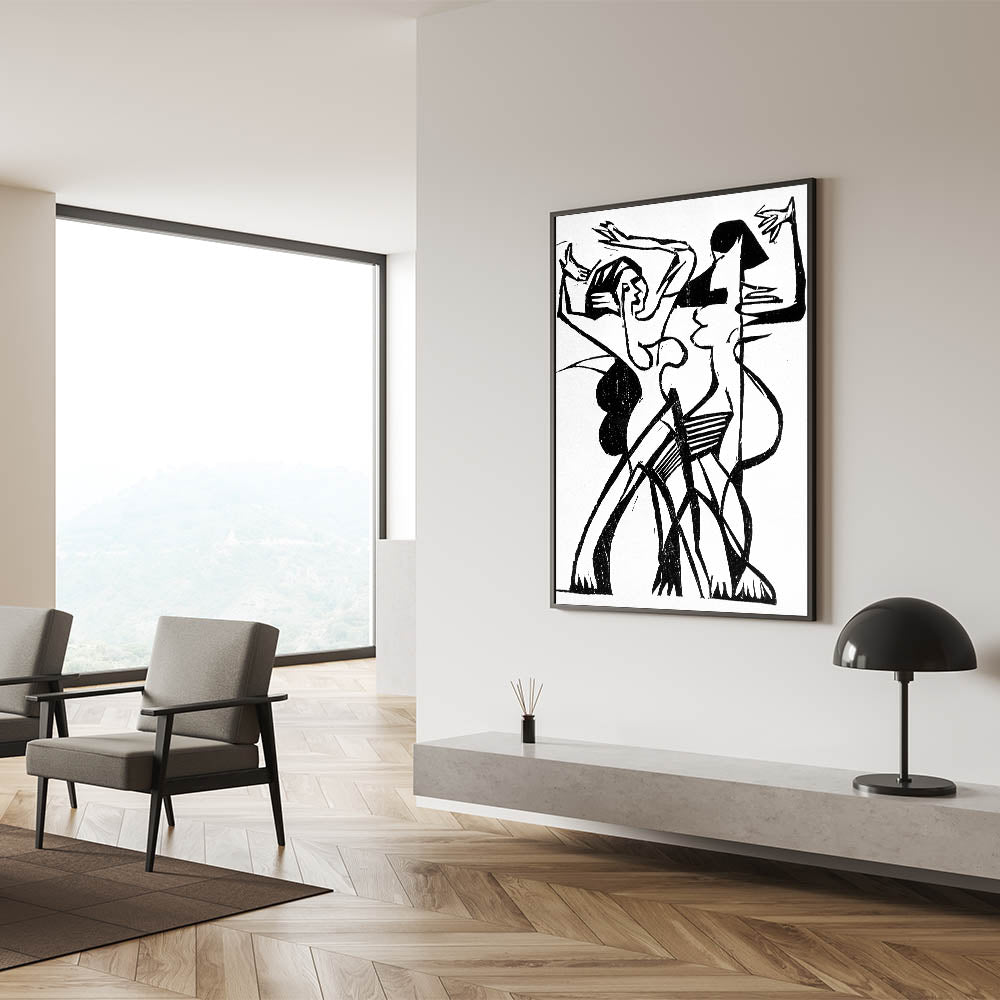 Capture the energy and fluidity of movement with this stunning Expressionist Art piece. Titled "Dance," this Modern Expressionism artwork uses bold black and white lines to depict two figures in dynamic motion. The abstract style and striking contrasts create a sense of rhythm and emotion, embodying the spirit of Expressionism. Perfect for art lovers who appreciate the interplay of movement and form.