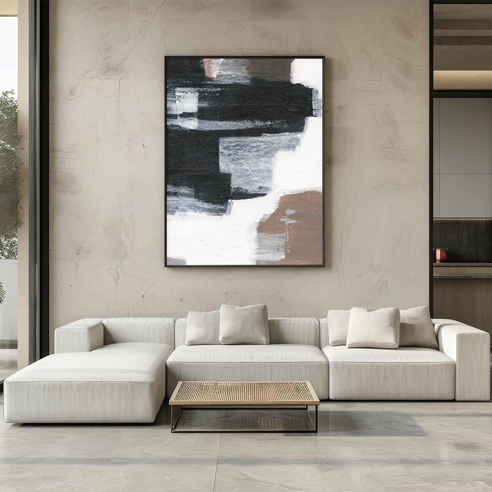 This canvas wall art delivers striking visual impact while maintaining a refined aesthetic. The black and white contrast is softened by earthy brown accents, making it both dramatic and versatile. Whether featured on a gallery wall or as a focal point, it adds artistic rhythm. Let contemporary art pieces like this elevate your space with bold minimalism.