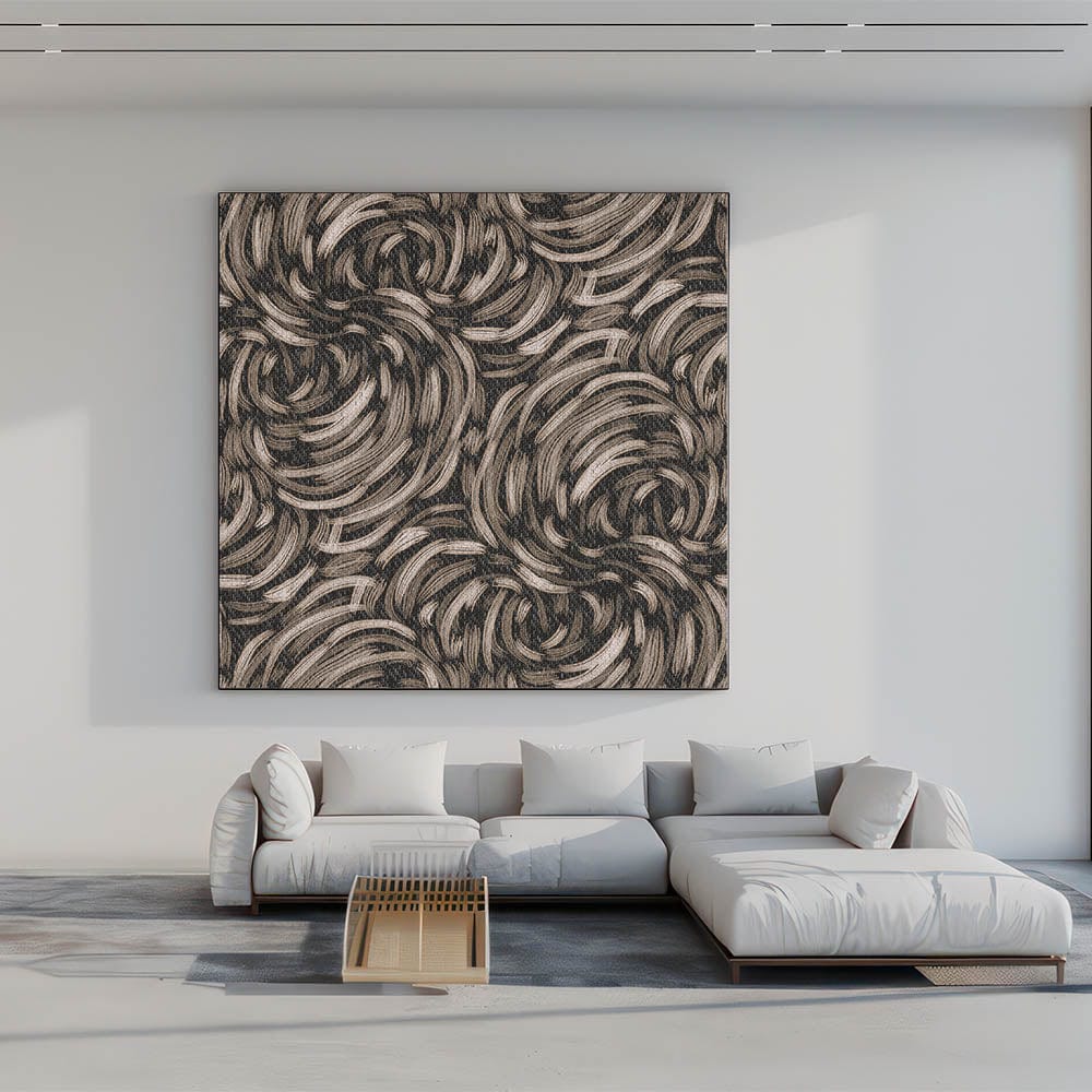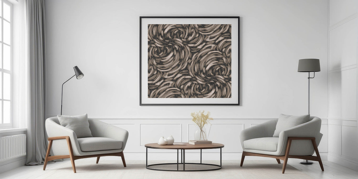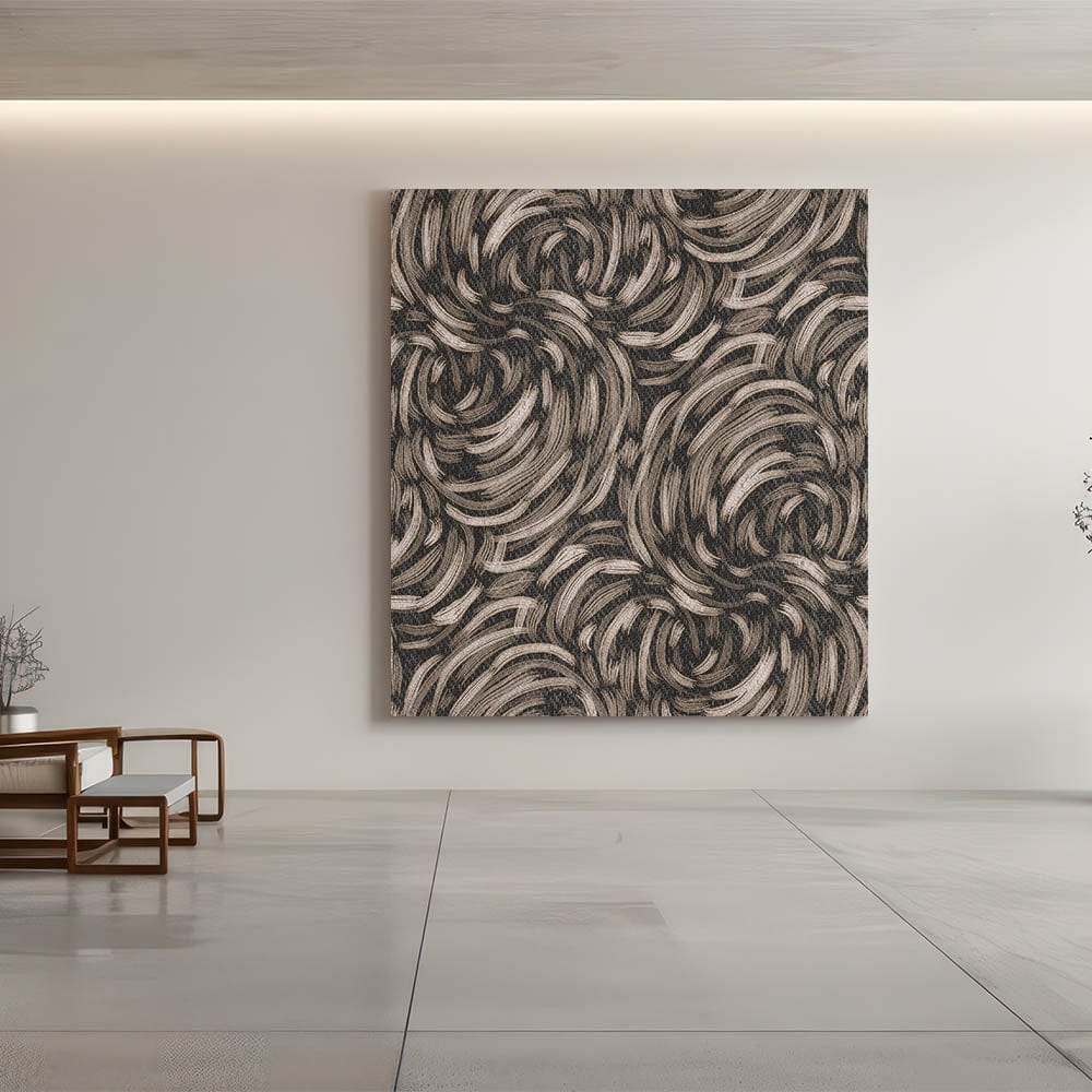 This captivating piece from our Abstracts in Earthen Harmony collection combines fluid, swirling lines in earthy tones of beige and black. The organic motion of the design evokes a sense of harmony and energy, making it an ideal addition to contemporary and minimalist spaces.