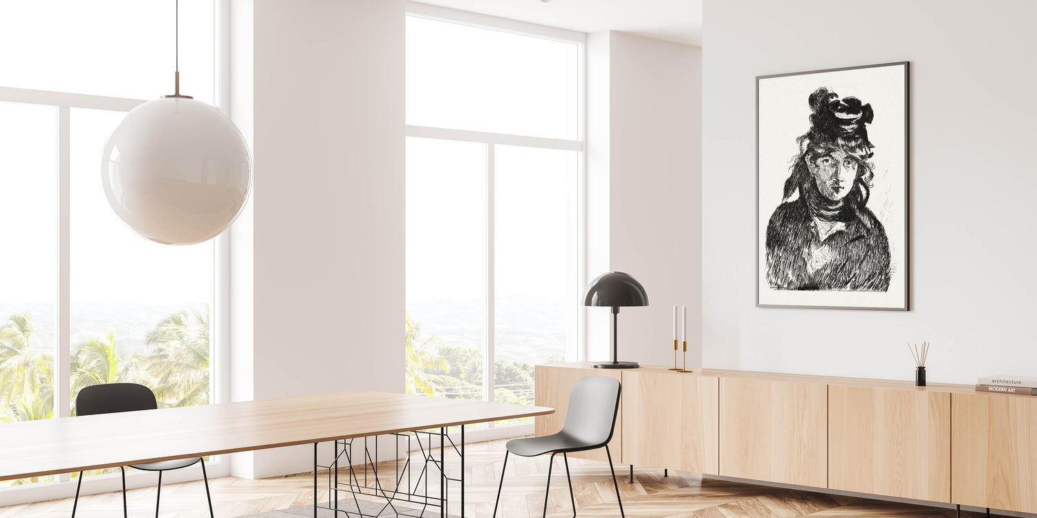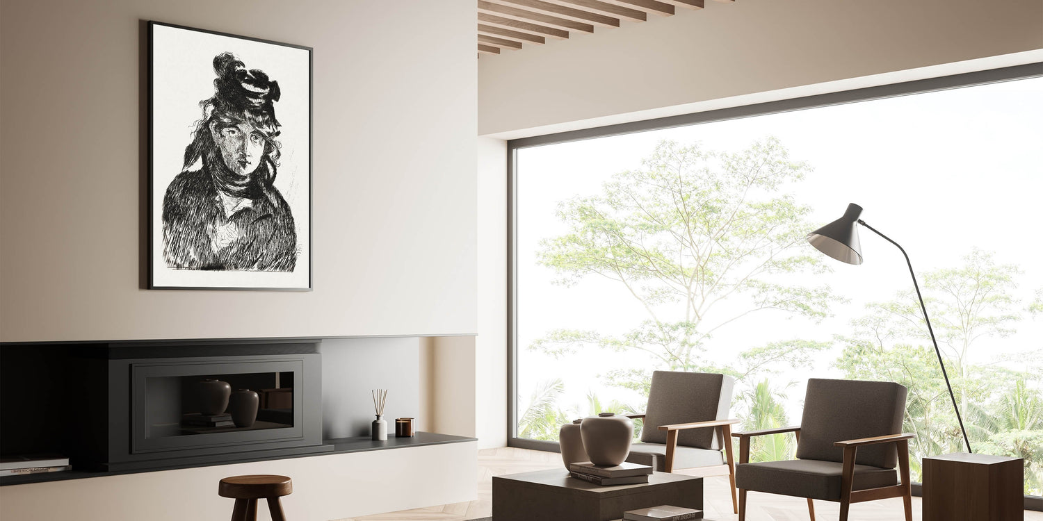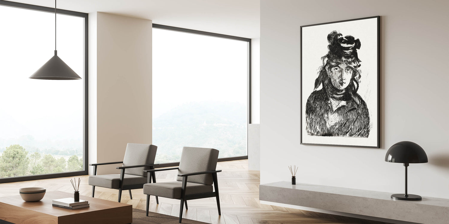 This Impressionist-inspired artwork for home celebrates Manet’s skill in portraying the essence of his subjects. Ideal for fans of Berthe Morisot, Impressionist art, or timeless black-and-white compositions, this portrait adds elegance and artistic depth to any collection.