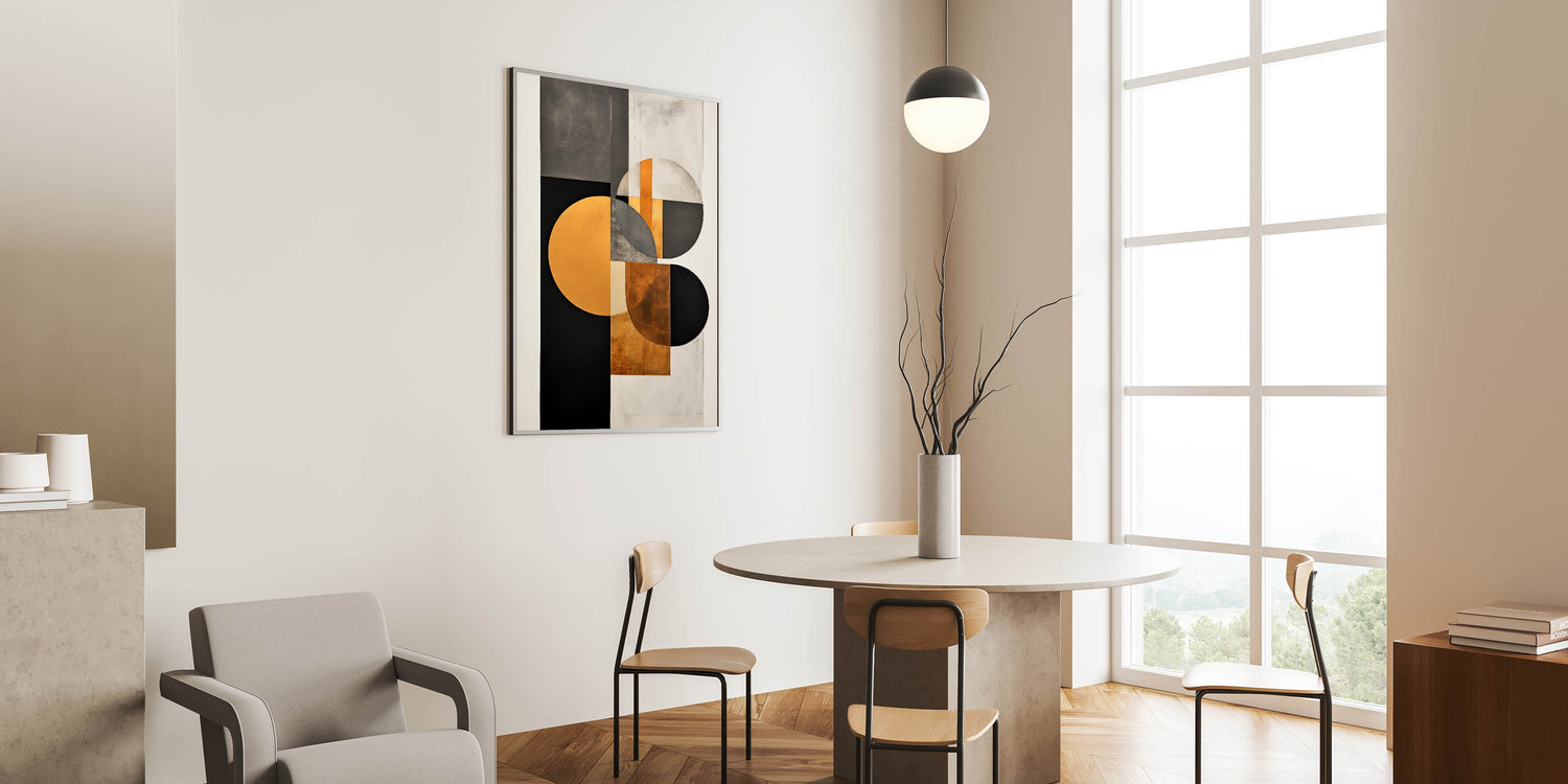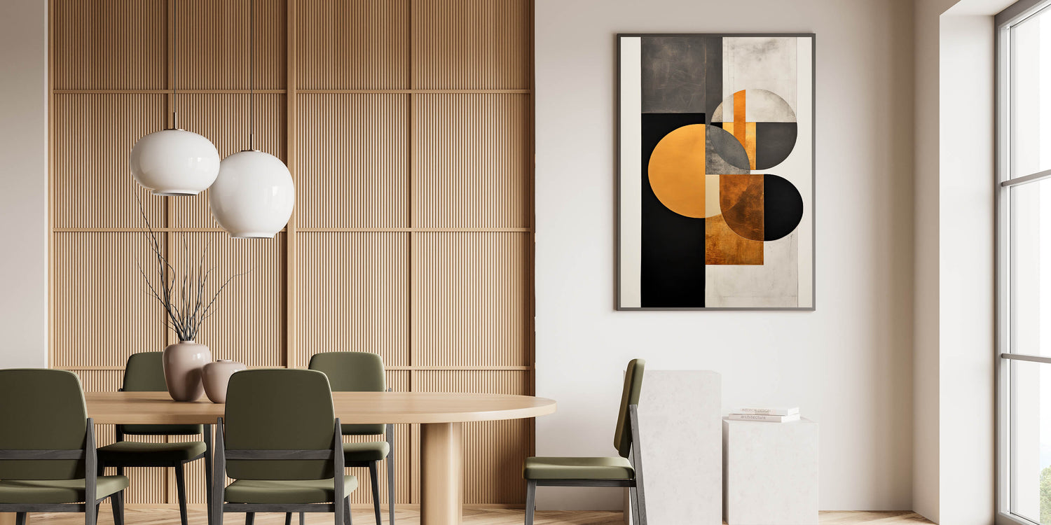 Elegant Dining Room Art Prints - Geometric Black & Gold Design