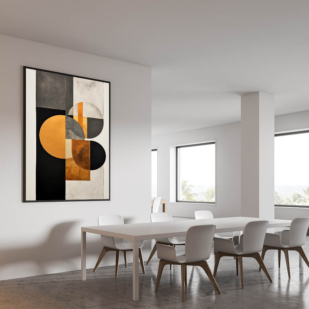 This contemporary dining art piece is perfect for those who appreciate modern luxury. Whether displayed as a rolled canvas print for the dining area or framed for an upscale feel, this artwork elevates your dining room wall décor with its bold and stylish appeal.