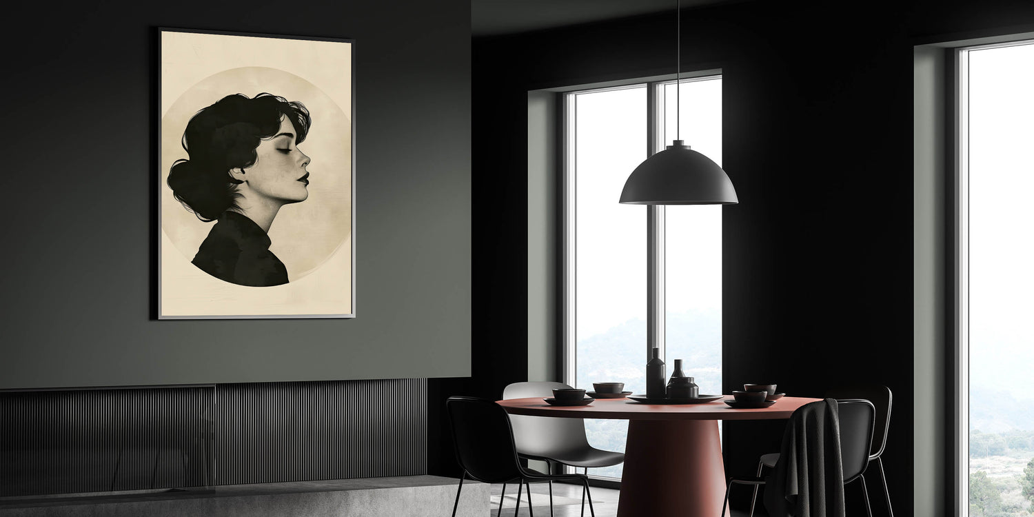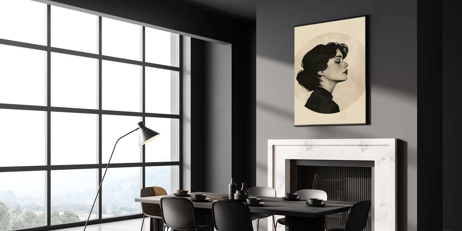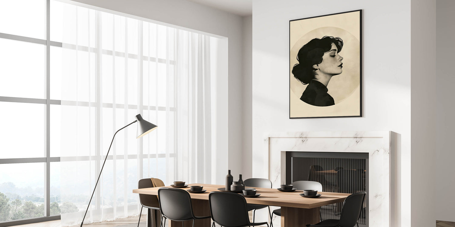 Elegant Dining Room Wall Art - Modern Black & White Portrait Print