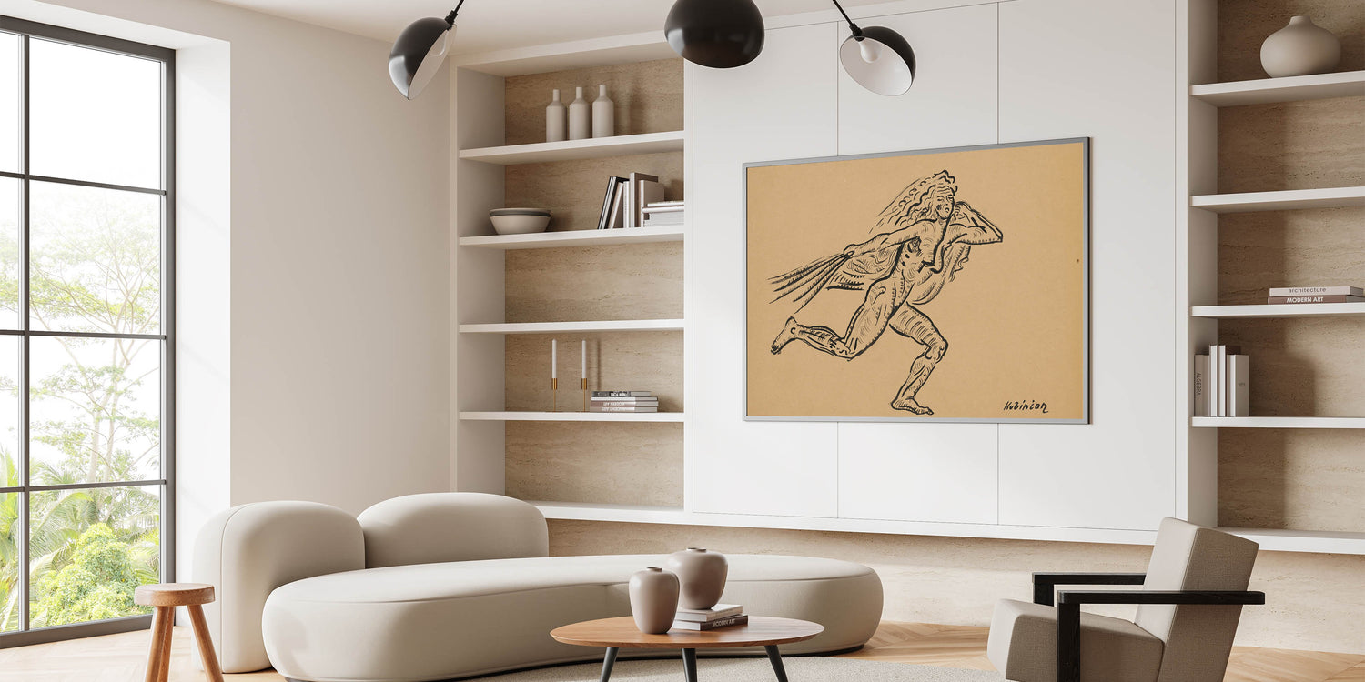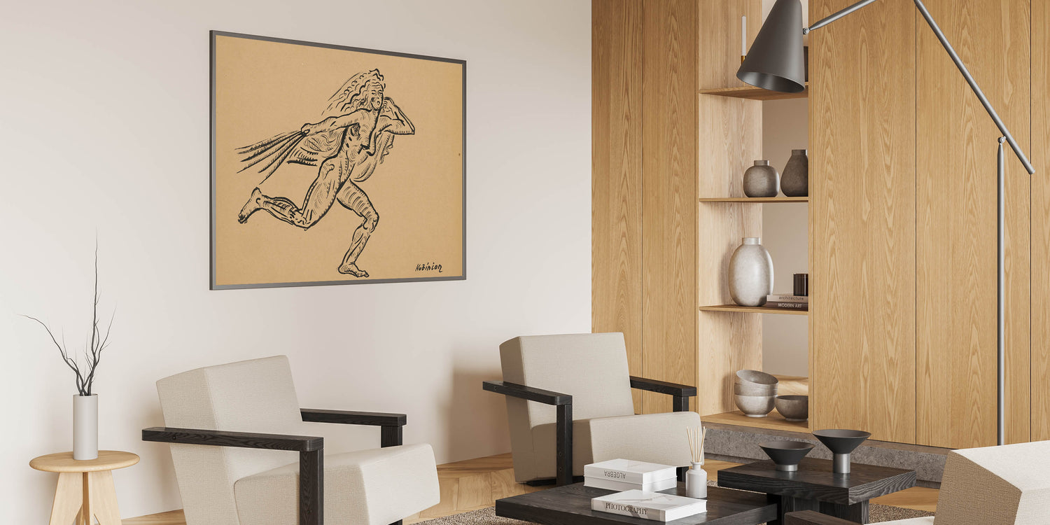 Infuse your interior with the vitality of this Expressionist canvas print, where art meets the elemental force of nature. Female Figure (Wind) is a bold and timeless masterpiece that celebrates motion and power.