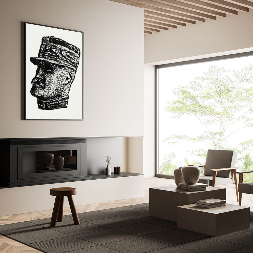 This Vibrant Expressionism Painting presents a bold Abstract Expressionism portrait of Ferdinand Foch, blending textured lines and sharp contrasts in a striking black-and-white design. The intricate detailing and expressive brushstrokes make this Expressionist Art for Sale a timeless piece, perfect for lovers of modern and historical art.