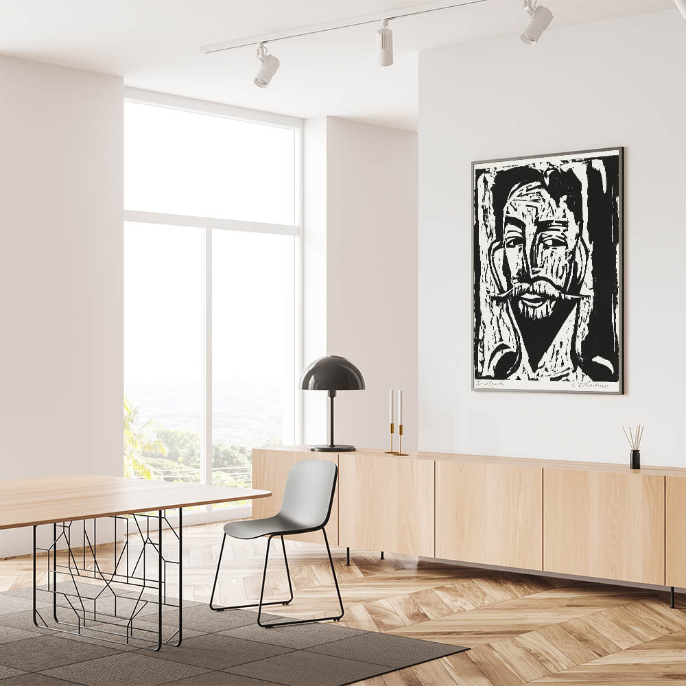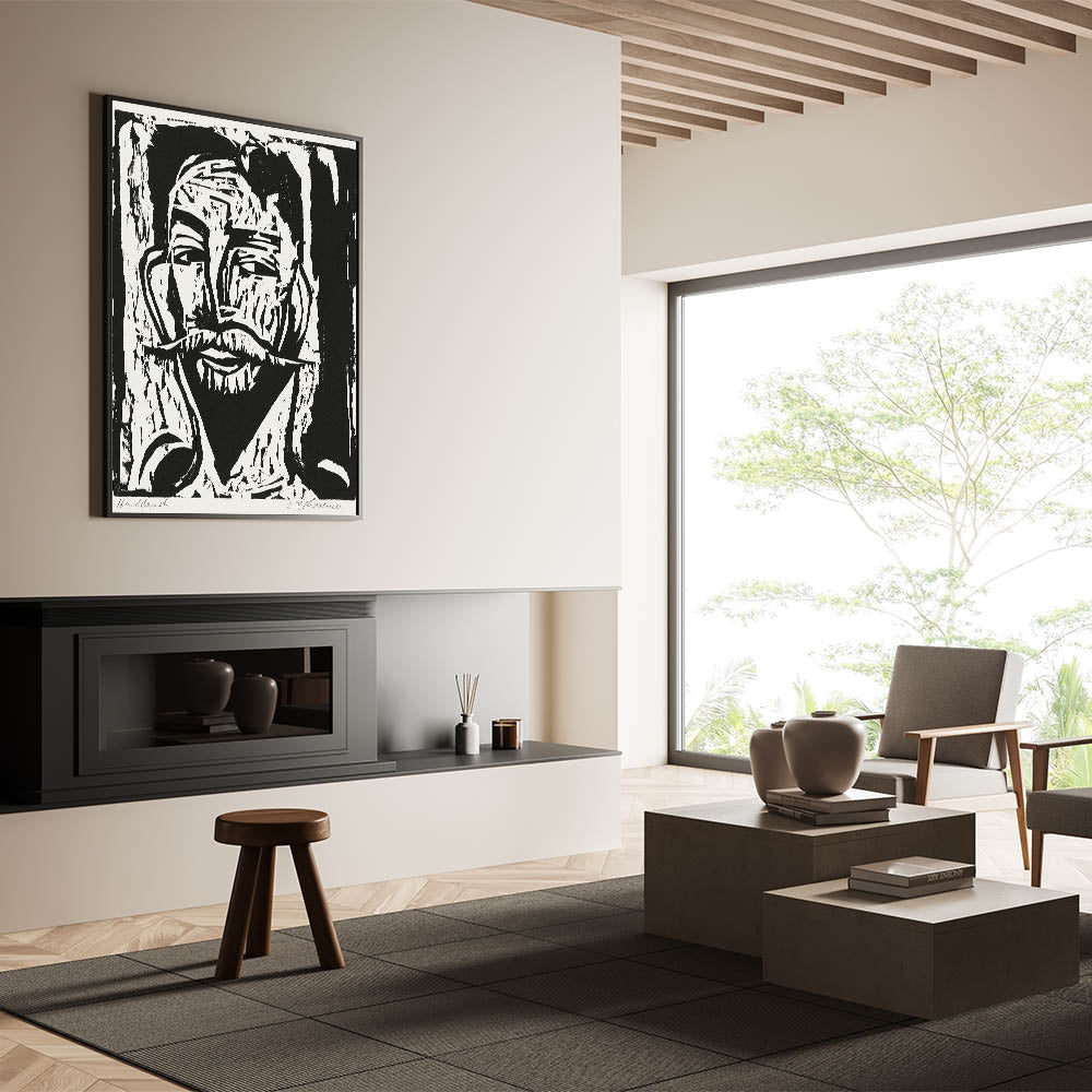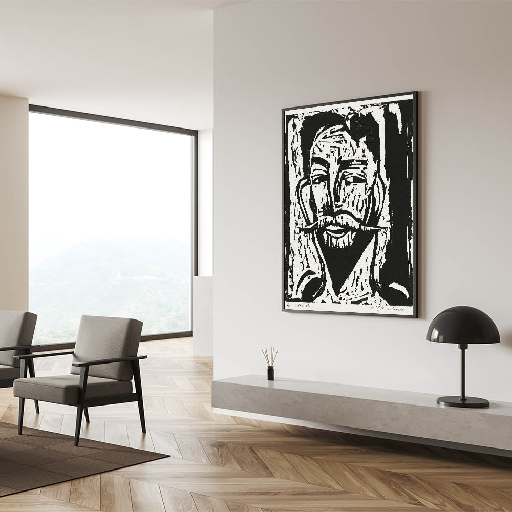 Elevate your decor with this captivating Expressionist Art piece. This bold monochrome portrait, crafted with sharp and expressive strokes, captures the intensity and abstraction of the Expressionist movement. The intricate detailing and dramatic contrasts make it a statement piece that resonates with modern and contemporary art enthusiasts.