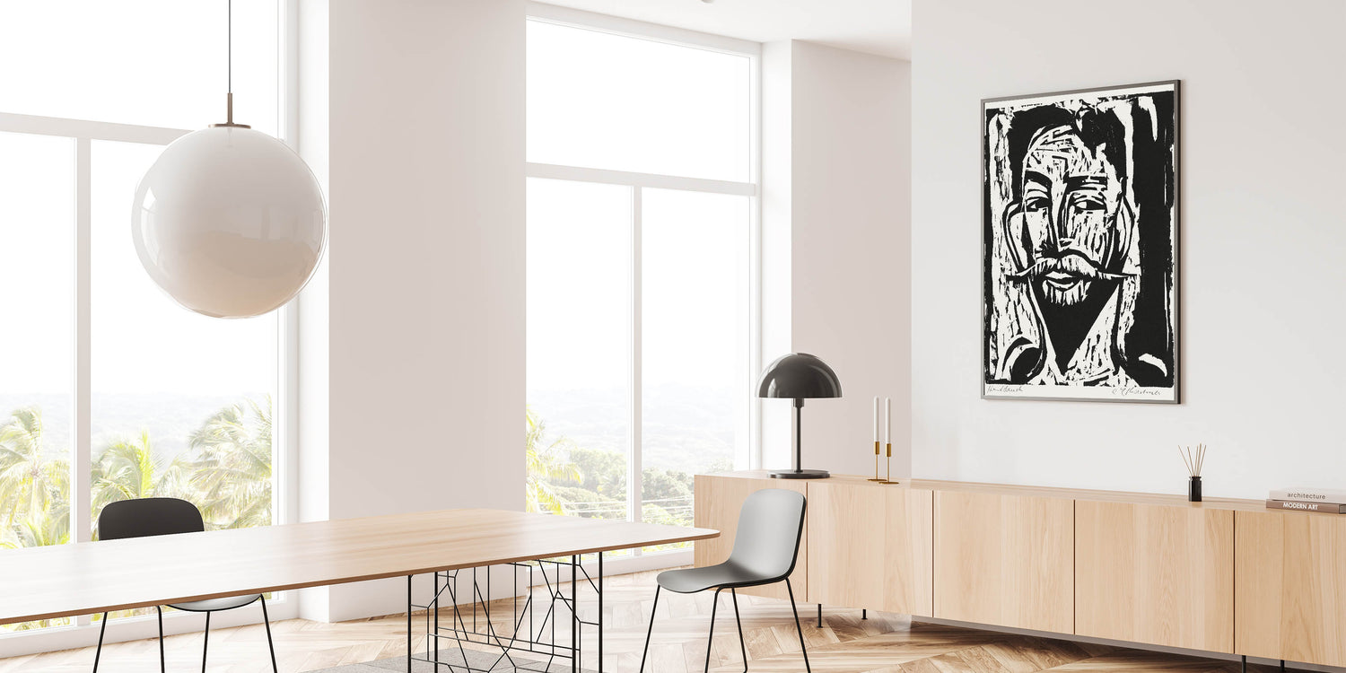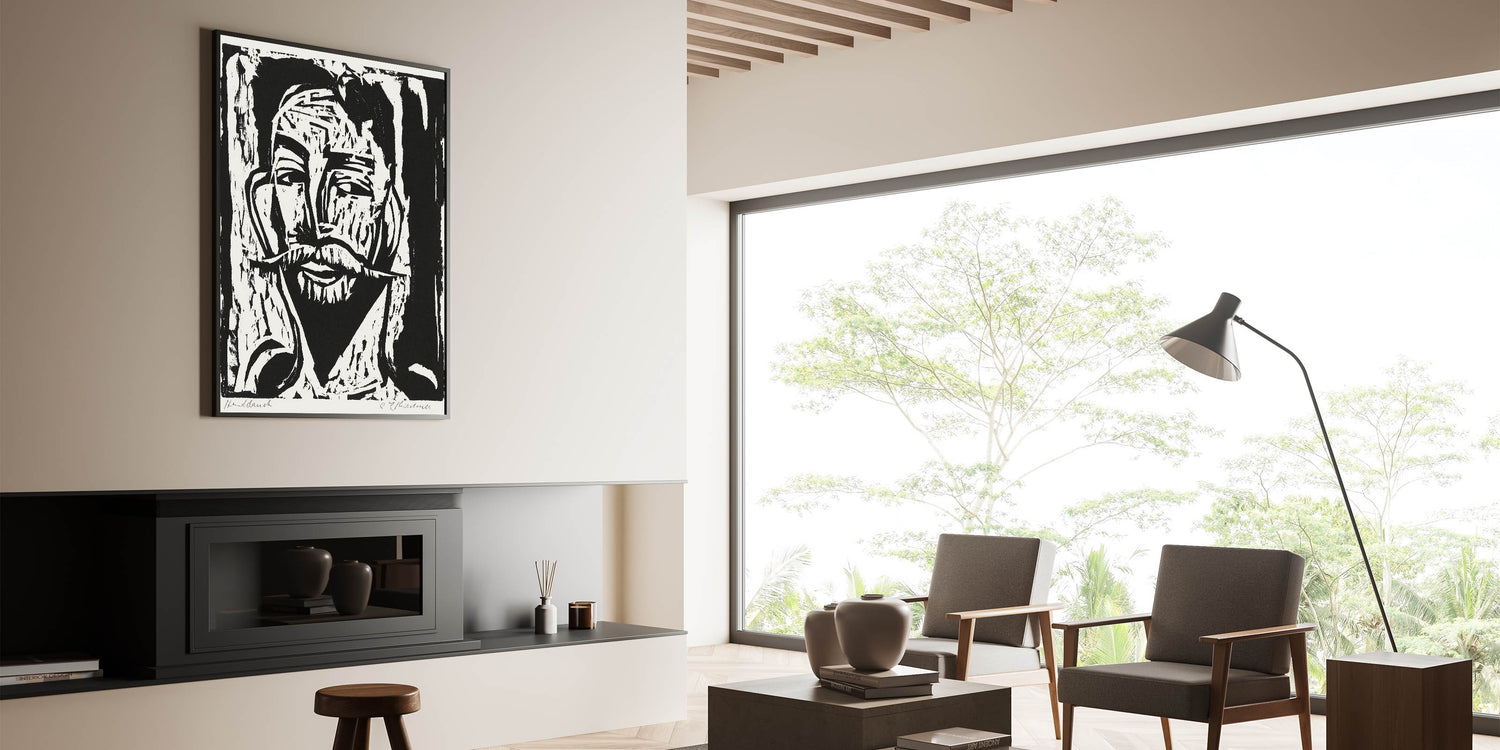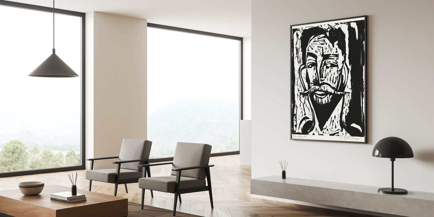 Elevate your decor with this captivating Expressionist Art piece. This bold monochrome portrait, crafted with sharp and expressive strokes, captures the intensity and abstraction of the Expressionist movement. The intricate detailing and dramatic contrasts make it a statement piece that resonates with modern and contemporary art enthusiasts.