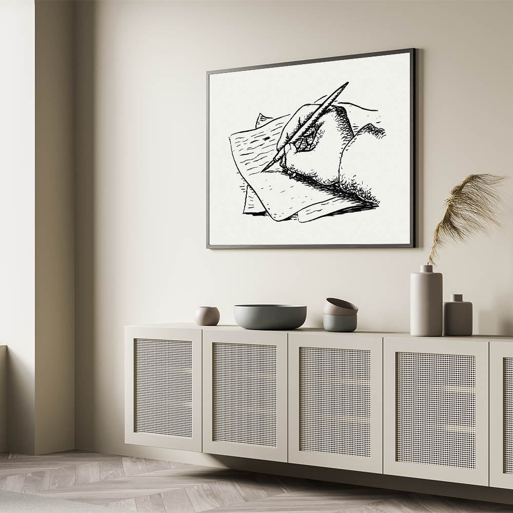 Celebrate the simplicity and depth of Expressionist Art with Leo Gestel's "Writing Hand." This exquisite black-and-white artwork captures the elegance of a hand in motion, penning thoughts onto paper. The bold strokes and intricate details embody the essence of Modern Expressionism, bringing life and emotion to a seemingly simple act. This piece is perfect for minimalistic interiors or as an intellectual addition to a home office or study.
