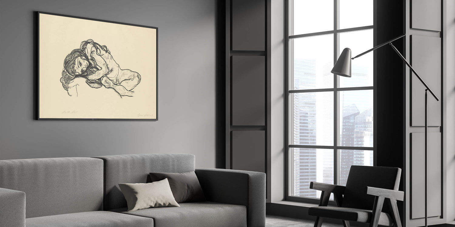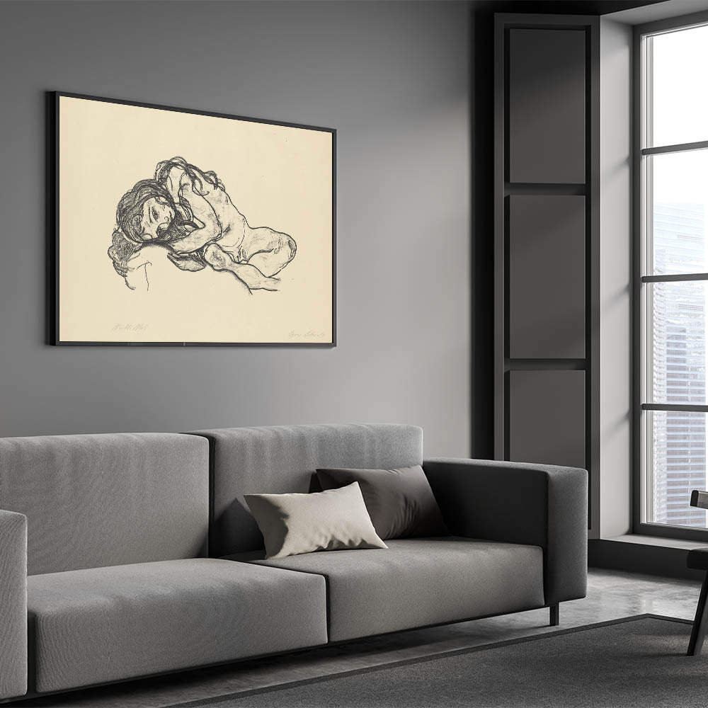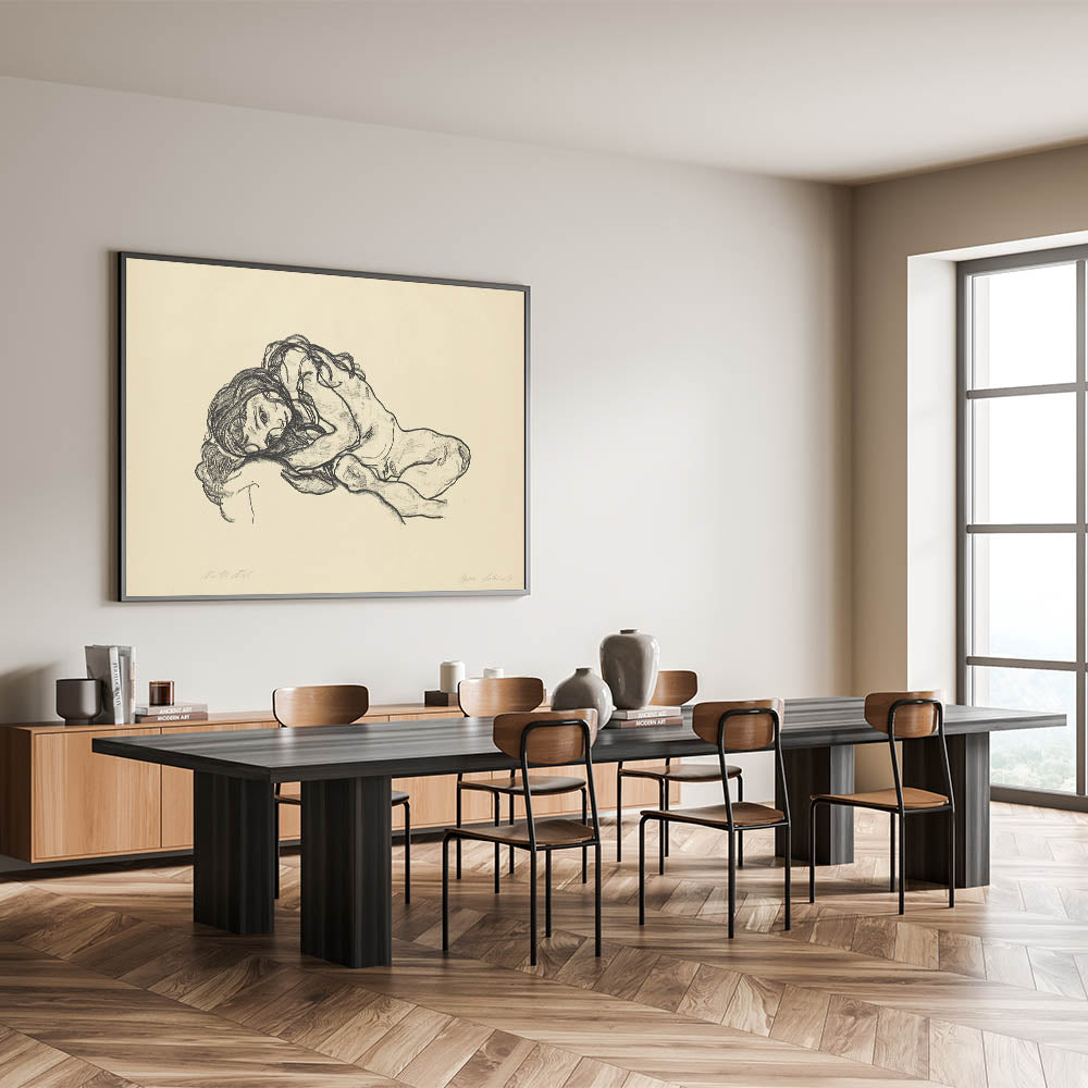 Bring a touch of introspection and beauty to your space with this Expressionist Art sketch by Egon Schiele. Featuring a reclining woman rendered in raw, expressive charcoal strokes, this artwork captures the human form in its most vulnerable and emotional state. A hallmark of Modern Expressionism, this piece conveys deep emotion and artistic brilliance, perfect for those who appreciate minimalist yet powerful art.