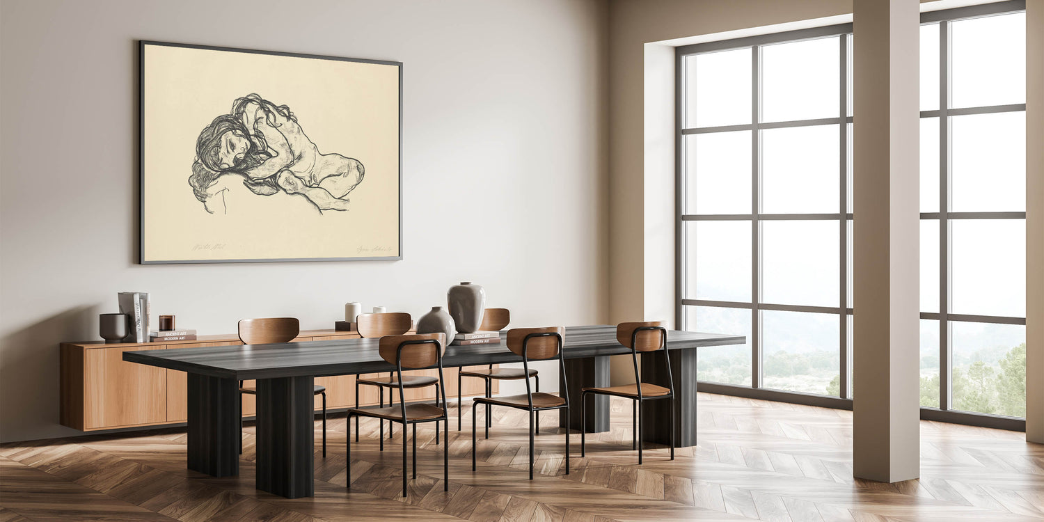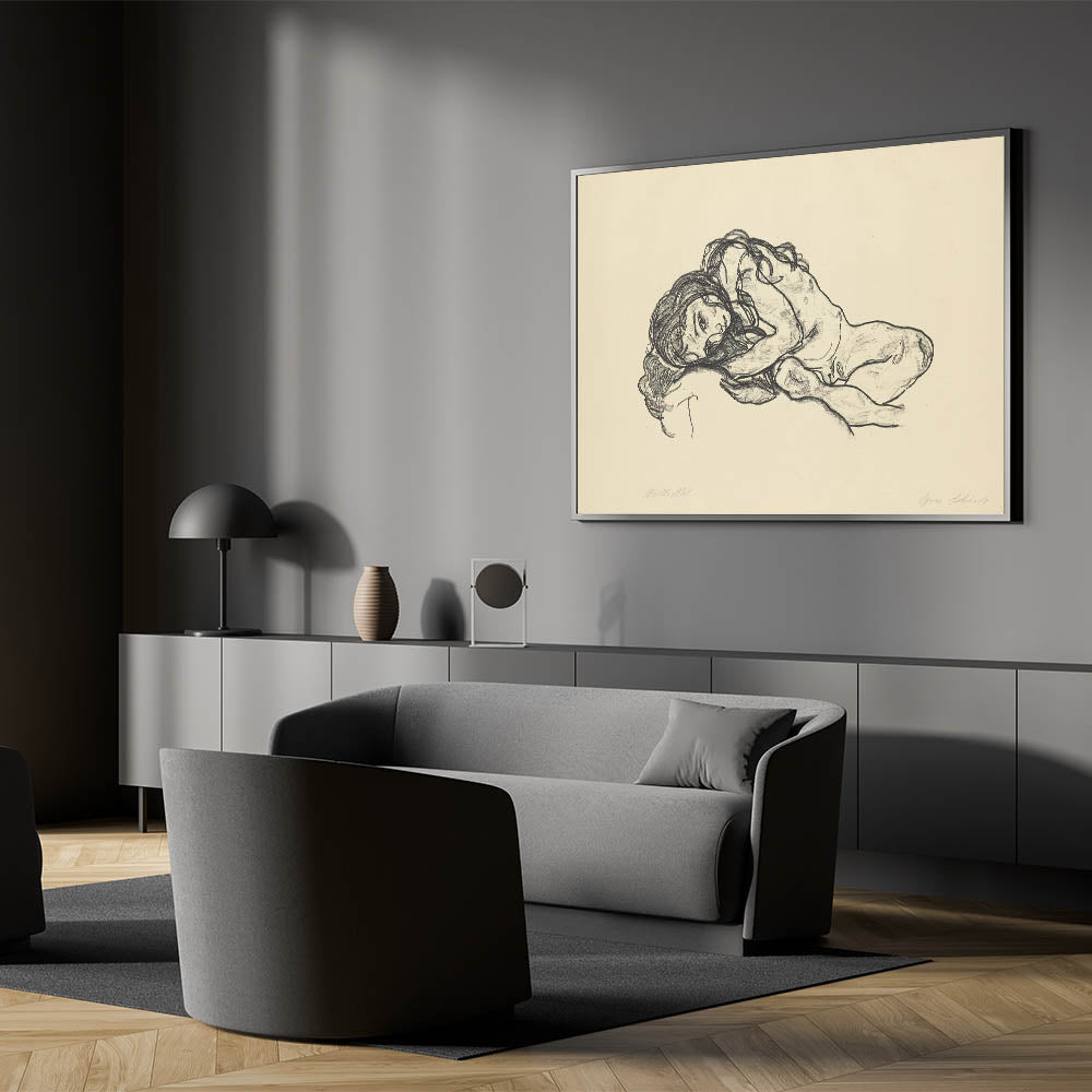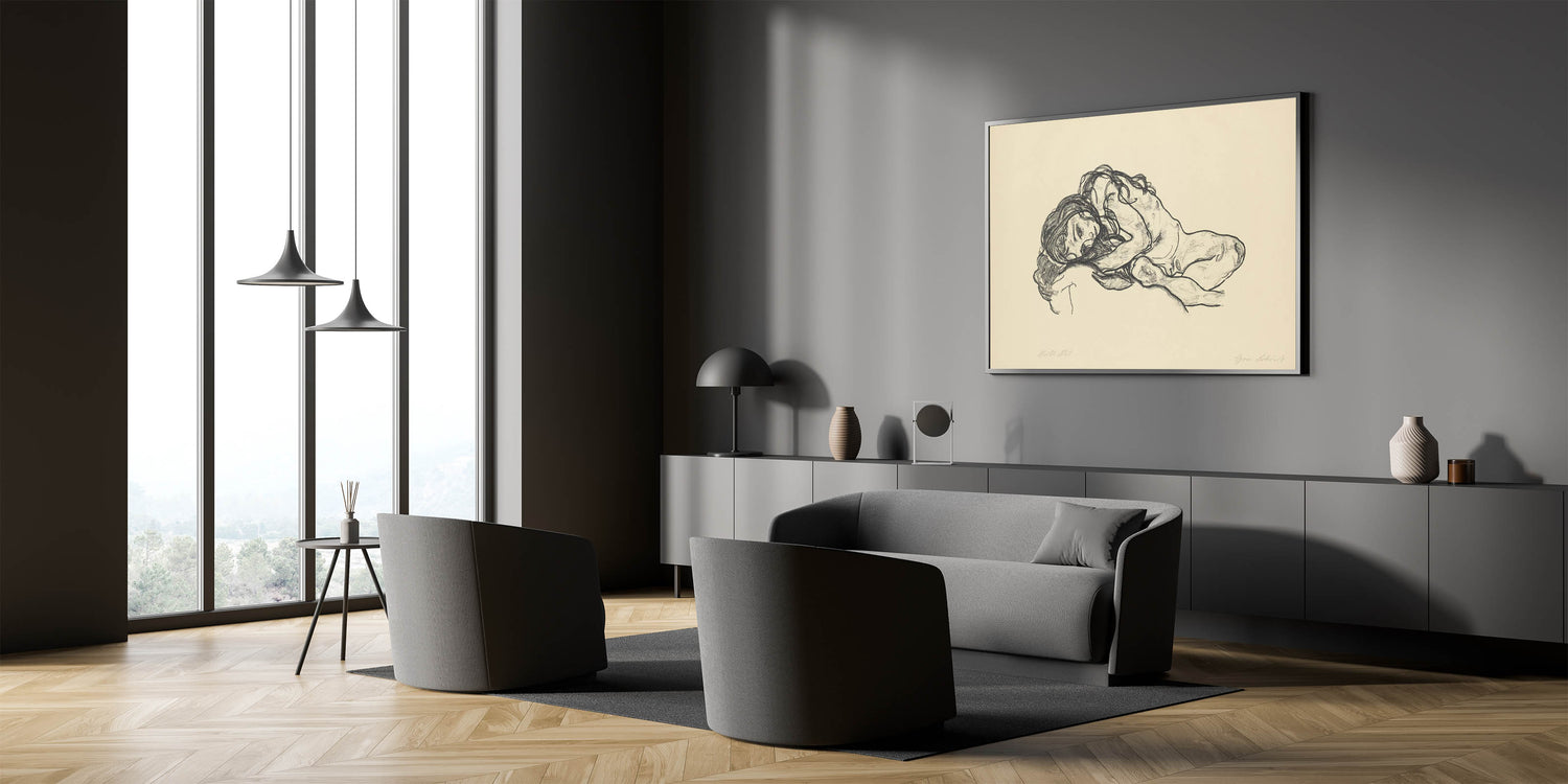 Bring a touch of introspection and beauty to your space with this Expressionist Art sketch by Egon Schiele. Featuring a reclining woman rendered in raw, expressive charcoal strokes, this artwork captures the human form in its most vulnerable and emotional state. A hallmark of Modern Expressionism, this piece conveys deep emotion and artistic brilliance, perfect for those who appreciate minimalist yet powerful art.