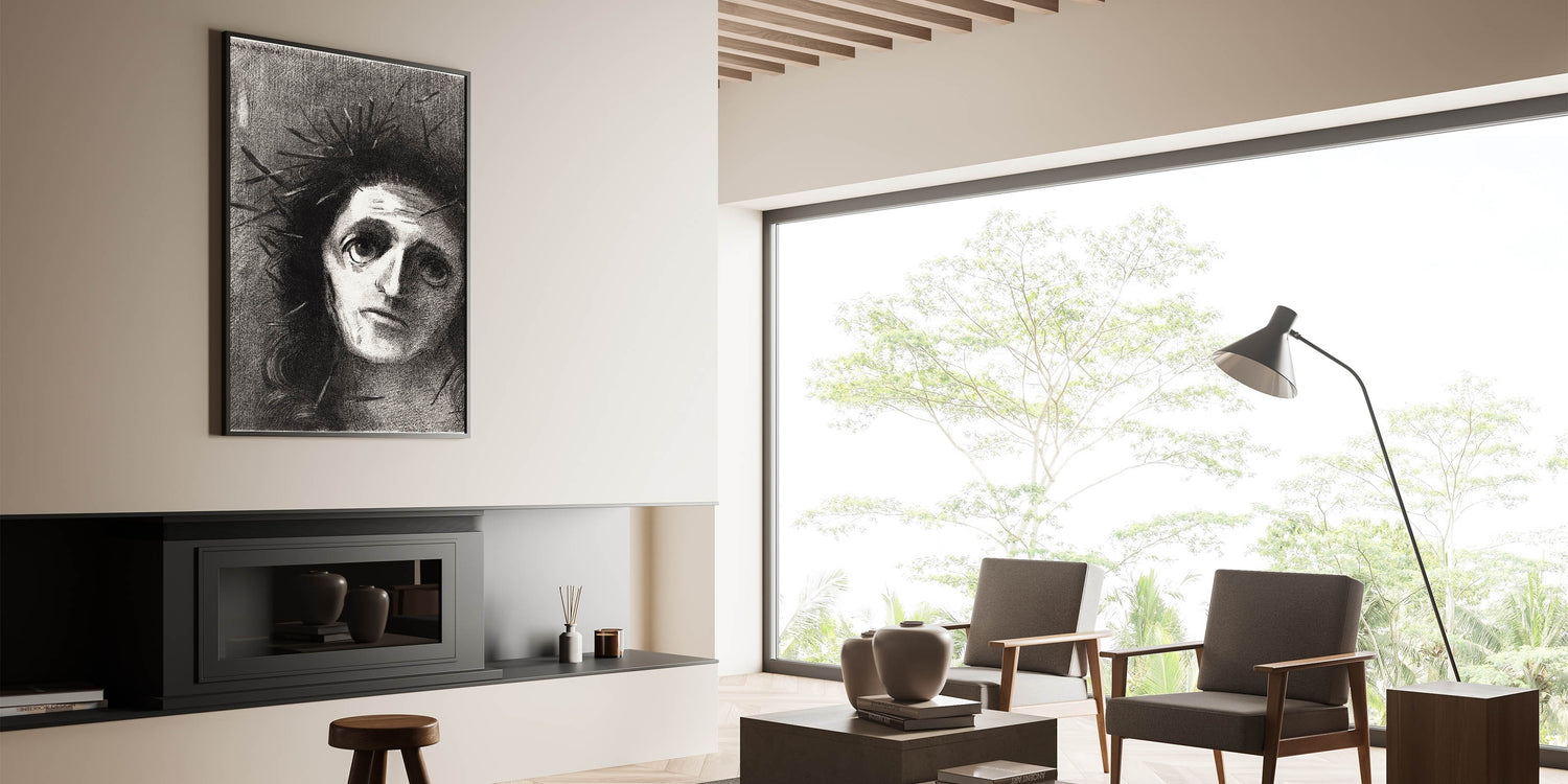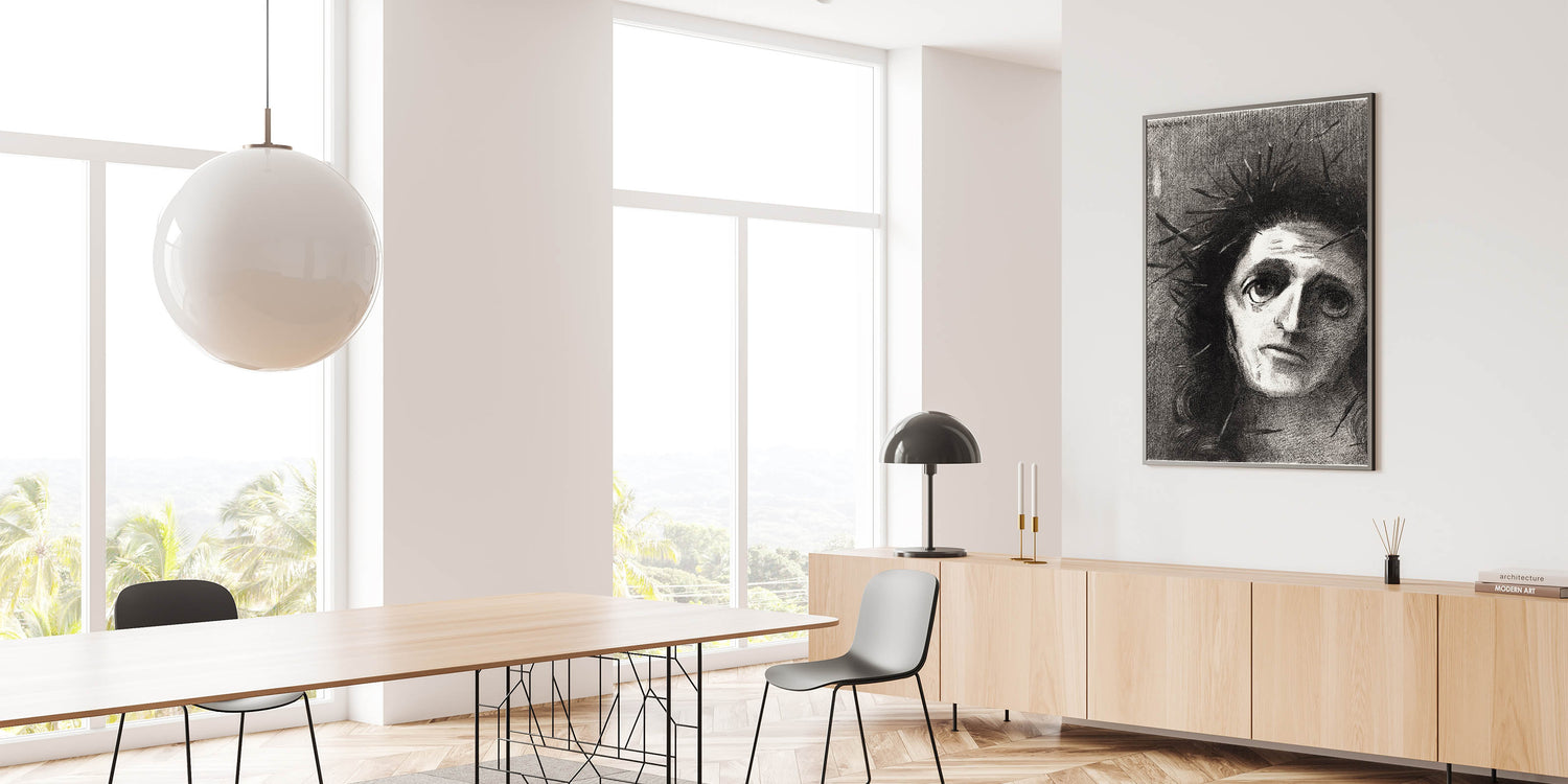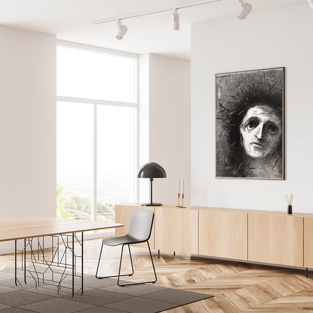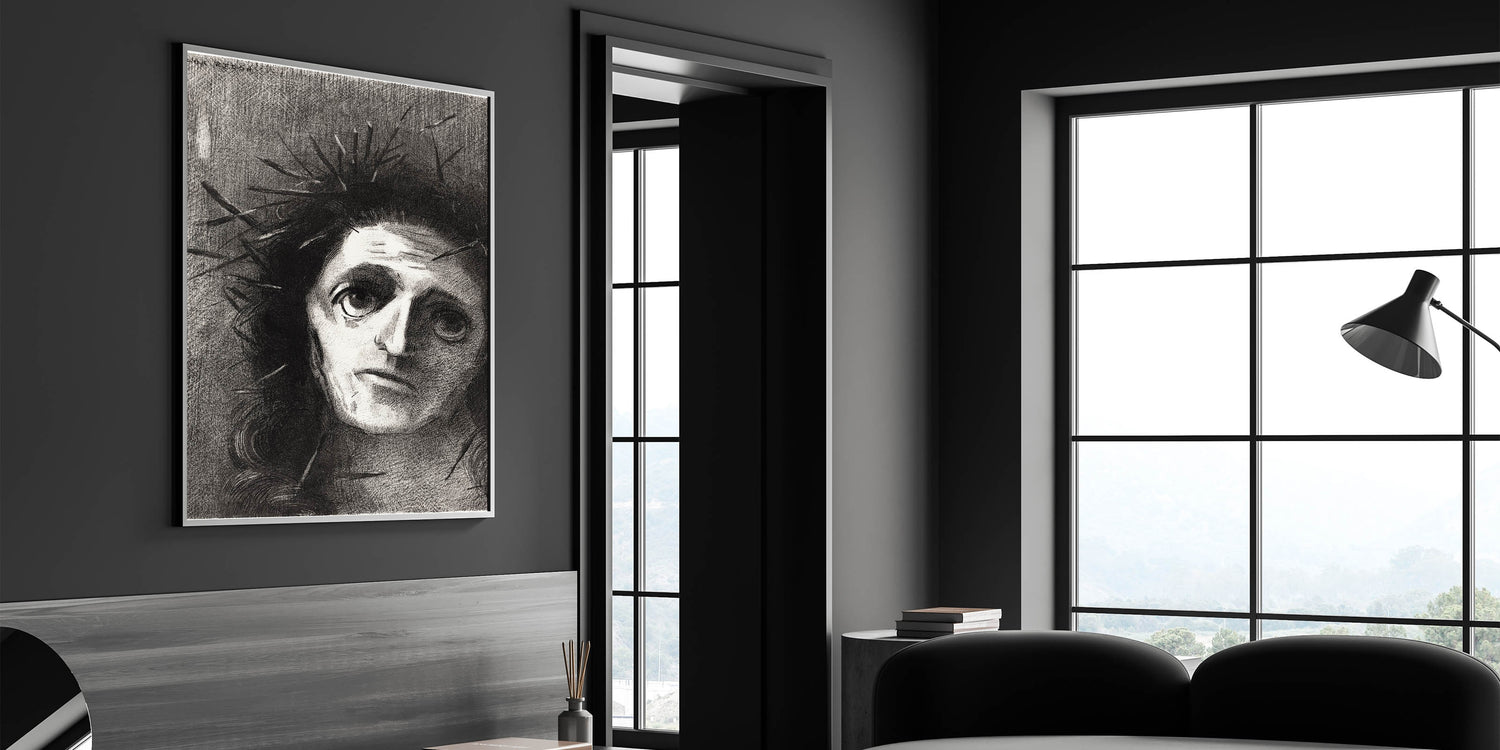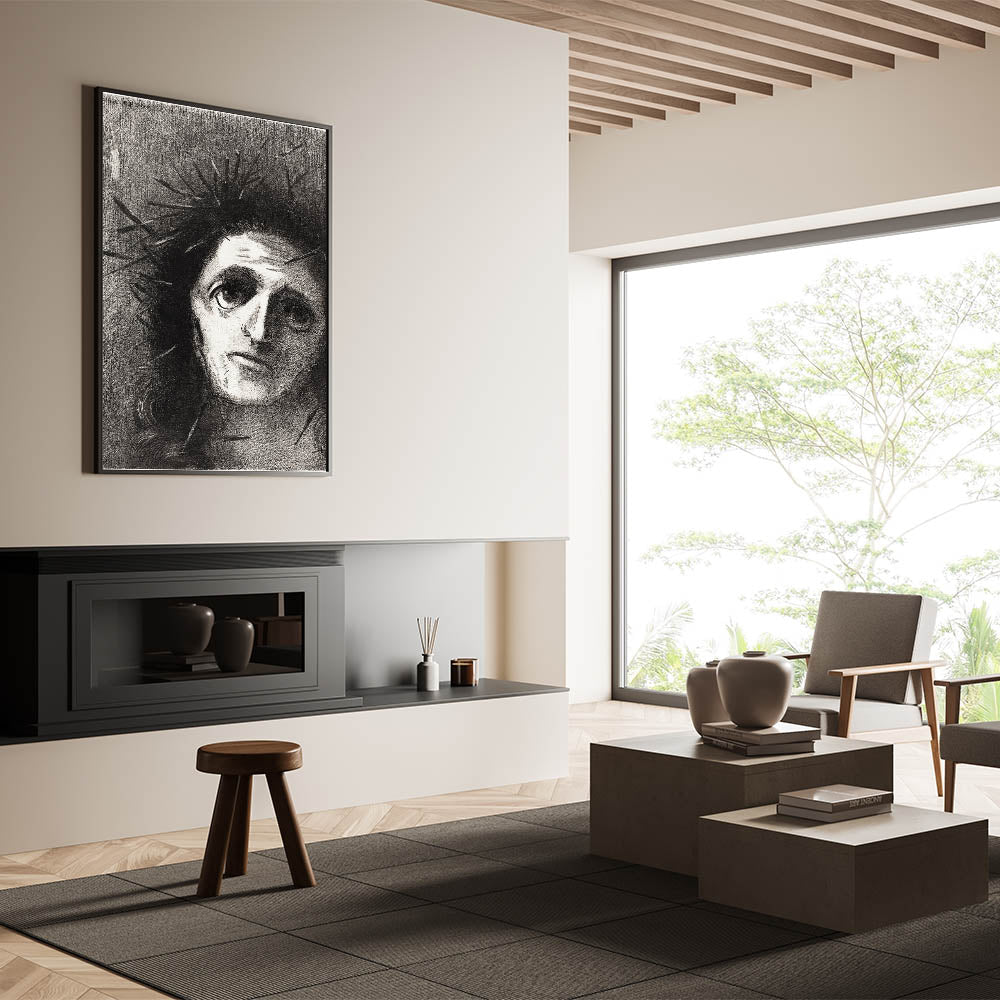 Add an intense emotional depth to your space with this expressive monochrome wall art by Odilon Redon. Featuring a striking portrait that captures both vulnerability and strength, this artwork is perfect for those who appreciate art that resonates on a deeper level. The dark tones and haunting gaze invite contemplation, making it a powerful addition to any room.