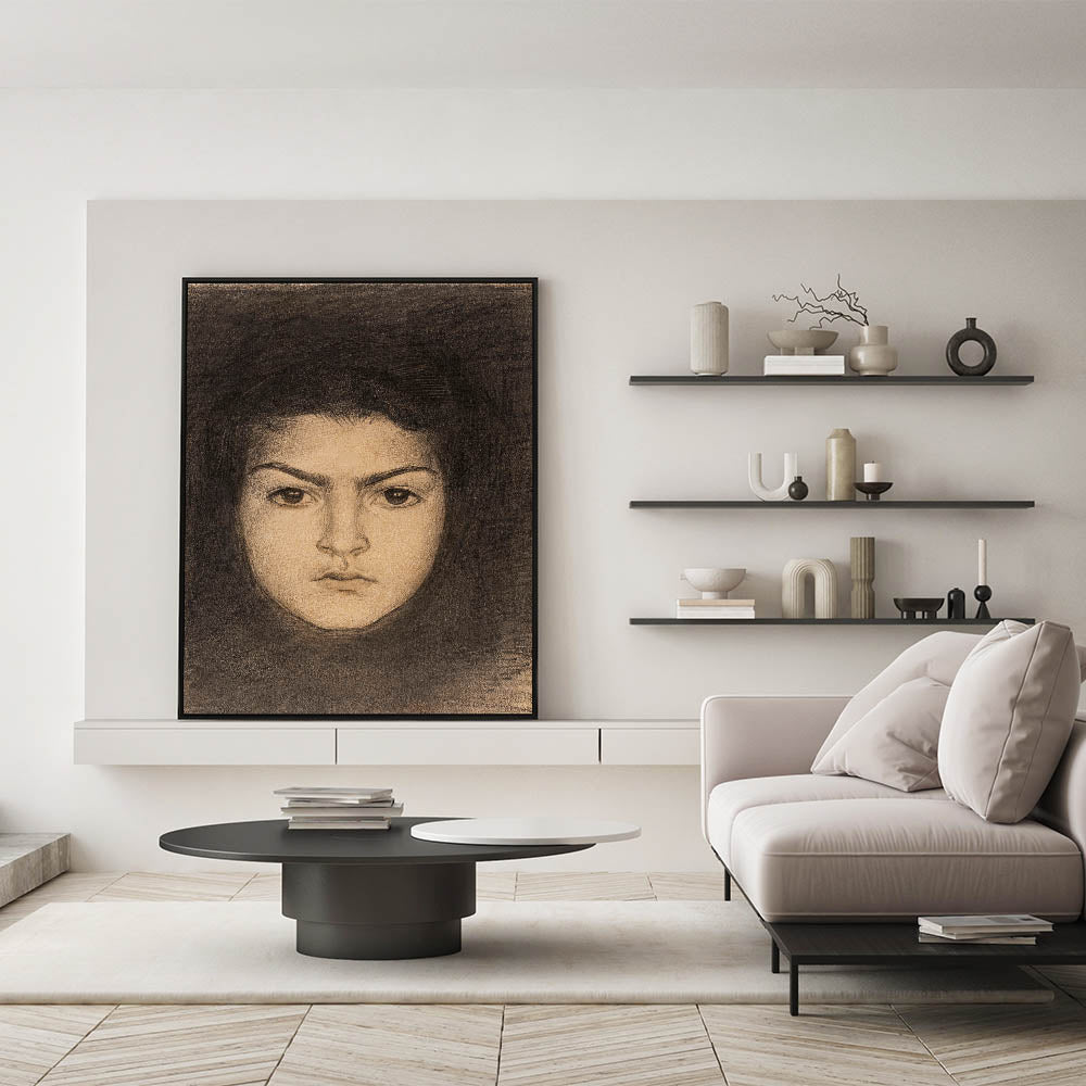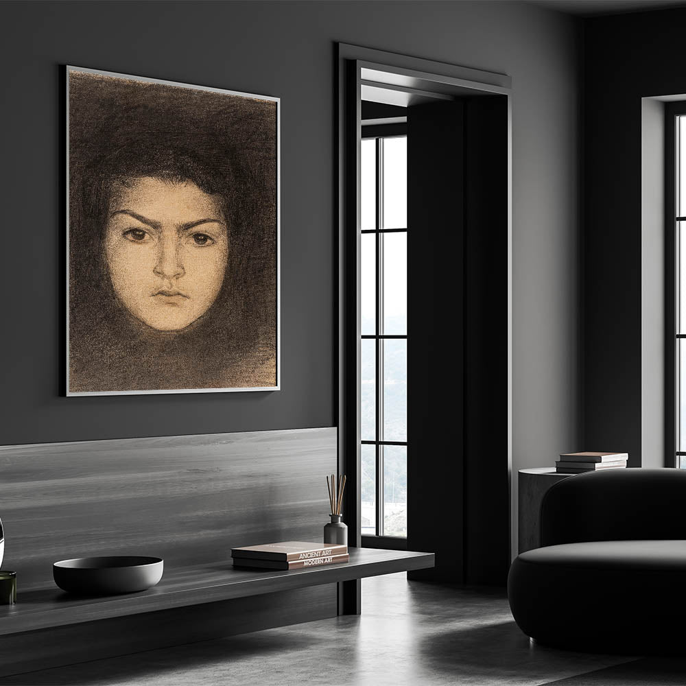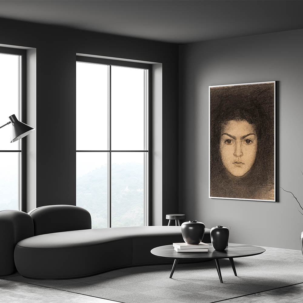 Add a timeless touch of elegance to your space with this realism art print, featuring a striking portrait of a woman. Rendered in exquisite detail, this piece captures the depth of expression and character with soft pencil strokes and delicate shading. The bold focus on the face and intense gaze makes this detailed art realism print a compelling centerpiece for minimalist and modern interiors.