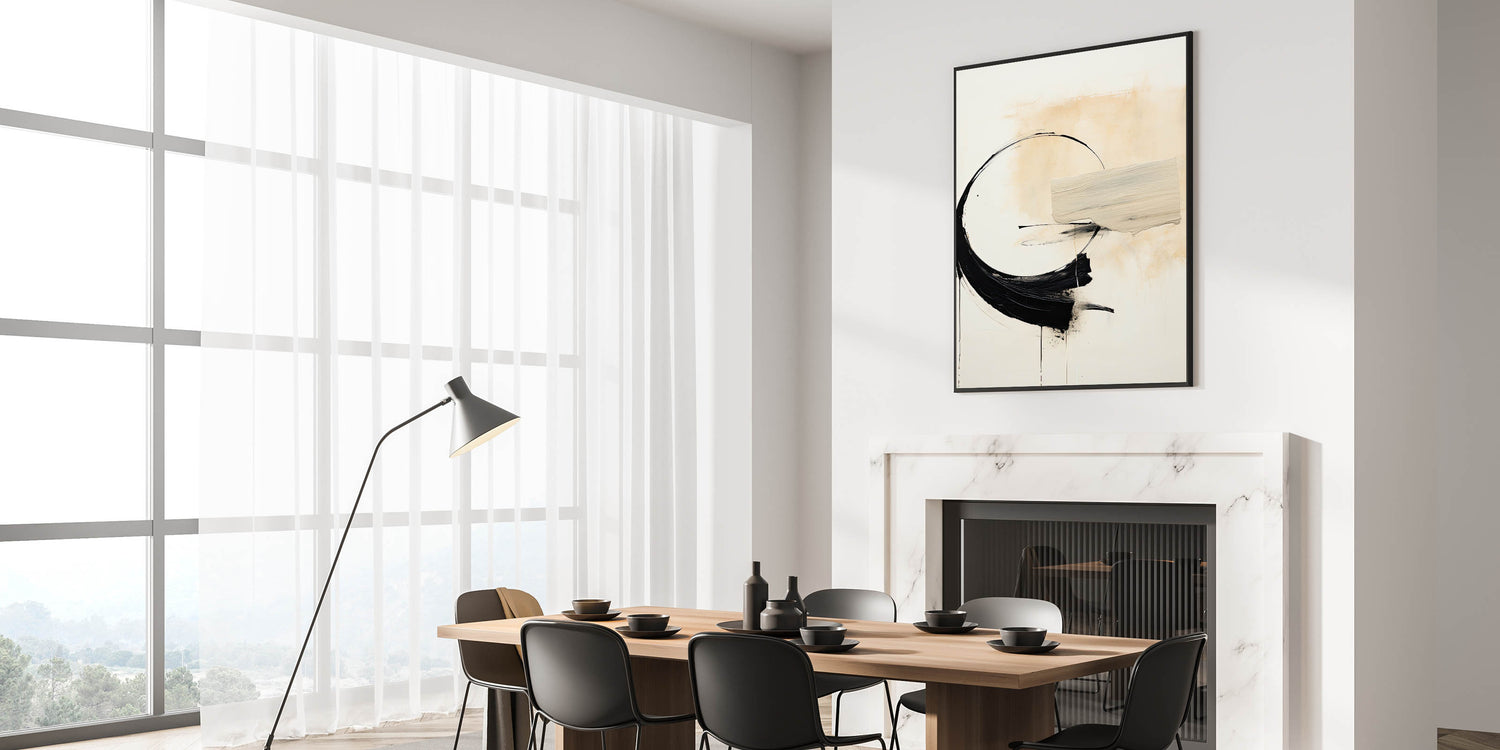Framed Art for Dining Spaces - Abstract Black, White & Beige Print