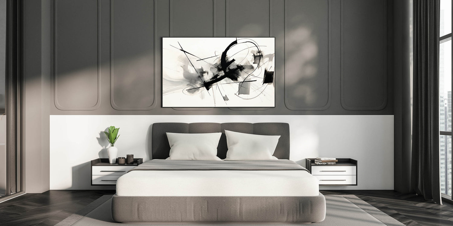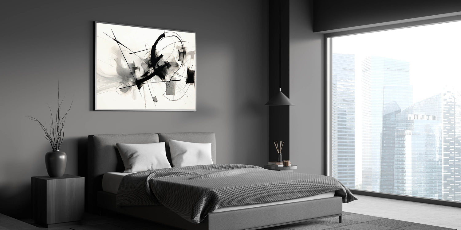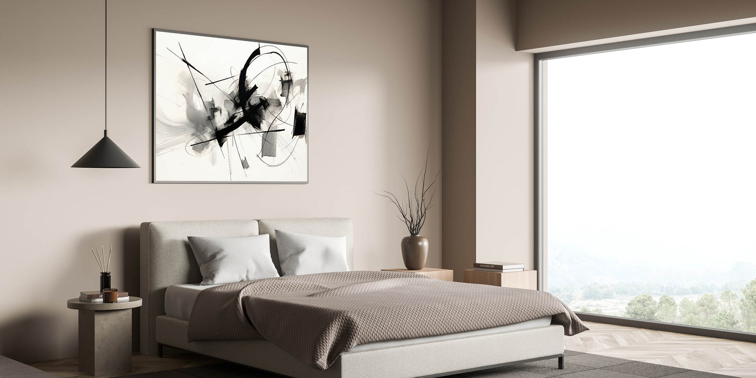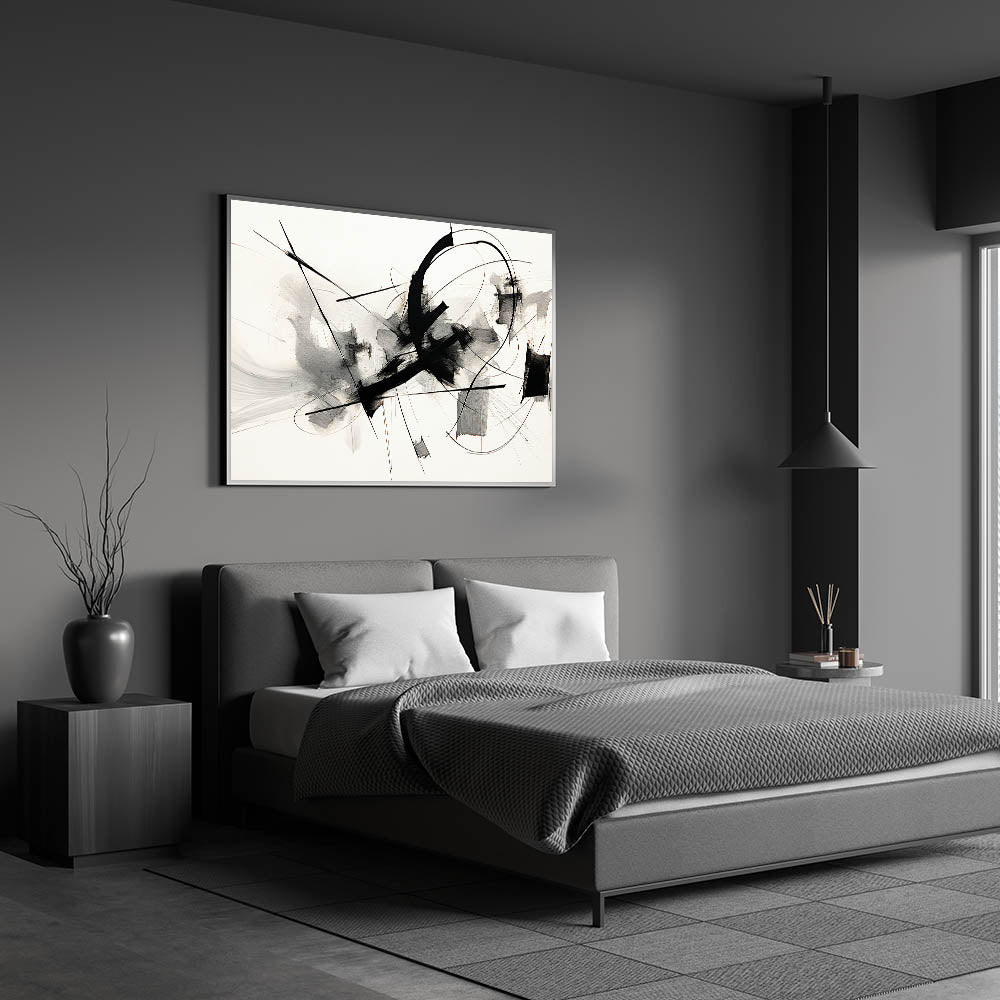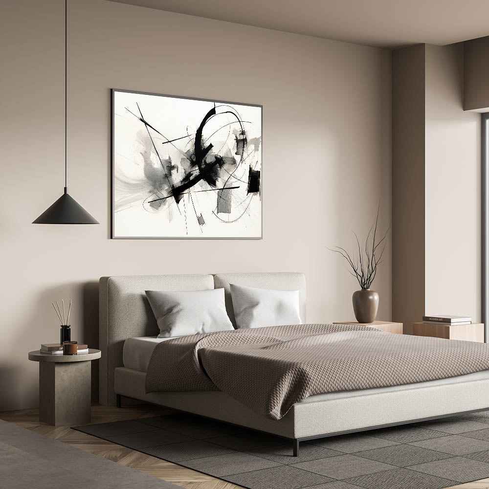 Framed Bedroom Art – Abstract Black & White Expressionist Print