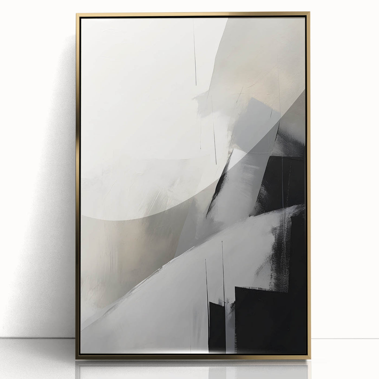 - A sophisticated blend of neutral hues and dynamic abstraction