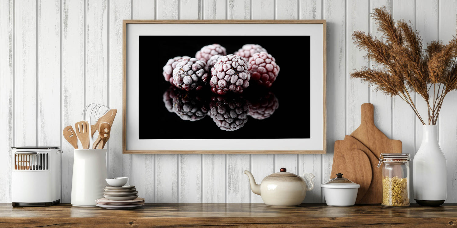 Frozen Blackberry Art – Elegant Food Photography Kitchen Print